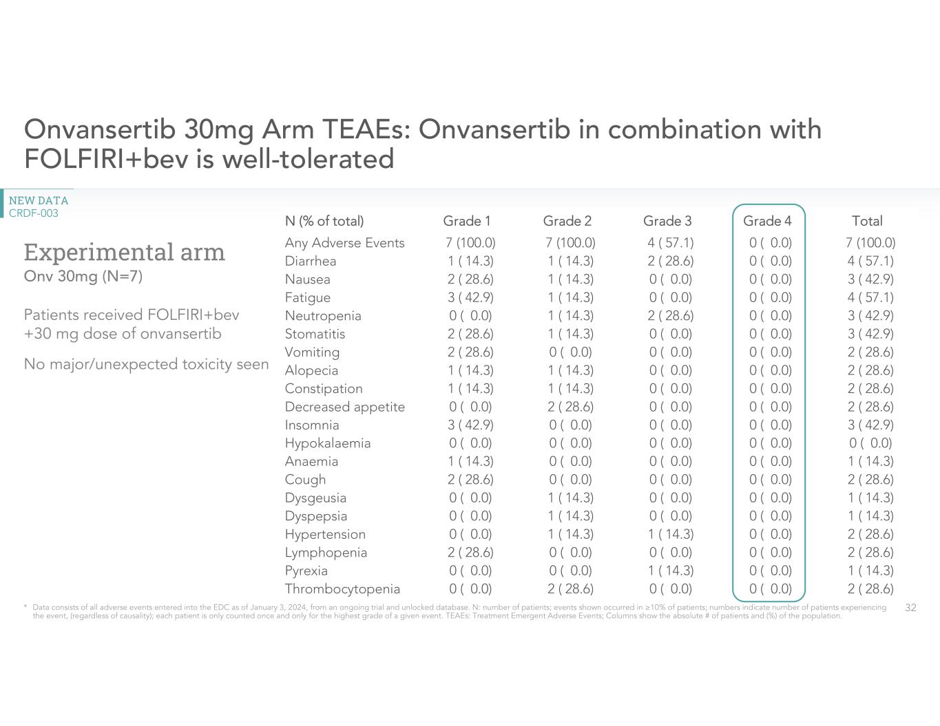 Percentage of patients with Grade 4 Treatment-Emergent Adverse Events (TEAEs) | Grade 4 TEAEs |