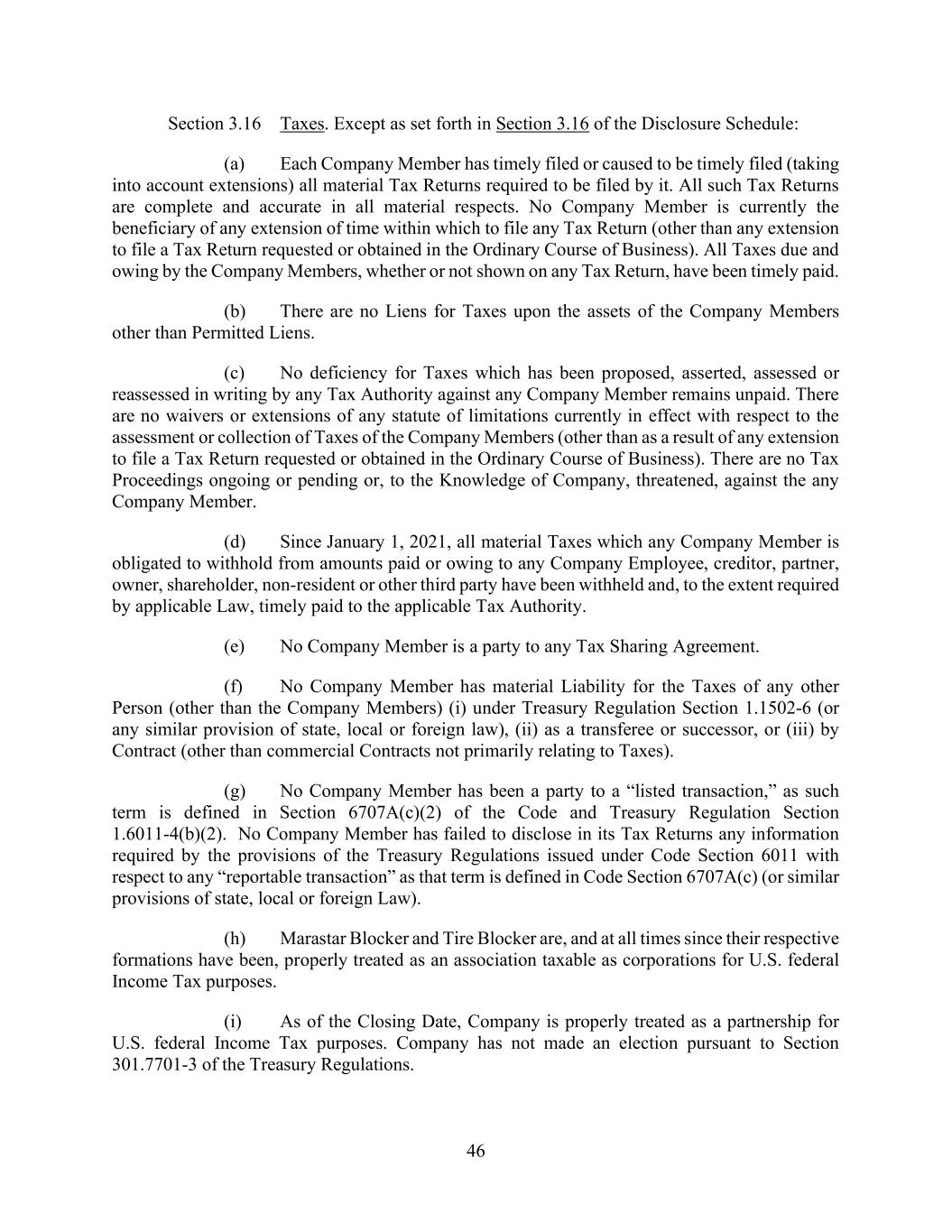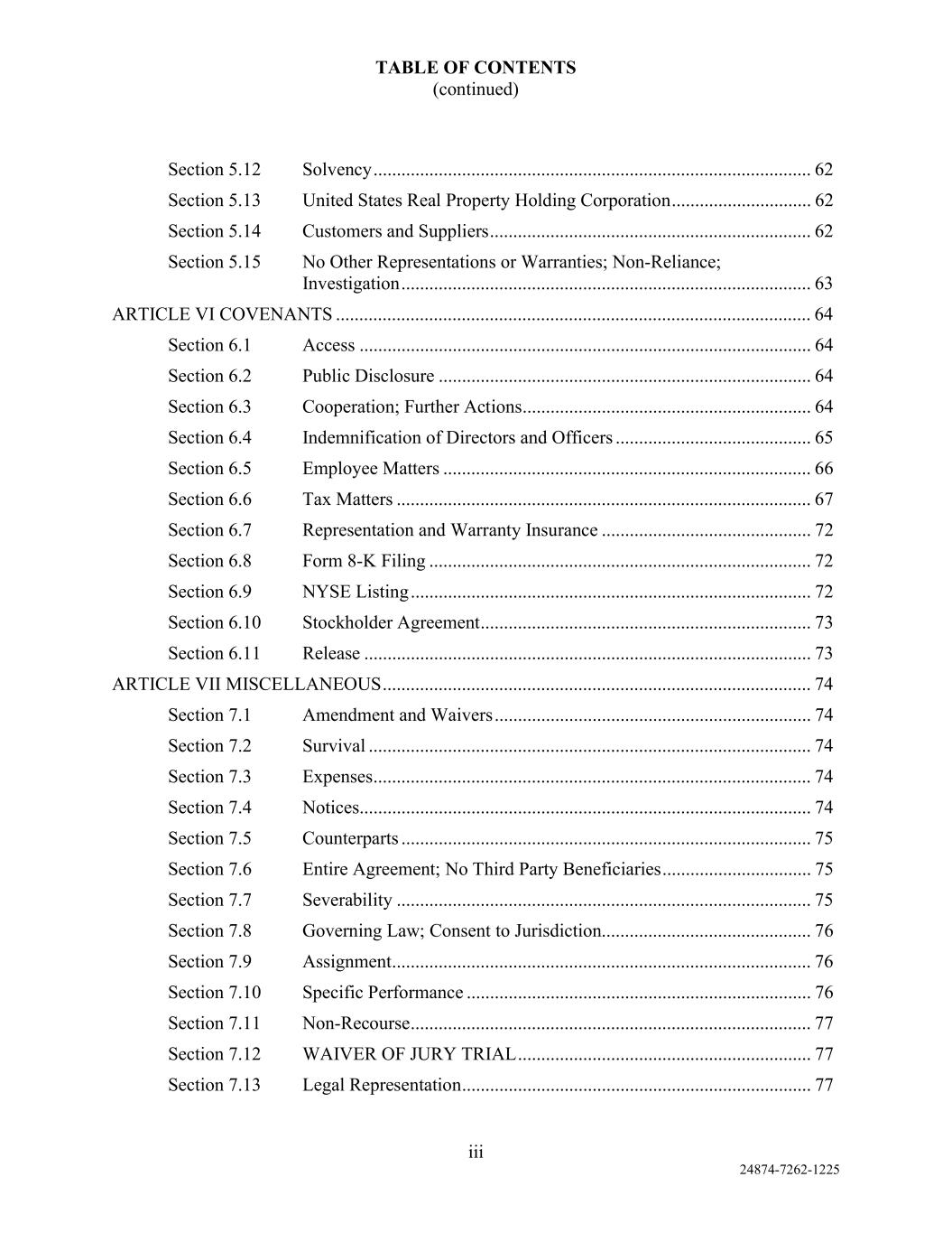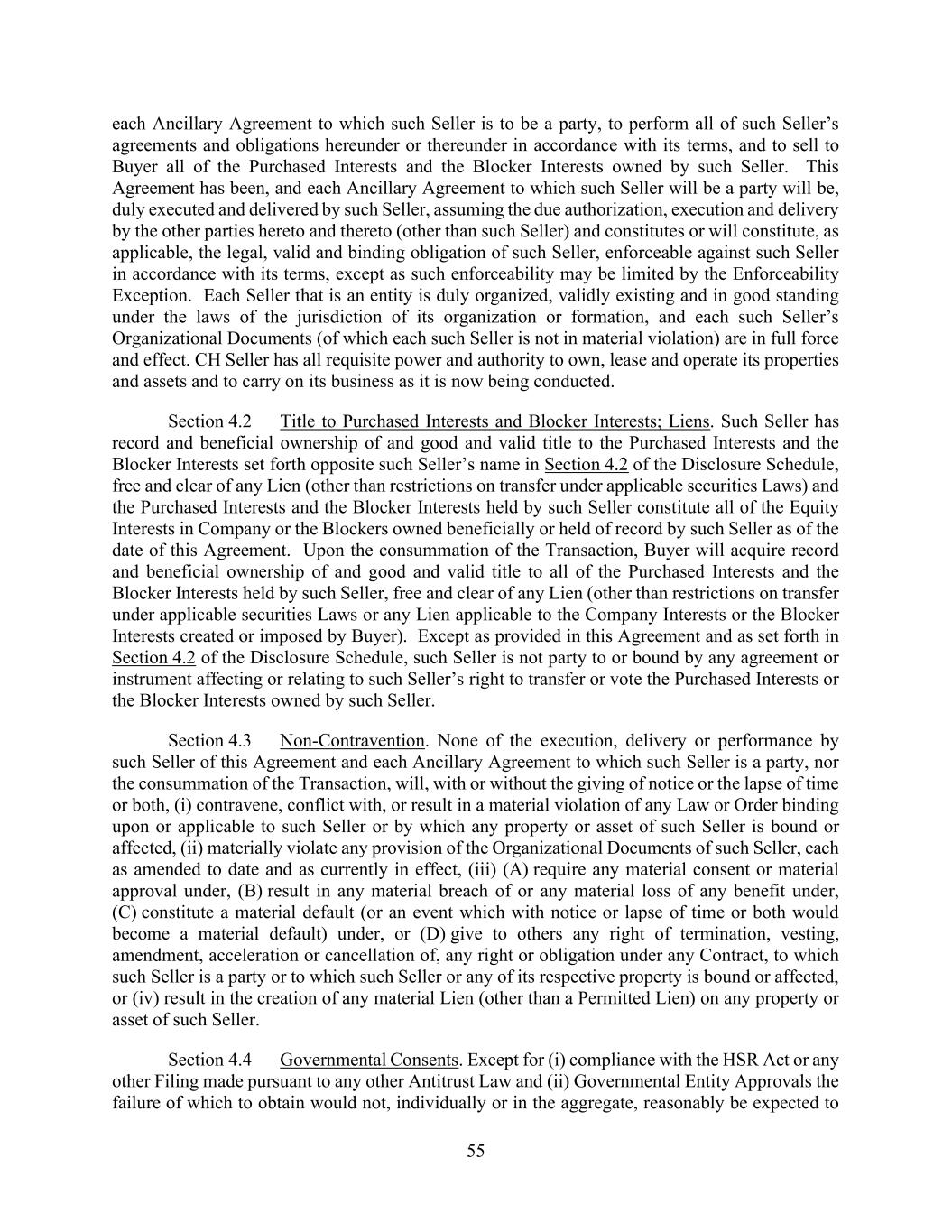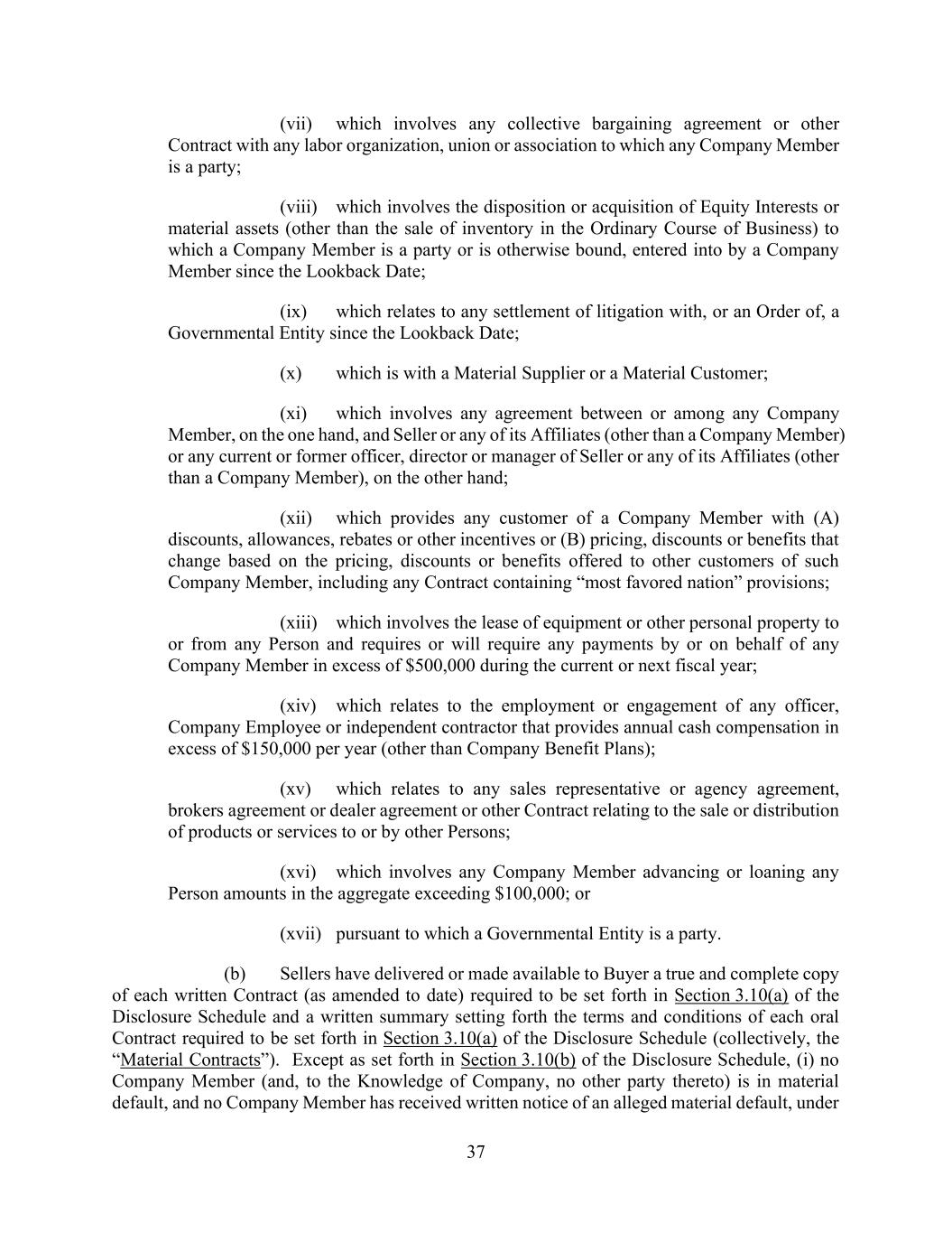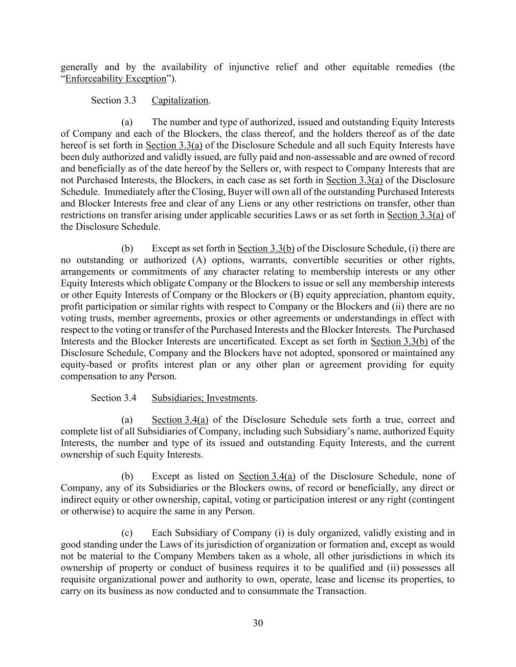 v AmericasActive:19586302.10 9.1.12. Governmental Approvals ..................................................................................... 72 9.1.13. Compliance with Laws ........................................................................................ 72 9.1.14. [Reserved] ............................................................................................................ 72 9.1.15. Burdensome Contracts ......................................................................................... 72 9.1.16. Litigation .............................................................................................................. 72 9.1.17. No Defaults .......................................................................................................... 72 9.1.18. ERISA .................................................................................................................. 72 9.1.19. [Reserved] ............................................................................................................ 73 9.1.20. [Reserved]. ........................................................................................................... 73 9.1.21. [Reserved] ............................................................................................................ 73 9.1.22. Not a Regulated Entity ......................................................................................... 73 9.1.23. Margin Stock ........................................................................................................ 74 9.1.24. Sanctions .............................................................................................................. 74 9.1.25. Anti-Corruption Laws; Anti-Terrorism Laws ...................................................... 74 9.1.26. Accuracy of Borrowing Base ............................................................................... 74 9.2 Complete Disclosure ......................................................................................................... 74 SECTION 10. COVENANTS AND CONTINUING AGREEMENTS ................................................... 74 10.1 Affirmative Covenants ...................................................................................................... 74 10.1.1. Inspections; Appraisals ........................................................................................ 74 10.1.2. Financial and Other Information .......................................................................... 75 10.1.3. Notices ................................................................................................................. 76 10.1.4. Landlord and Storage Agreements ....................................................................... 77 10.1.5. Compliance with Laws ........................................................................................ 77 10.1.6. Taxes .................................................................................................................... 77 10.1.7. Insurance .............................................................................................................. 77 10.1.8. Licenses ............................................................................................................... 77 10.1.9. Future Subsidiaries .............................................................................................. 77 10.1.10. Post-Closing Obligations ..................................................................................... 78 10.2 Negative Covenants .......................................................................................................... 78 10.2.1. Permitted Debt ..................................................................................................... 78 10.2.2. Permitted Liens .................................................................................................... 80 10.2.3. [Reserved] ............................................................................................................ 81 10.2.4. Distributions ........................................................................................................ 81 10.2.5. Investments .......................................................................................................... 81