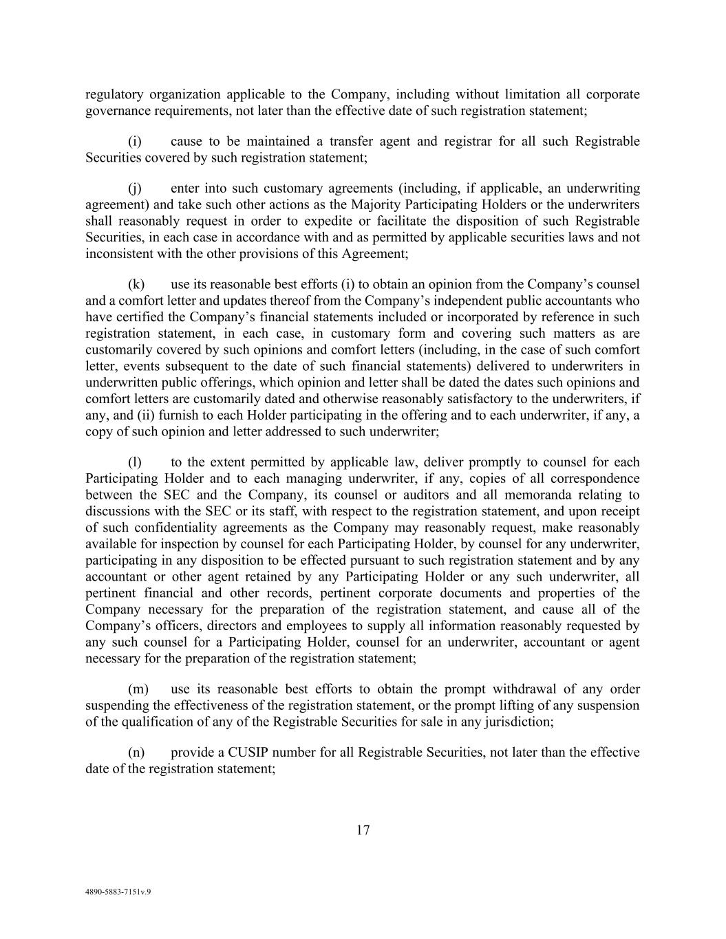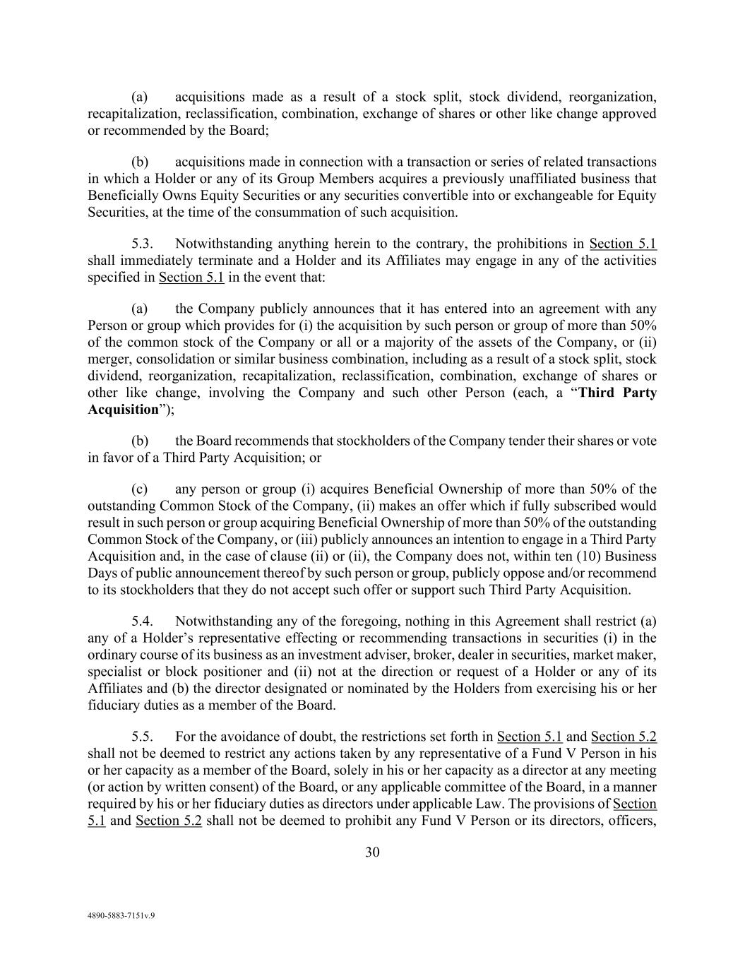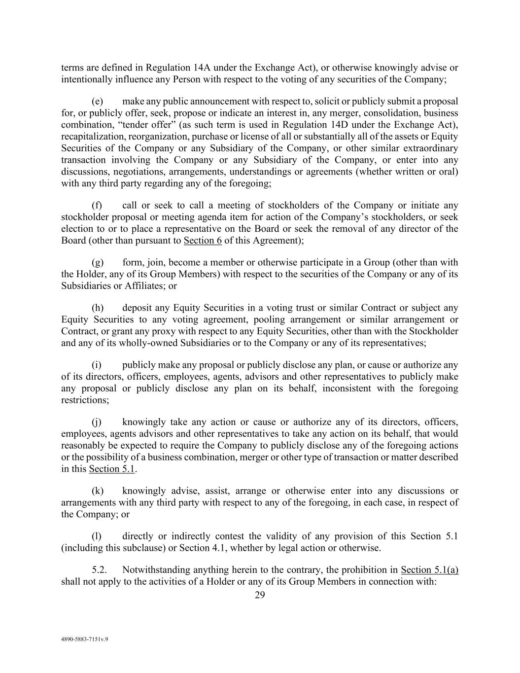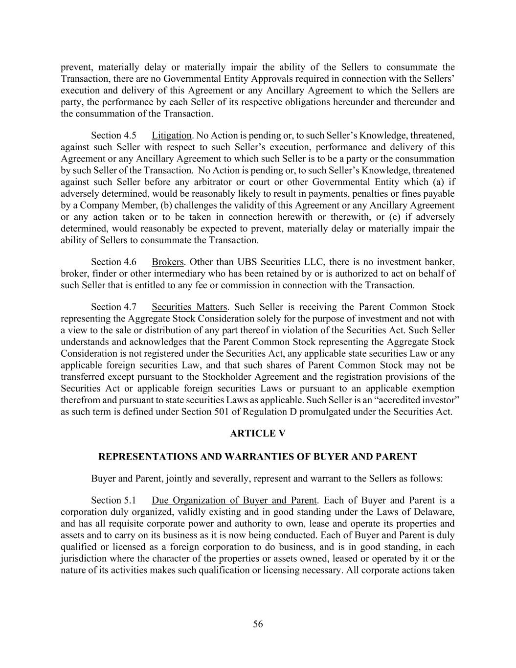 v AmericasActive:19586302.10 9.1.12. Governmental Approvals ..................................................................................... 72 9.1.13. Compliance with Laws ........................................................................................ 72 9.1.14. [Reserved] ............................................................................................................ 72 9.1.15. Burdensome Contracts ......................................................................................... 72 9.1.16. Litigation .............................................................................................................. 72 9.1.17. No Defaults .......................................................................................................... 72 9.1.18. ERISA .................................................................................................................. 72 9.1.19. [Reserved] ............................................................................................................ 73 9.1.20. [Reserved]. ........................................................................................................... 73 9.1.21. [Reserved] ............................................................................................................ 73 9.1.22. Not a Regulated Entity ......................................................................................... 73 9.1.23. Margin Stock ........................................................................................................ 74 9.1.24. Sanctions .............................................................................................................. 74 9.1.25. Anti-Corruption Laws; Anti-Terrorism Laws ...................................................... 74 9.1.26. Accuracy of Borrowing Base ............................................................................... 74 9.2 Complete Disclosure ......................................................................................................... 74 SECTION 10. COVENANTS AND CONTINUING AGREEMENTS ................................................... 74 10.1 Affirmative Covenants ...................................................................................................... 74 10.1.1. Inspections; Appraisals ........................................................................................ 74 10.1.2. Financial and Other Information .......................................................................... 75 10.1.3. Notices ................................................................................................................. 76 10.1.4. Landlord and Storage Agreements ....................................................................... 77 10.1.5. Compliance with Laws ........................................................................................ 77 10.1.6. Taxes .................................................................................................................... 77 10.1.7. Insurance .............................................................................................................. 77 10.1.8. Licenses ............................................................................................................... 77 10.1.9. Future Subsidiaries .............................................................................................. 77 10.1.10. Post-Closing Obligations ..................................................................................... 78 10.2 Negative Covenants .......................................................................................................... 78 10.2.1. Permitted Debt ..................................................................................................... 78 10.2.2. Permitted Liens .................................................................................................... 80 10.2.3. [Reserved] ............................................................................................................ 81 10.2.4. Distributions ........................................................................................................ 81 10.2.5. Investments .......................................................................................................... 81