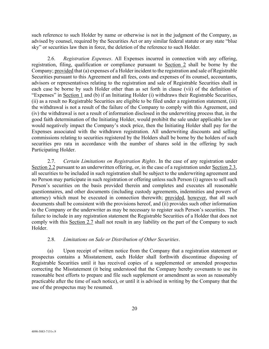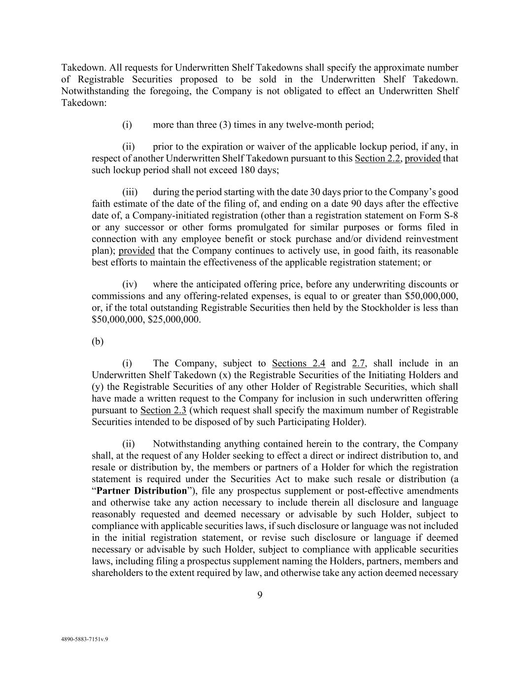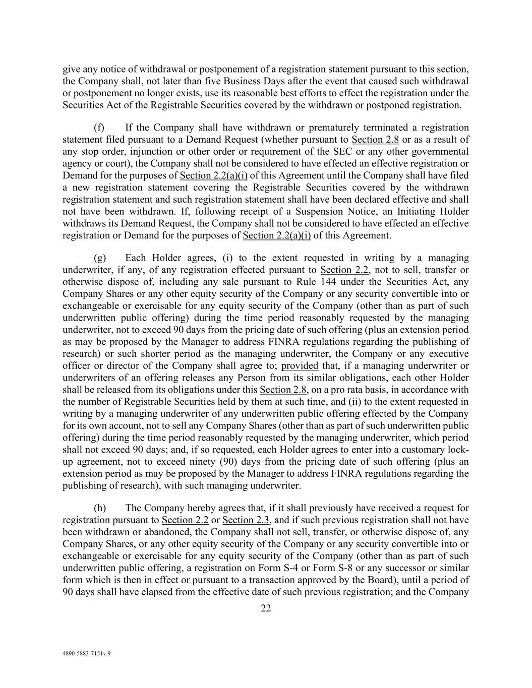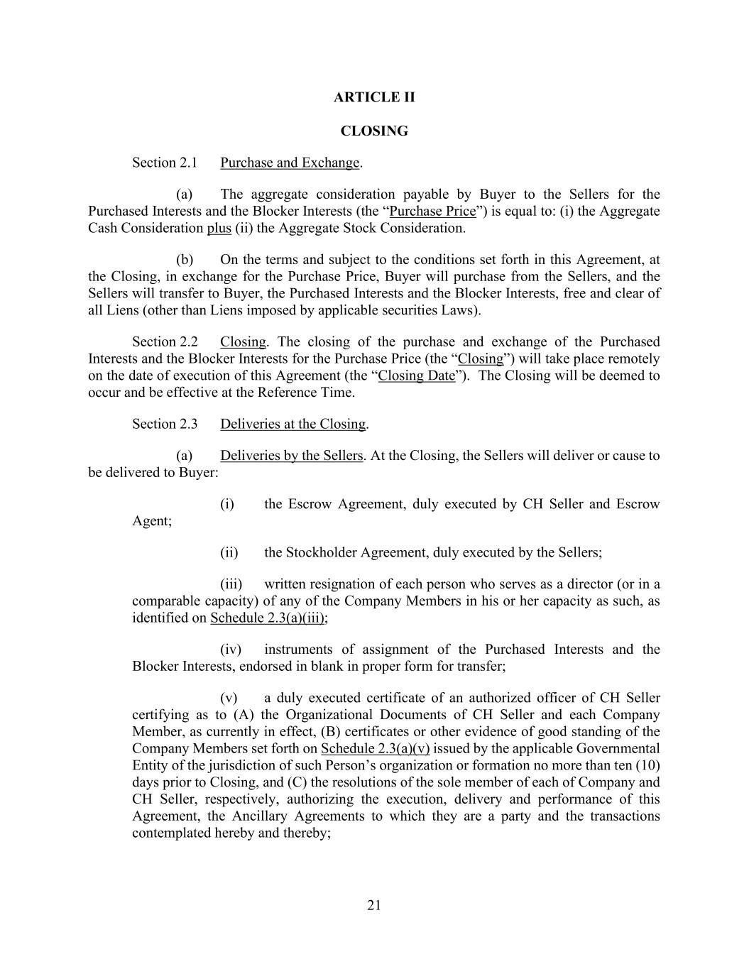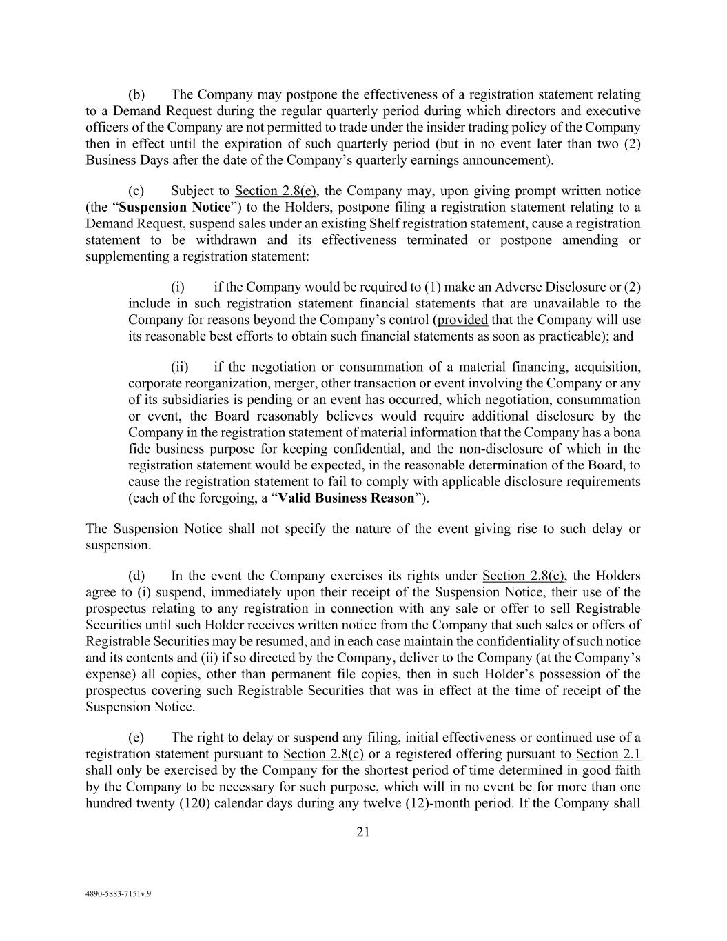 v AmericasActive:19586302.10 9.1.12. Governmental Approvals ..................................................................................... 72 9.1.13. Compliance with Laws ........................................................................................ 72 9.1.14. [Reserved] ............................................................................................................ 72 9.1.15. Burdensome Contracts ......................................................................................... 72 9.1.16. Litigation .............................................................................................................. 72 9.1.17. No Defaults .......................................................................................................... 72 9.1.18. ERISA .................................................................................................................. 72 9.1.19. [Reserved] ............................................................................................................ 73 9.1.20. [Reserved]. ........................................................................................................... 73 9.1.21. [Reserved] ............................................................................................................ 73 9.1.22. Not a Regulated Entity ......................................................................................... 73 9.1.23. Margin Stock ........................................................................................................ 74 9.1.24. Sanctions .............................................................................................................. 74 9.1.25. Anti-Corruption Laws; Anti-Terrorism Laws ...................................................... 74 9.1.26. Accuracy of Borrowing Base ............................................................................... 74 9.2 Complete Disclosure ......................................................................................................... 74 SECTION 10. COVENANTS AND CONTINUING AGREEMENTS ................................................... 74 10.1 Affirmative Covenants ...................................................................................................... 74 10.1.1. Inspections; Appraisals ........................................................................................ 74 10.1.2. Financial and Other Information .......................................................................... 75 10.1.3. Notices ................................................................................................................. 76 10.1.4. Landlord and Storage Agreements ....................................................................... 77 10.1.5. Compliance with Laws ........................................................................................ 77 10.1.6. Taxes .................................................................................................................... 77 10.1.7. Insurance .............................................................................................................. 77 10.1.8. Licenses ............................................................................................................... 77 10.1.9. Future Subsidiaries .............................................................................................. 77 10.1.10. Post-Closing Obligations ..................................................................................... 78 10.2 Negative Covenants .......................................................................................................... 78 10.2.1. Permitted Debt ..................................................................................................... 78 10.2.2. Permitted Liens .................................................................................................... 80 10.2.3. [Reserved] ............................................................................................................ 81 10.2.4. Distributions ........................................................................................................ 81 10.2.5. Investments .......................................................................................................... 81