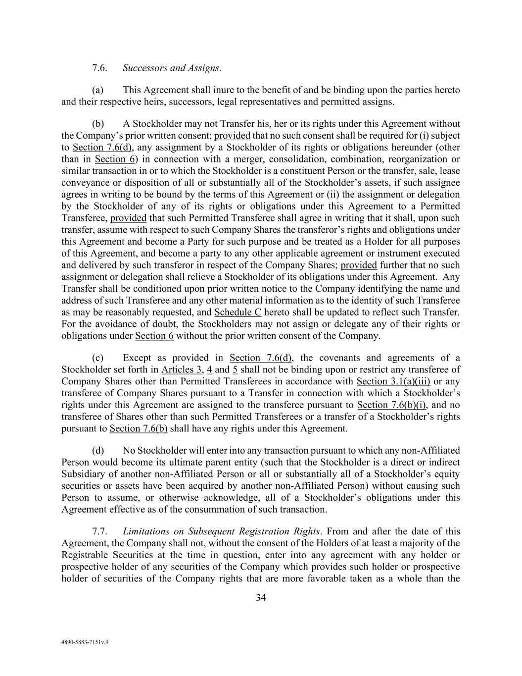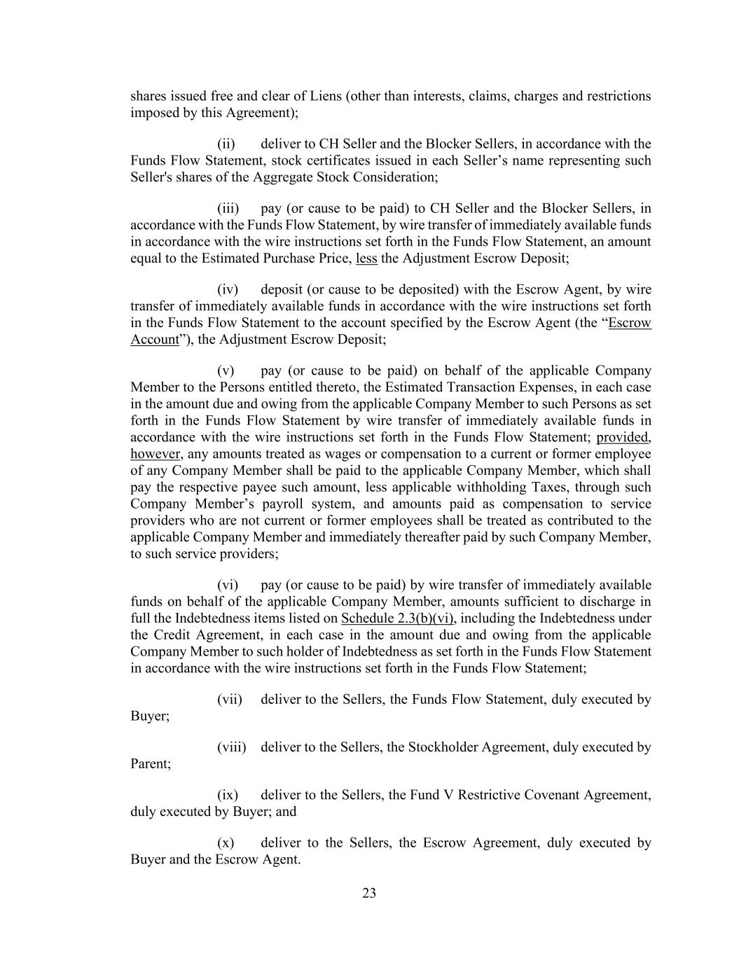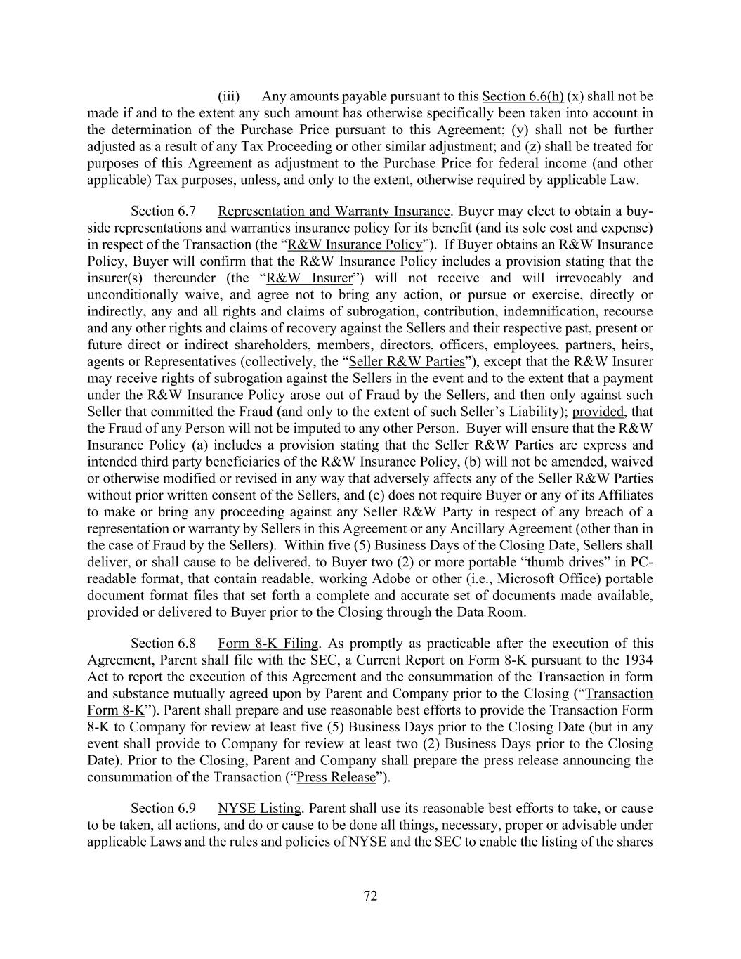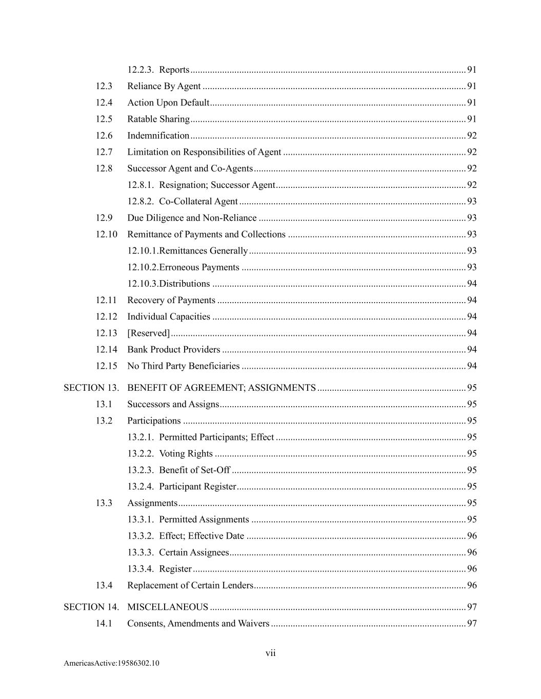 vii AmericasActive:19586302.10 12.2.3. Reports ................................................................................................................. 91 12.3 Reliance By Agent ............................................................................................................ 91 12.4 Action Upon Default ......................................................................................................... 91 12.5 Ratable Sharing ................................................................................................................. 91 12.6 Indemnification ................................................................................................................. 92 12.7 Limitation on Responsibilities of Agent ........................................................................... 92 12.8 Successor Agent and Co-Agents ....................................................................................... 92 12.8.1. Resignation; Successor Agent .............................................................................. 92 12.8.2. Co-Collateral Agent ............................................................................................. 93 12.9 Due Diligence and Non-Reliance ..................................................................................... 93 12.10 Remittance of Payments and Collections ......................................................................... 93 12.10.1. Remittances Generally ......................................................................................... 93 12.10.2. Erroneous Payments ............................................................................................ 93 12.10.3. Distributions ........................................................................................................ 94 12.11 Recovery of Payments ...................................................................................................... 94 12.12 Individual Capacities ........................................................................................................ 94 12.13 [Reserved] ......................................................................................................................... 94 12.14 Bank Product Providers .................................................................................................... 94 12.15 No Third Party Beneficiaries ............................................................................................ 94 SECTION 13. BENEFIT OF AGREEMENT; ASSIGNMENTS ............................................................. 95 13.1 Successors and Assigns ..................................................................................................... 95 13.2 Participations .................................................................................................................... 95 13.2.1. Permitted Participants; Effect .............................................................................. 95 13.2.2. Voting Rights ....................................................................................................... 95 13.2.3. Benefit of Set-Off ................................................................................................ 95 13.2.4. Participant Register .............................................................................................. 95 13.3 Assignments ...................................................................................................................... 95 13.3.1. Permitted Assignments ........................................................................................ 95 13.3.2. Effect; Effective Date .......................................................................................... 96 13.3.3. Certain Assignees ................................................................................................. 96 13.3.4. Register ................................................................................................................ 96 13.4 Replacement of Certain Lenders ....................................................................................... 96 SECTION 14. MISCELLANEOUS ......................................................................................................... 97 14.1 Consents, Amendments and Waivers ................................................................................ 97