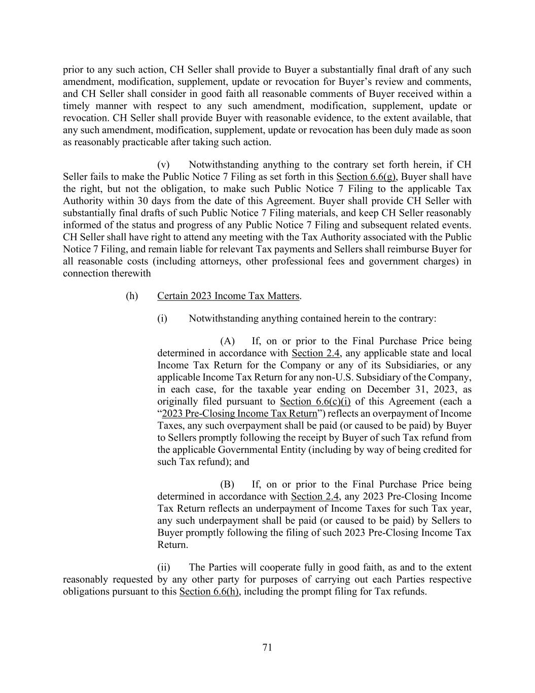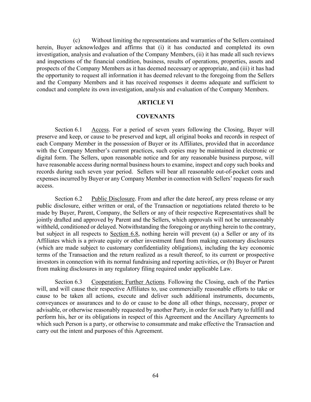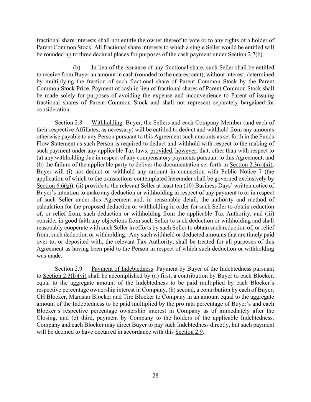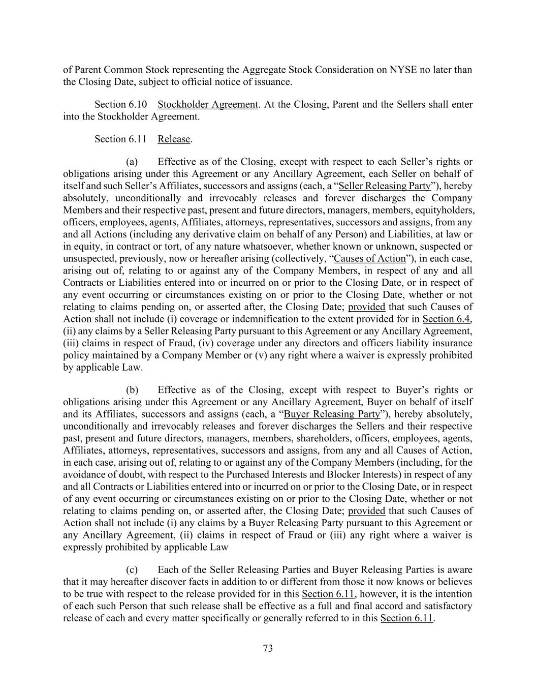 vii AmericasActive:19586302.10 12.2.3. Reports ................................................................................................................. 91 12.3 Reliance By Agent ............................................................................................................ 91 12.4 Action Upon Default ......................................................................................................... 91 12.5 Ratable Sharing ................................................................................................................. 91 12.6 Indemnification ................................................................................................................. 92 12.7 Limitation on Responsibilities of Agent ........................................................................... 92 12.8 Successor Agent and Co-Agents ....................................................................................... 92 12.8.1. Resignation; Successor Agent .............................................................................. 92 12.8.2. Co-Collateral Agent ............................................................................................. 93 12.9 Due Diligence and Non-Reliance ..................................................................................... 93 12.10 Remittance of Payments and Collections ......................................................................... 93 12.10.1. Remittances Generally ......................................................................................... 93 12.10.2. Erroneous Payments ............................................................................................ 93 12.10.3. Distributions ........................................................................................................ 94 12.11 Recovery of Payments ...................................................................................................... 94 12.12 Individual Capacities ........................................................................................................ 94 12.13 [Reserved] ......................................................................................................................... 94 12.14 Bank Product Providers .................................................................................................... 94 12.15 No Third Party Beneficiaries ............................................................................................ 94 SECTION 13. BENEFIT OF AGREEMENT; ASSIGNMENTS ............................................................. 95 13.1 Successors and Assigns ..................................................................................................... 95 13.2 Participations .................................................................................................................... 95 13.2.1. Permitted Participants; Effect .............................................................................. 95 13.2.2. Voting Rights ....................................................................................................... 95 13.2.3. Benefit of Set-Off ................................................................................................ 95 13.2.4. Participant Register .............................................................................................. 95 13.3 Assignments ...................................................................................................................... 95 13.3.1. Permitted Assignments ........................................................................................ 95 13.3.2. Effect; Effective Date .......................................................................................... 96 13.3.3. Certain Assignees ................................................................................................. 96 13.3.4. Register ................................................................................................................ 96 13.4 Replacement of Certain Lenders ....................................................................................... 96 SECTION 14. MISCELLANEOUS ......................................................................................................... 97 14.1 Consents, Amendments and Waivers ................................................................................ 97