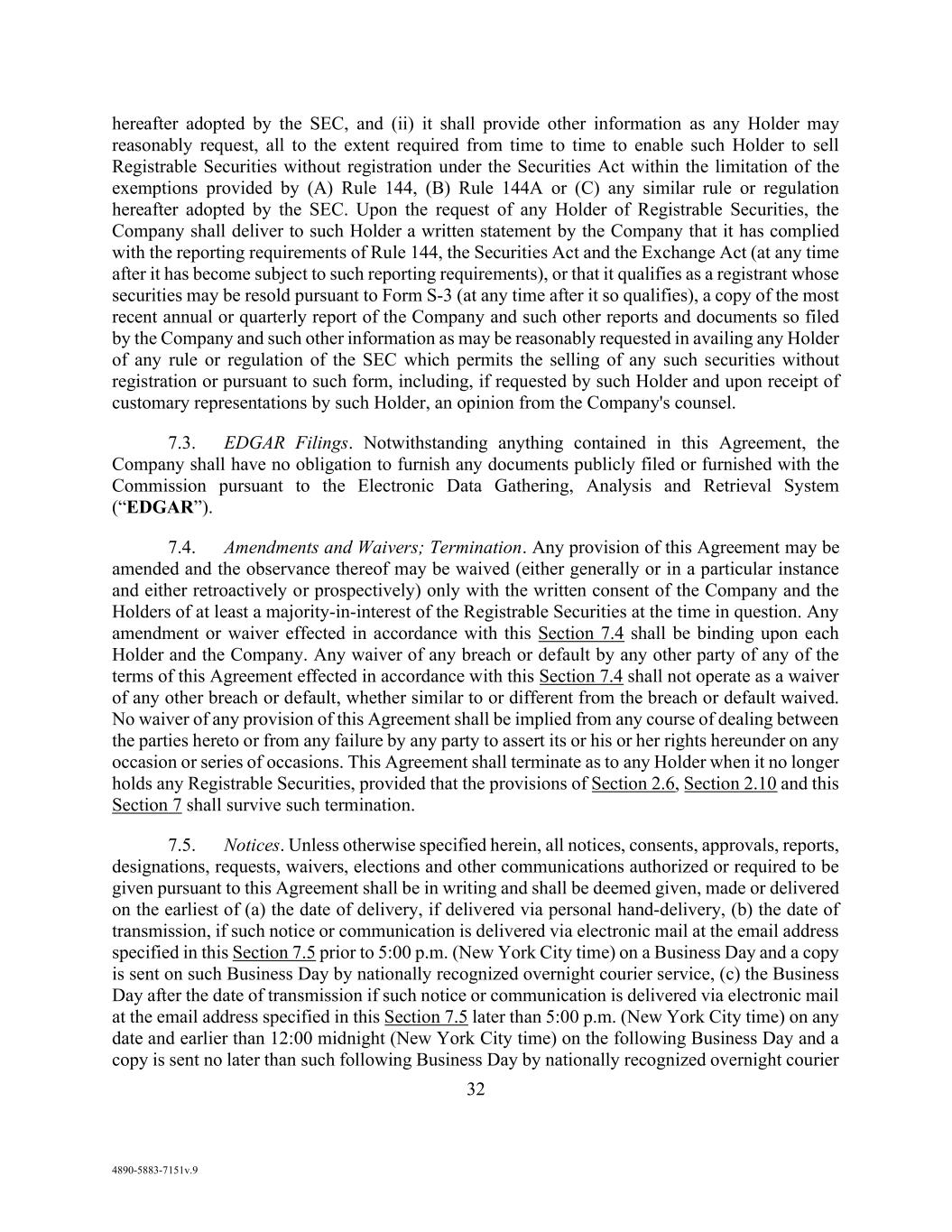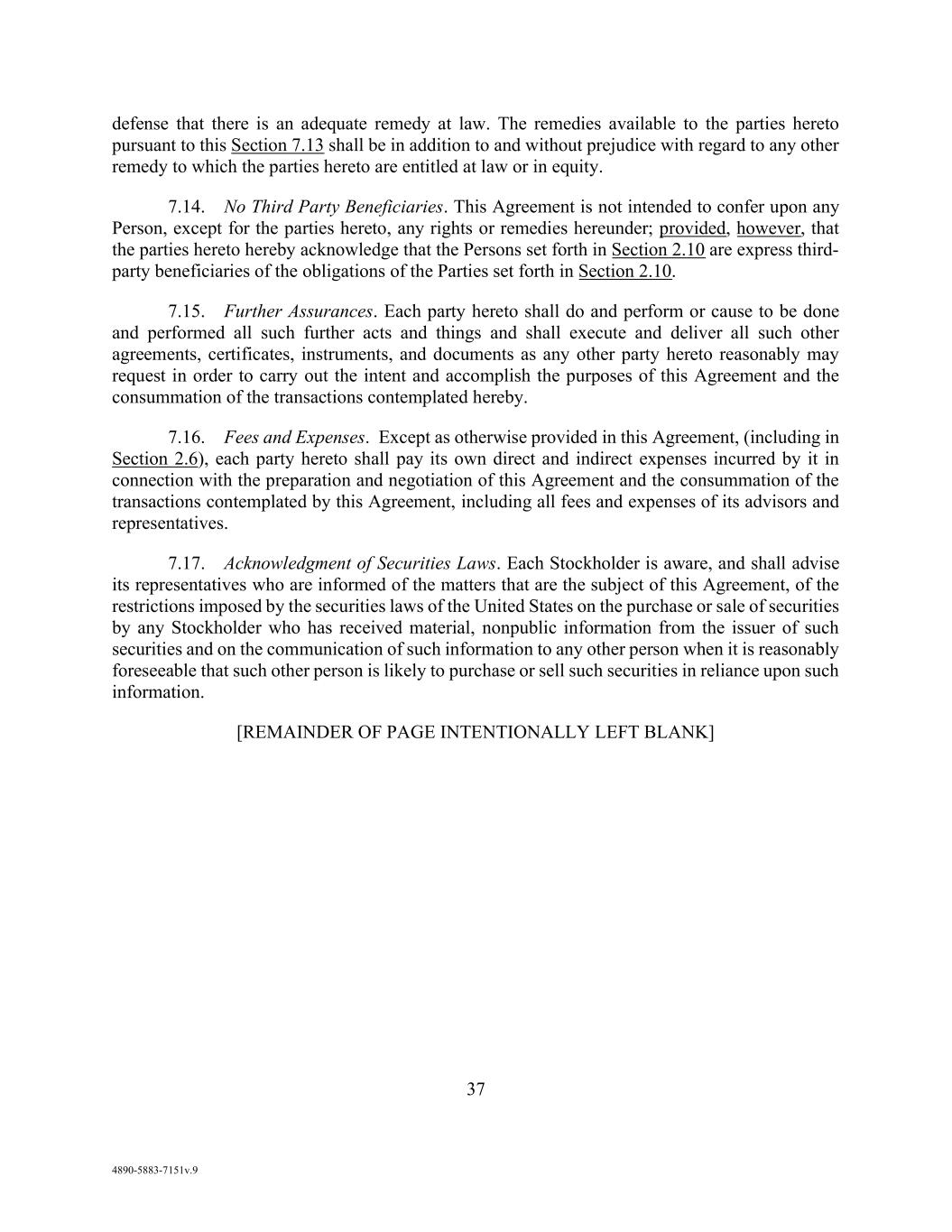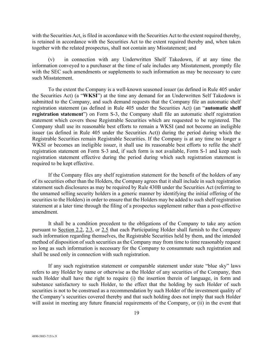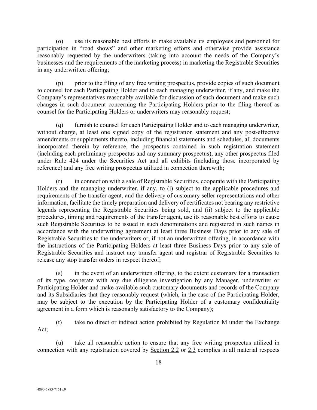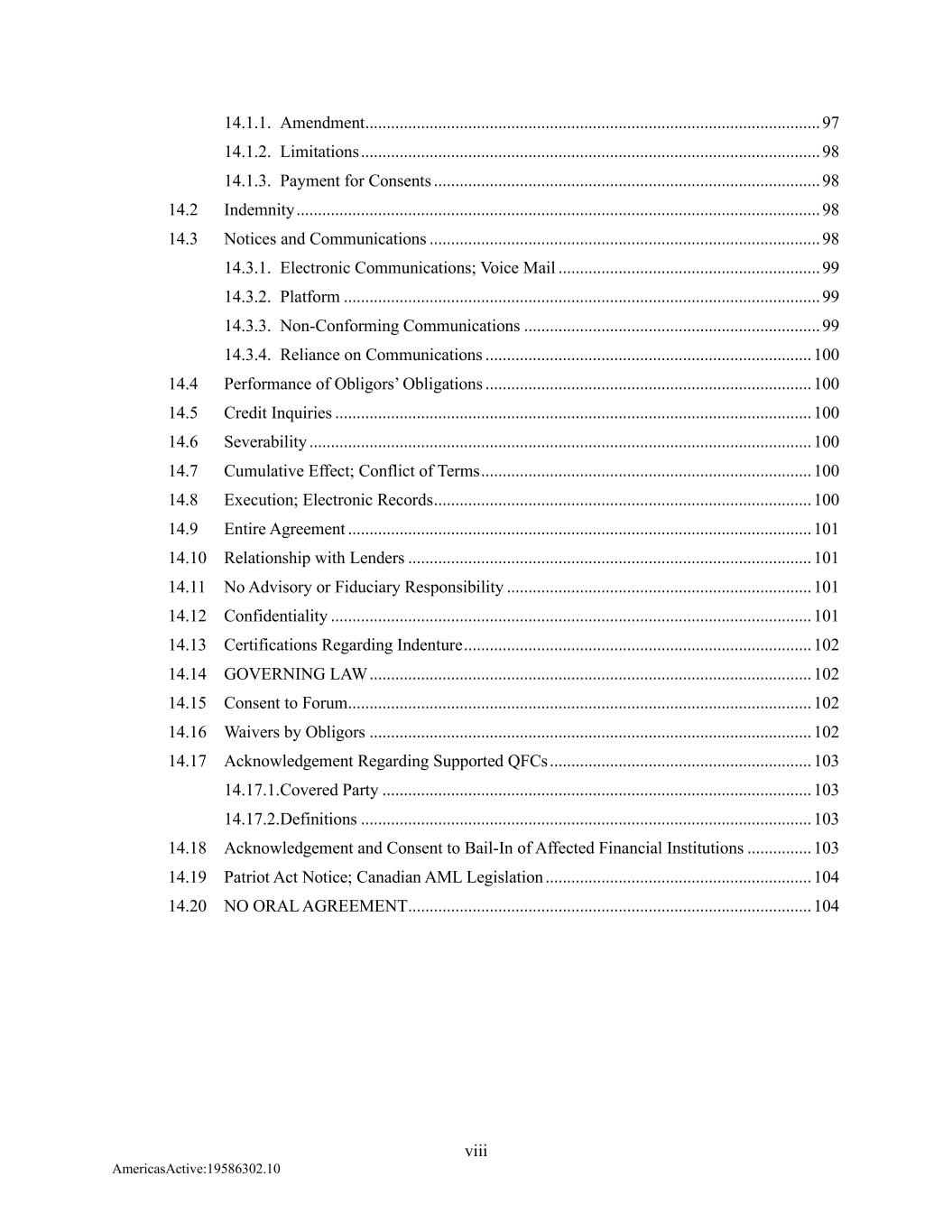 viii AmericasActive:19586302.10 14.1.1. Amendment .......................................................................................................... 97 14.1.2. Limitations ........................................................................................................... 98 14.1.3. Payment for Consents .......................................................................................... 98 14.2 Indemnity .......................................................................................................................... 98 14.3 Notices and Communications ........................................................................................... 98 14.3.1. Electronic Communications; Voice Mail ............................................................. 99 14.3.2. Platform ............................................................................................................... 99 14.3.3. Non-Conforming Communications ..................................................................... 99 14.3.4. Reliance on Communications ............................................................................ 100 14.4 Performance of Obligors’ Obligations ............................................................................ 100 14.5 Credit Inquiries ............................................................................................................... 100 14.6 Severability ..................................................................................................................... 100 14.7 Cumulative Effect; Conflict of Terms ............................................................................. 100 14.8 Execution; Electronic Records ........................................................................................ 100 14.9 Entire Agreement ............................................................................................................ 101 14.10 Relationship with Lenders .............................................................................................. 101 14.11 No Advisory or Fiduciary Responsibility ....................................................................... 101 14.12 Confidentiality ................................................................................................................ 101 14.13 Certifications Regarding Indenture ................................................................................. 102 14.14 GOVERNING LAW ....................................................................................................... 102 14.15 Consent to Forum ............................................................................................................ 102 14.16 Waivers by Obligors ....................................................................................................... 102 14.17 Acknowledgement Regarding Supported QFCs ............................................................. 103 14.17.1. Covered Party .................................................................................................... 103 14.17.2. Definitions ......................................................................................................... 103 14.18 Acknowledgement and Consent to Bail-In of Affected Financial Institutions ............... 103 14.19 Patriot Act Notice; Canadian AML Legislation .............................................................. 104 14.20 NO ORAL AGREEMENT.............................................................................................. 104