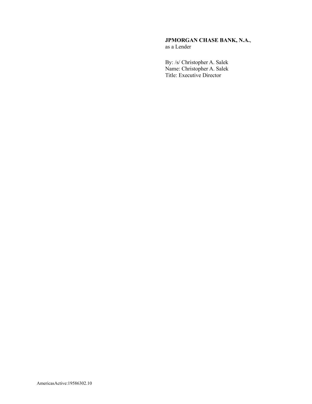 AmericasActive:19586302.10 JPMORGAN CHASE BANK, N.A., as a Lender By: /s/ Christopher A. Salek Name: Christopher A. Salek Title: Executive Director
