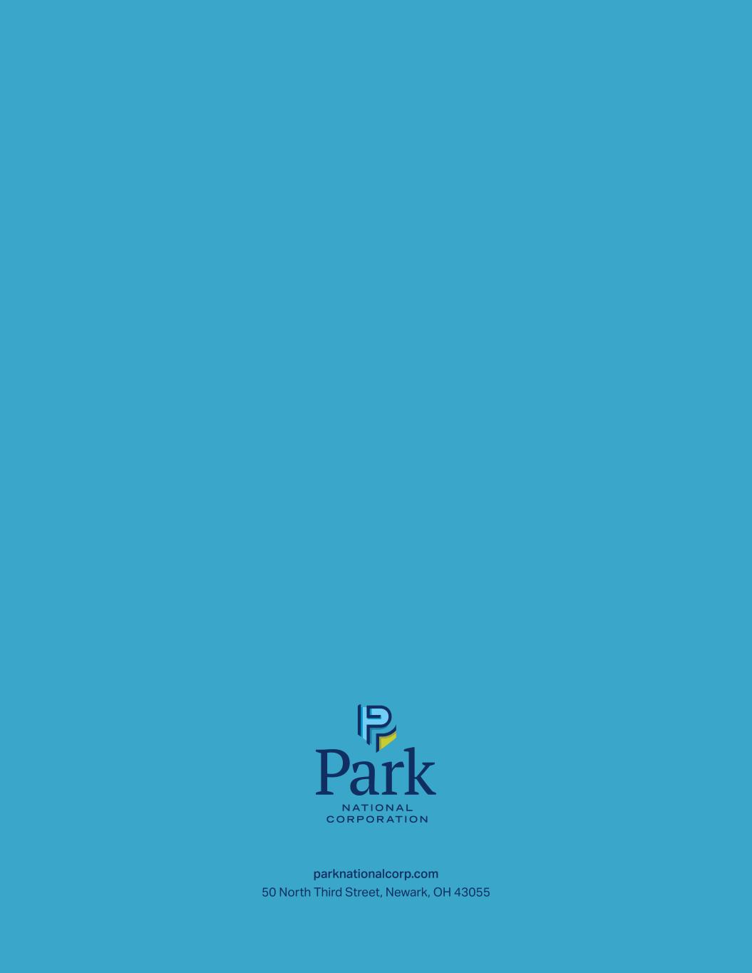 Community support We used to highlight our community support in this letter. It is great fun to help our neighbors and communities prosper; we’ve done this for decades and will continue for as long as we’re around. But the B R E A D T H A N D D E P T H of our support has exceeded what makes sense to summarize in this letter. In addition to the community support summary on pages 14-17, we invite you to take a look at our 2023 Community Impact Report found online at parknationalcorp.com.1 The daily labyrinth and final thoughts Greek mythology tells us how Theseus successfully navigated Daedalus’ labyrinth with the help of Ariadne’s chord. Although some would say we live in mythical times, today we face no actual labyrinths. True, sometimes it feels like we are in a maze of labyrinthian proportions — polarized political parties, decibels replacing logic and reason, arbitrary rule- making, global conflicts that destroy/displace…there is much to absorb. How do we navigate all of this and still serve and grow? What is our “Ariadne’s chord?” The Park chord has three interwoven strands: 1. See others as fellow humans 2. Help them flourish as much as our talent and energy allow 3. Repeat Fred Rogers had another way of describing a three- strand chord (this quote resides on our conference table): There are three ways to ultimate success: The first way is to be kind. The second way is to be kind. The third way is to be kind. - F R E D R O G E R S , TV host and author We have great, kind people. We have solid, sustained earnings. We have strong and growing capital. We have an unwavering desire to serve and look forward to serving more. Thank you for your support and call/write/text if we can help in any way. A few of our favorite moments from SPARK2023 Park National Corporation Annual Report ▶ 7 1The 2023 Community Impact Report and information within it is separate from and not incorporated by reference into this Annual Report.