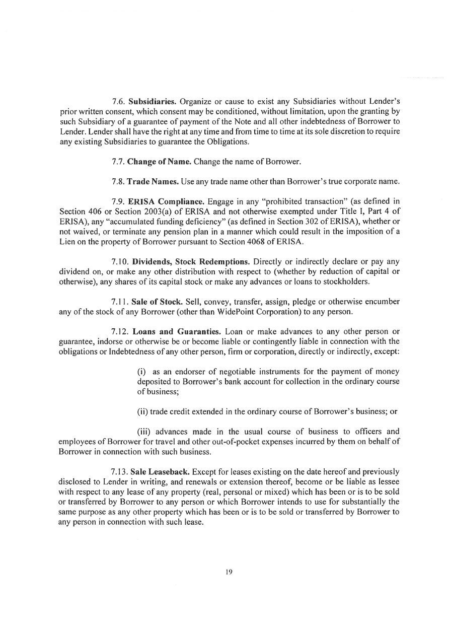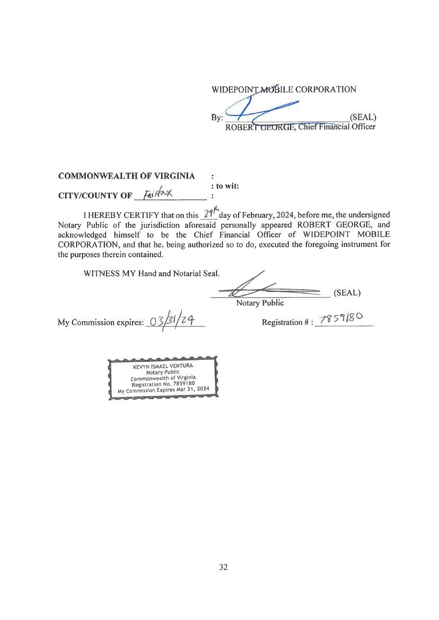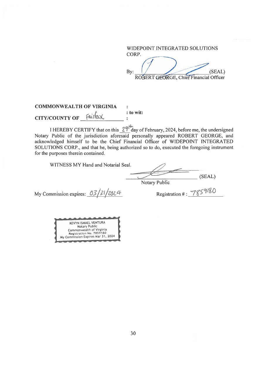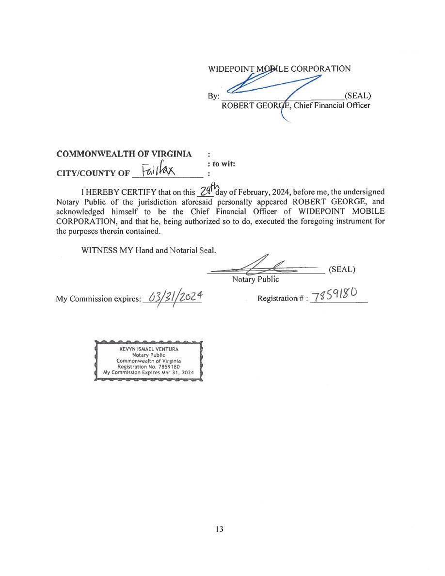 On February 29, 2024, WidePoint Corporation and its subsidiaries (the “Company”), as borrower, entered into a Loan and Security Agreement (the “Loan”) and Promissory Note (the “Note,” and, together with the Loan, the “Agreements”) with Old Dominion National Bank. The Agreements provide for a new $4,000,000 revolving line of credit facility (the “Credit Facility”).