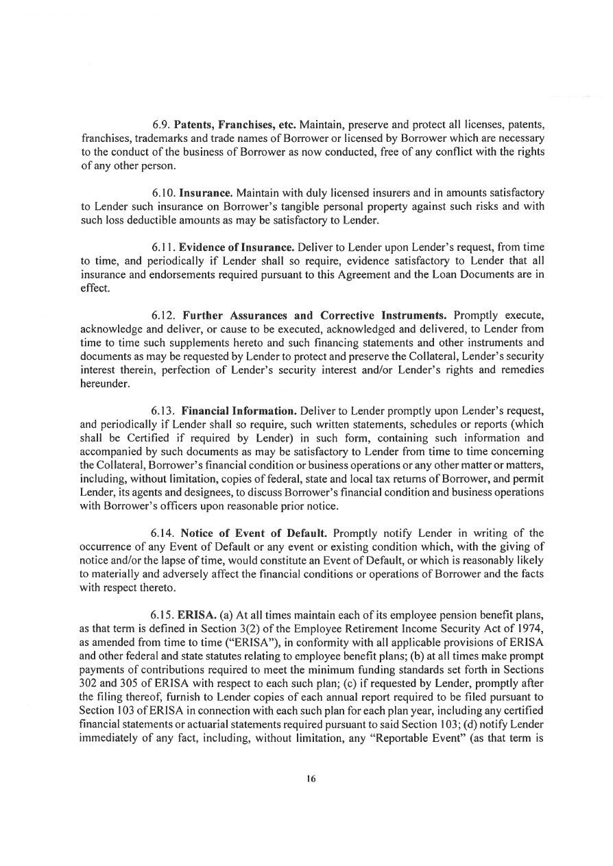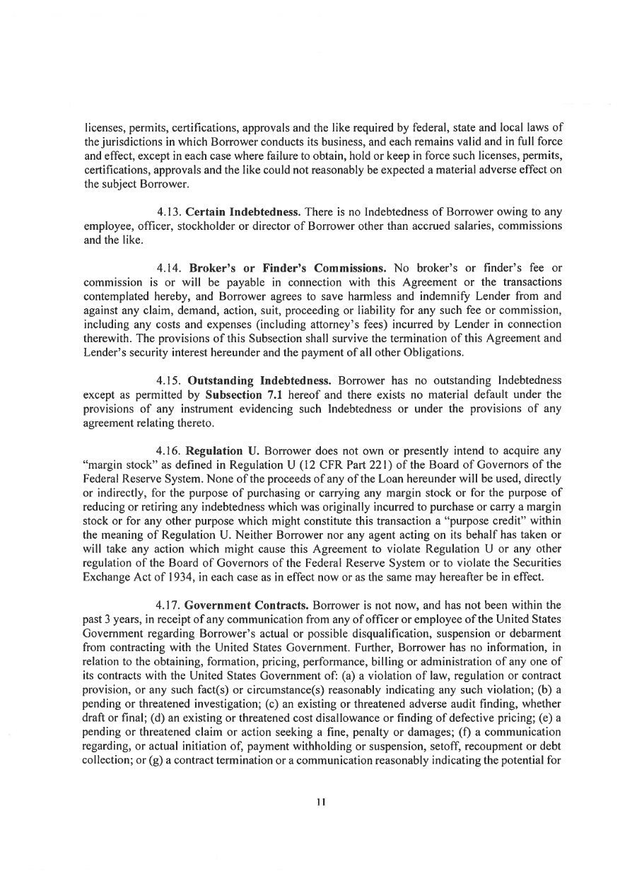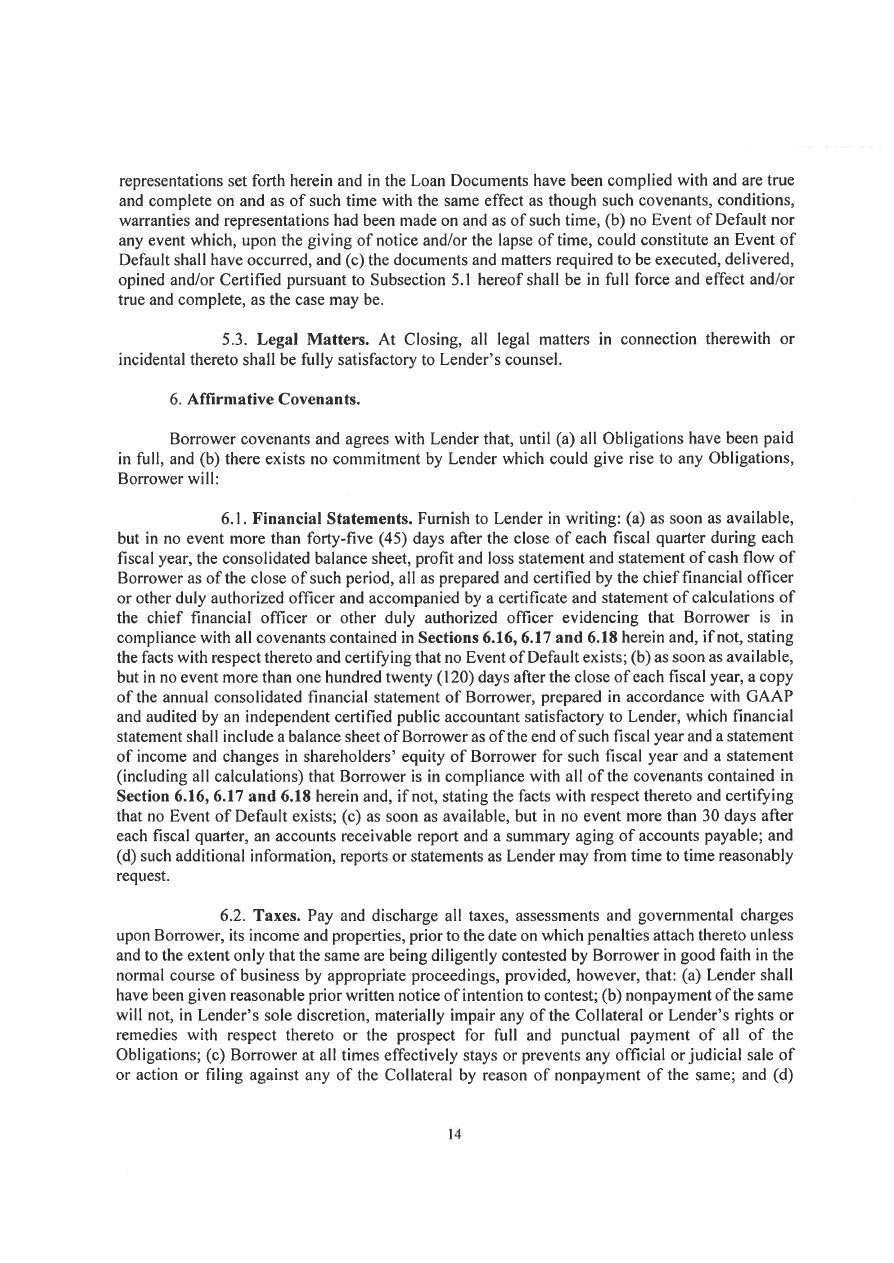 Advances under the Credit Facility are subject to a borrowing base equal to the lesser of (i) $4,000,000 or (ii) 80% of eligible accounts receivable. Interest accrues on the outstanding principal balance of the Credit Facility at an annual rate equal to the Prime Rate published in The Wall Street Journal, subject to a floor rate of 7.25%. Outstanding interest on the amount borrowed is payable monthly and all outstanding interest and principal is due on the maturity date of February 28, 2025. The Credit Facility includes customary covenants and events of default, including the following items that are measured annually commencing December 31, 2024: (i) a minimum tangible net worth of $2.0 million; (ii) a minimum annual EBITDA of $1.0 million and (iii) a ratio of current assets to current liabilities of not less than 1.0 to 1.0.