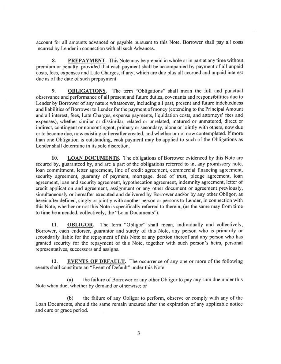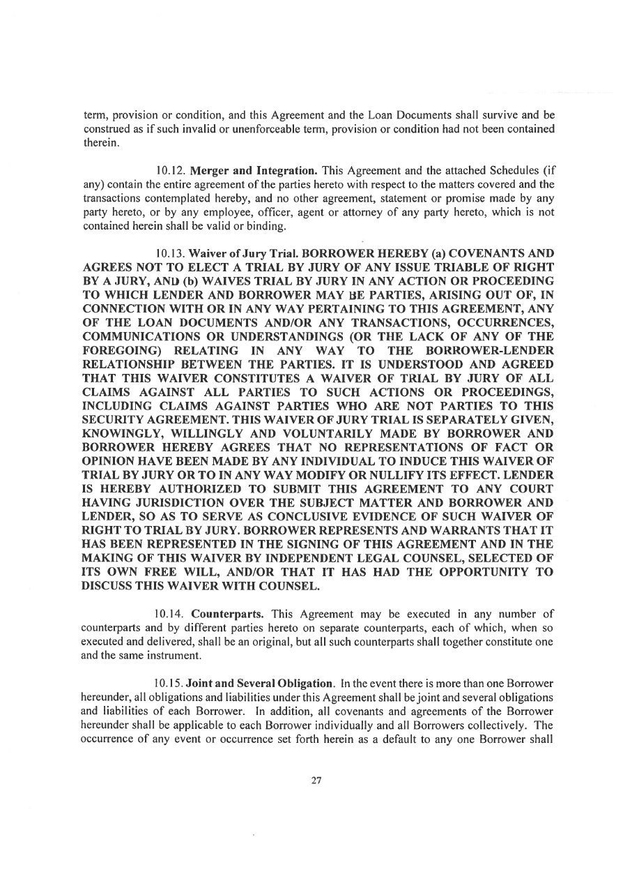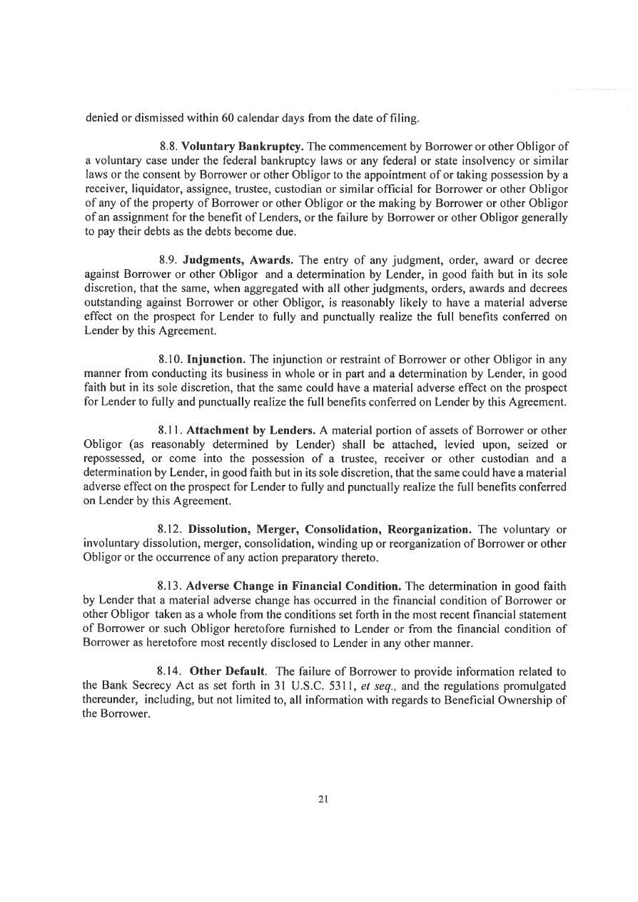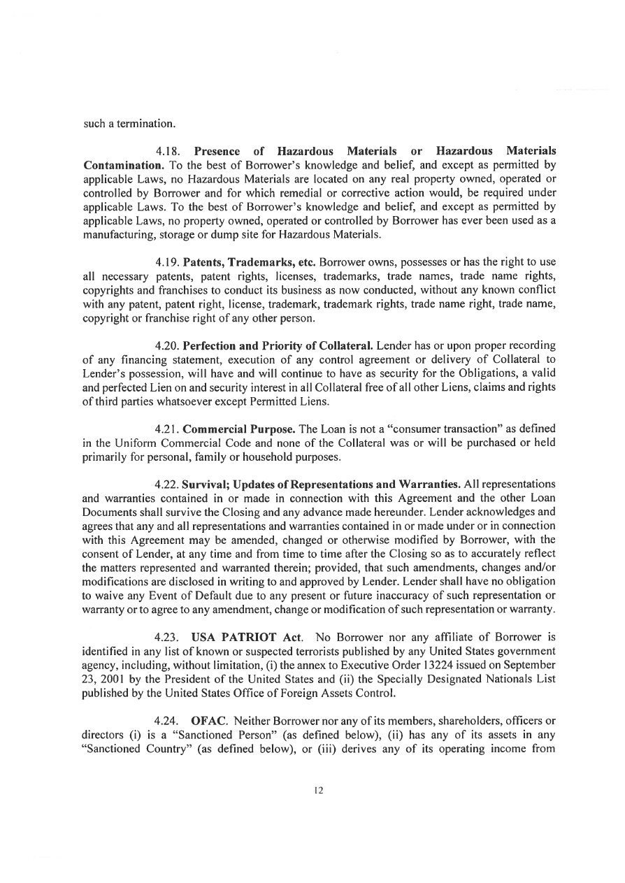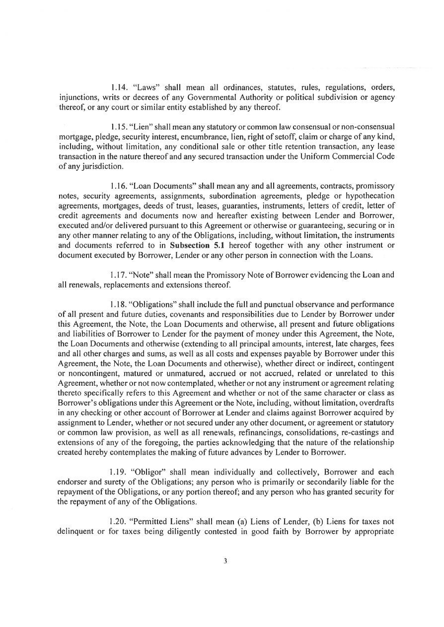 The description of the Agreements set forth above are qualified by reference to the Loan filed herewith as Exhibit 10.1 and Note filed herewith as Exhibit 10.2, which exhibits are incorporated herein by reference.
