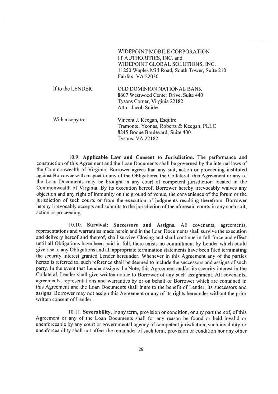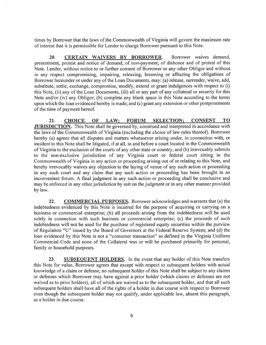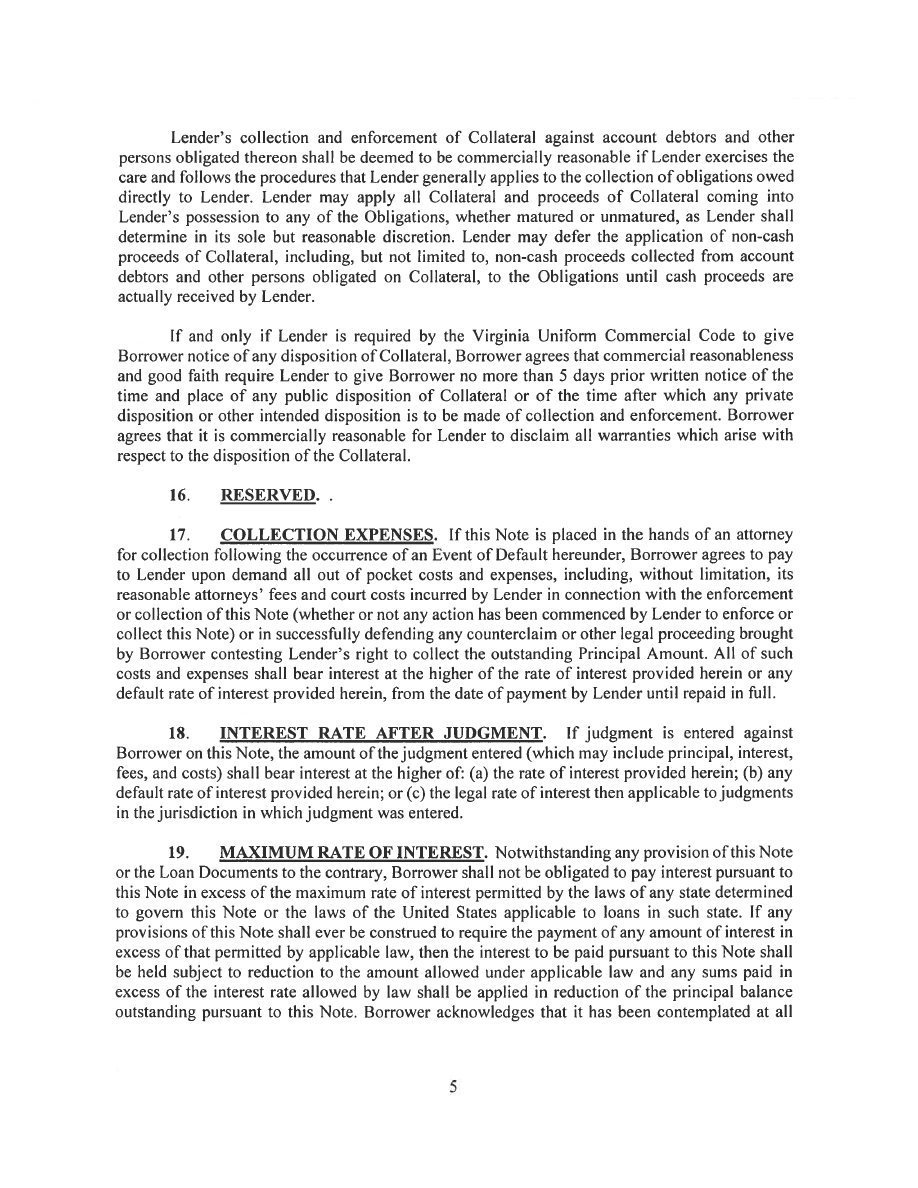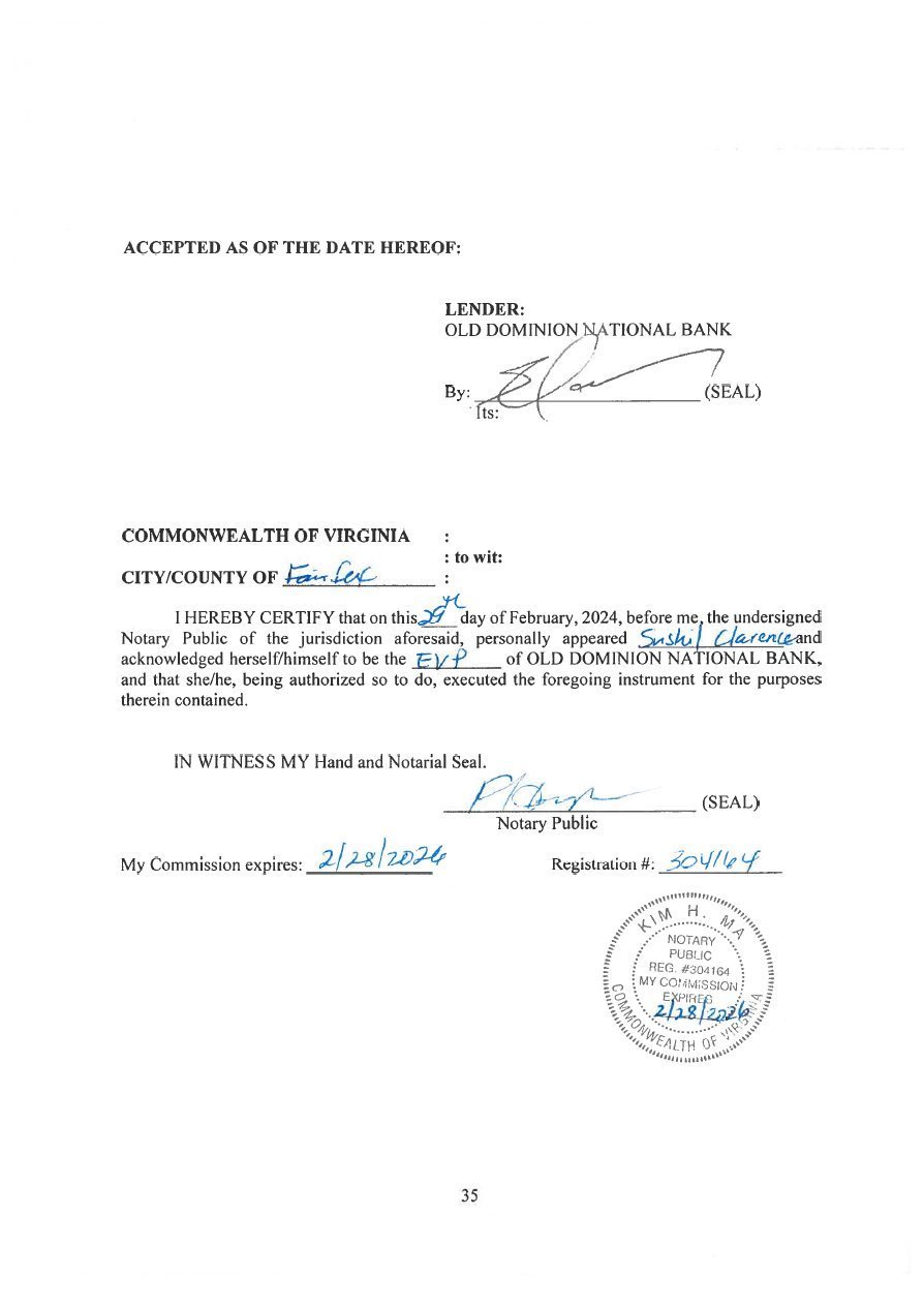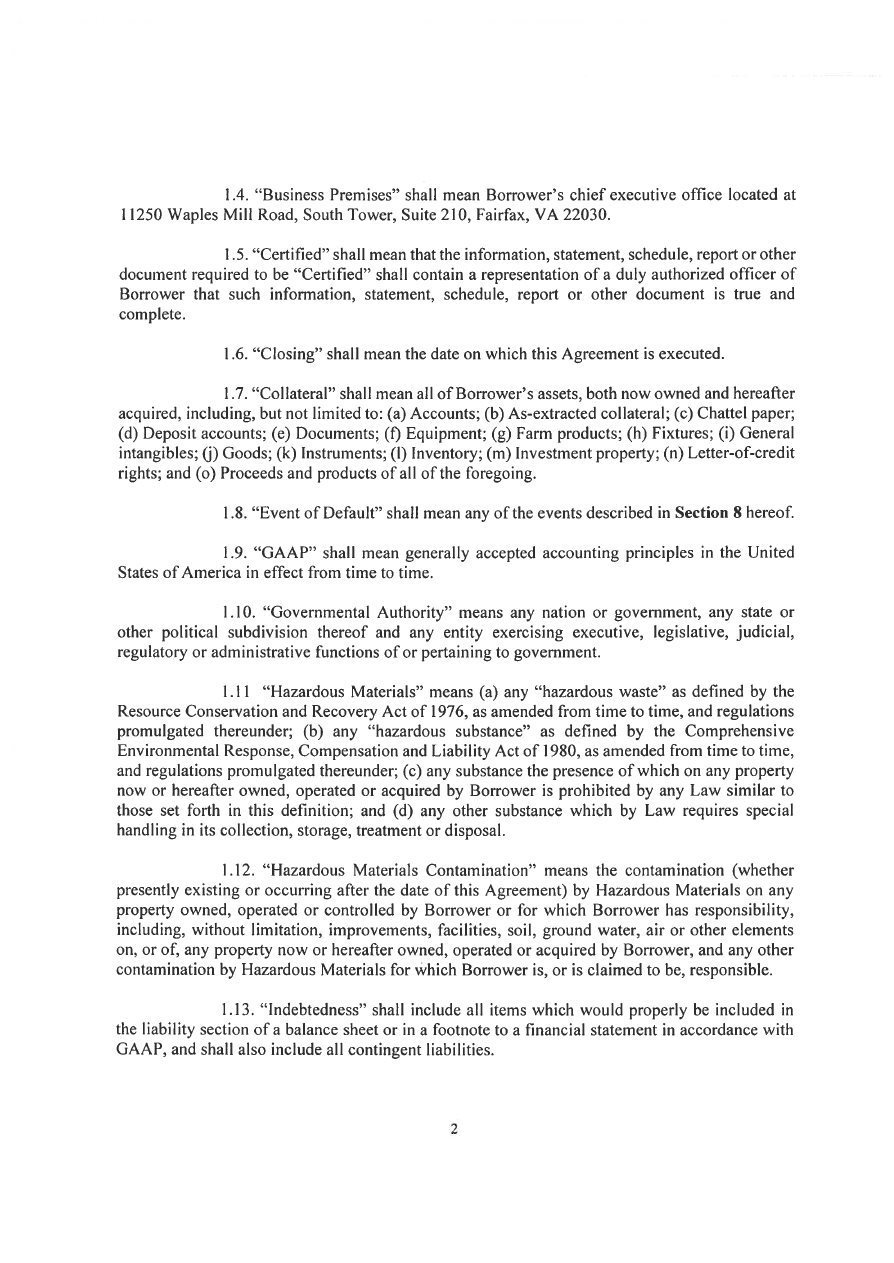 | Loan and Security Agreement with Old Dominion National Bank | |