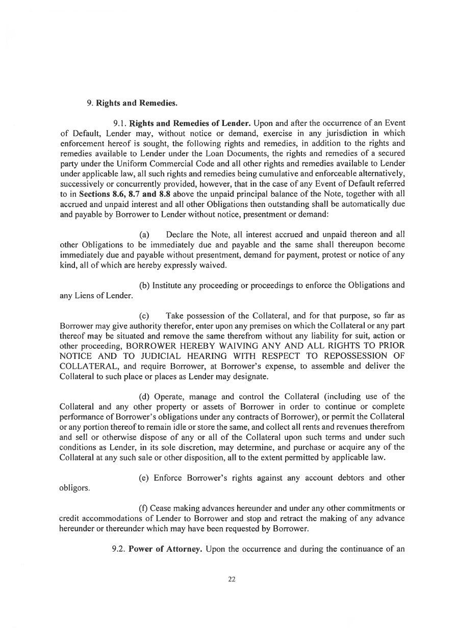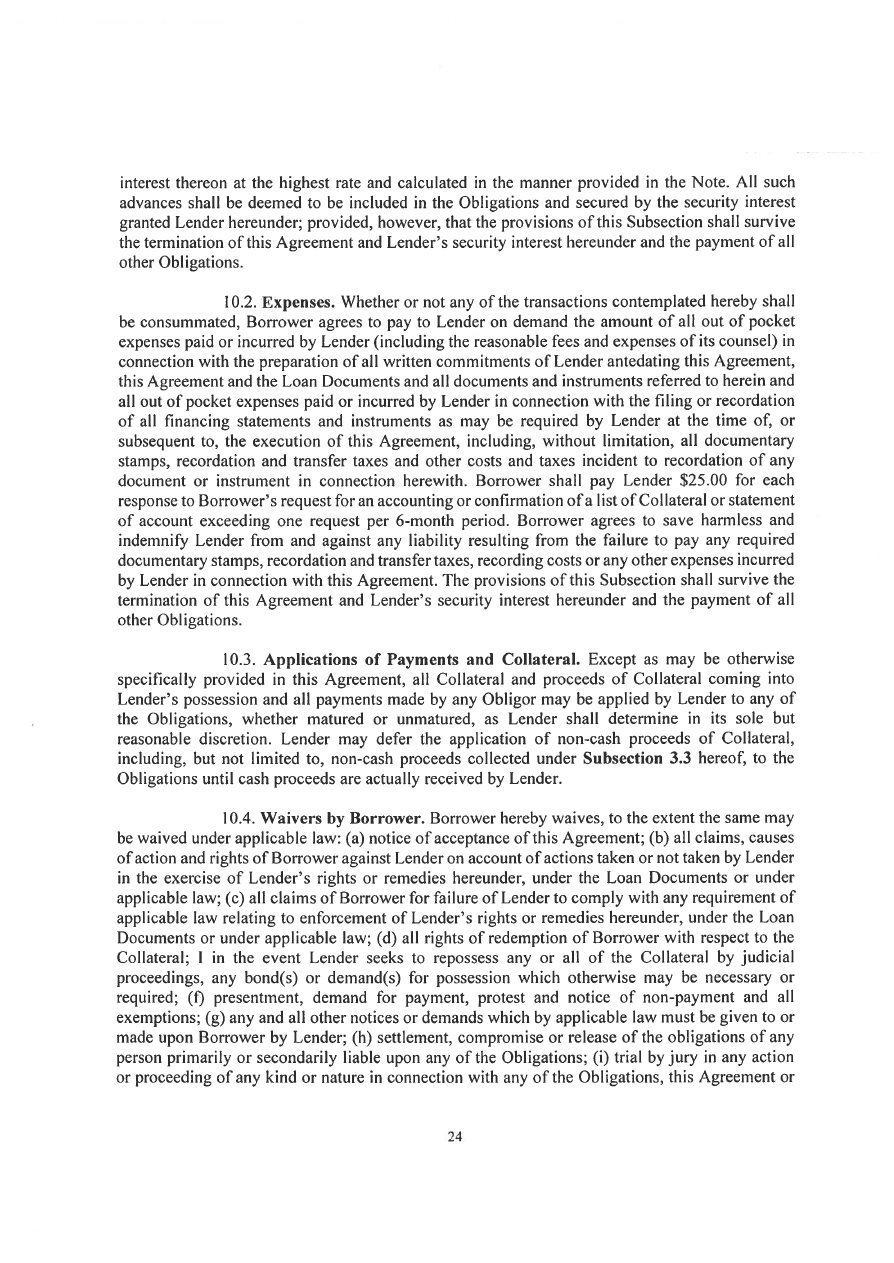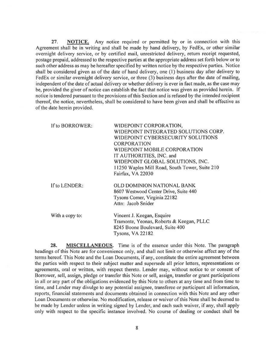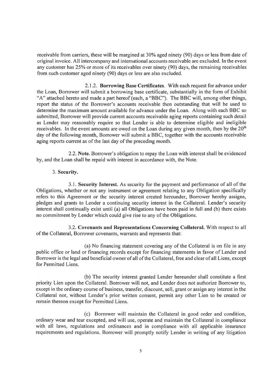 | Loan and Security Agreement with Old Dominion National Bank | |