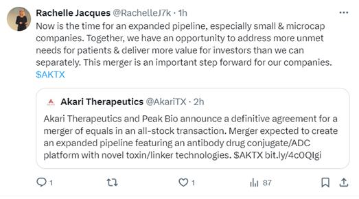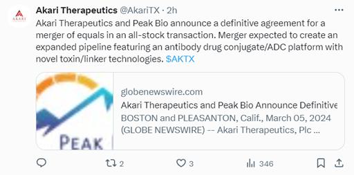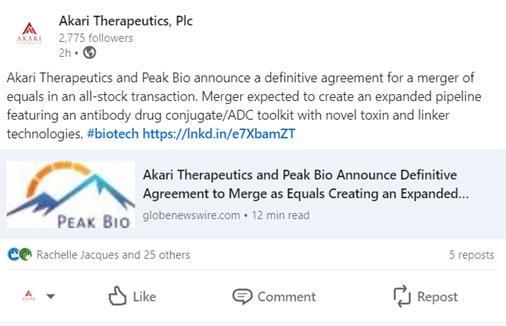 You may obtain a free copy of the Registration Statement on Form S-4, joint proxy statement/prospectus and other relevant documents (if and when they become available) that are or will be filed with the SEC for free at the SEC’s website at www.sec.gov. Copies of the documents filed with the SEC by Akari will be available free of charge on Akari’s website at http://investor.akaritx.com/ or by contacting Akari’s Investor Relations Department at http://investor.akaritx.com/investor-resources/contact-us. Copies of the documents filed with the SEC by Peak Bio will be available free of charge on Peak Bio’s website at https://peak-bio.com/investors or by contacting Peak Bio’s Investor Relations Department at https://peak-bio.com/contact.