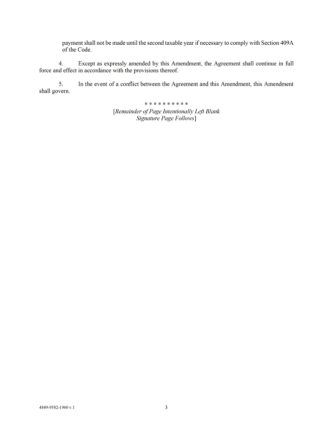 The Committee may amend this Policy from time to time in its discretion and shall amend this Policy as it deems necessary, including as and when it determines that it is legally required by any federal securities laws, SEC rule or the rules of any national securities exchange or national securities association on which the Company’s securities are then listed. The Committee may terminate this Policy at any time. Notwithstanding anything in this Section XI to the contrary, no amendment or termination of this Policy shall be effective if such amendment or termination would (after taking into account any actions taken by the Company contemporaneously with such amendment or termination) cause the Company to violate any federal securities laws, SEC rule, or the rules of any national securities exchange or national securities association on which the Company’s securities are then listed.