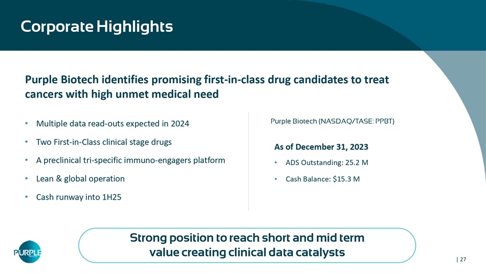 | 99.1 | Purple Biotech Corporate Presentation March 2024 |