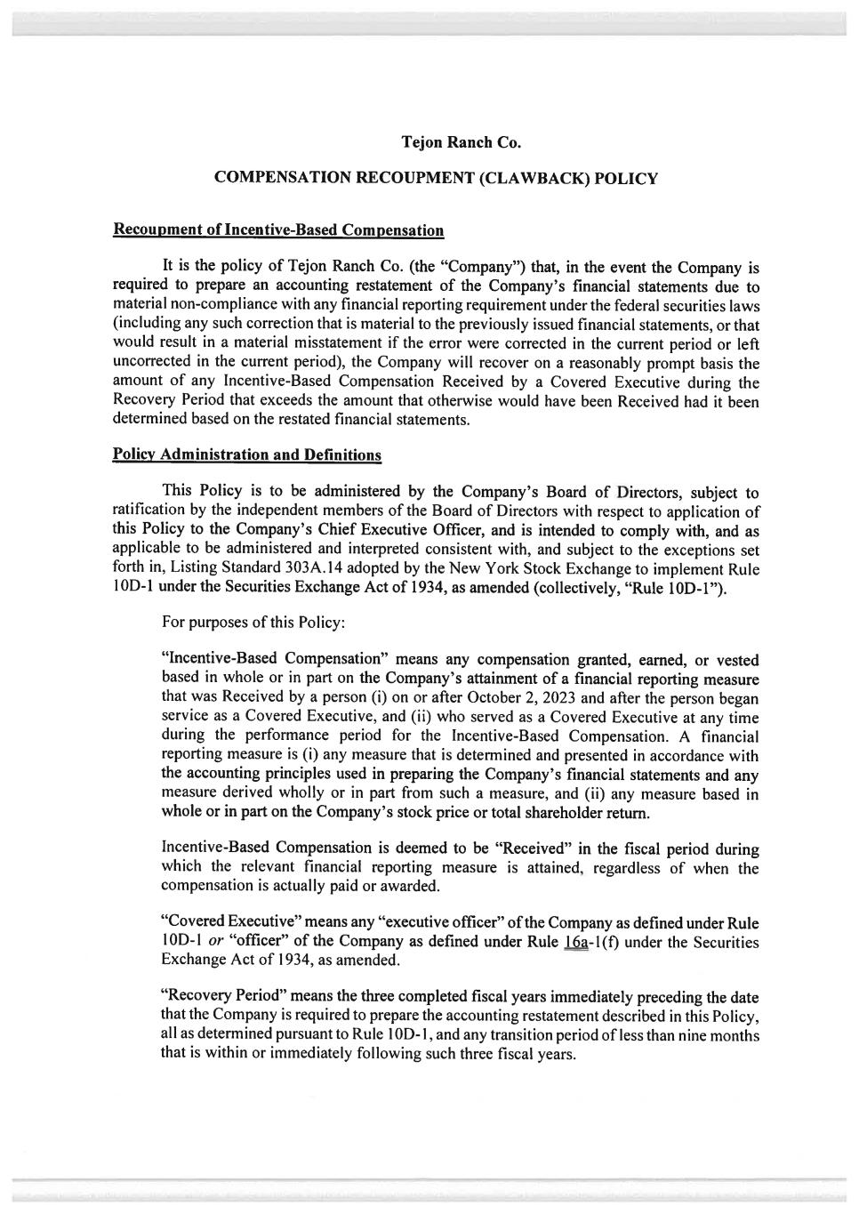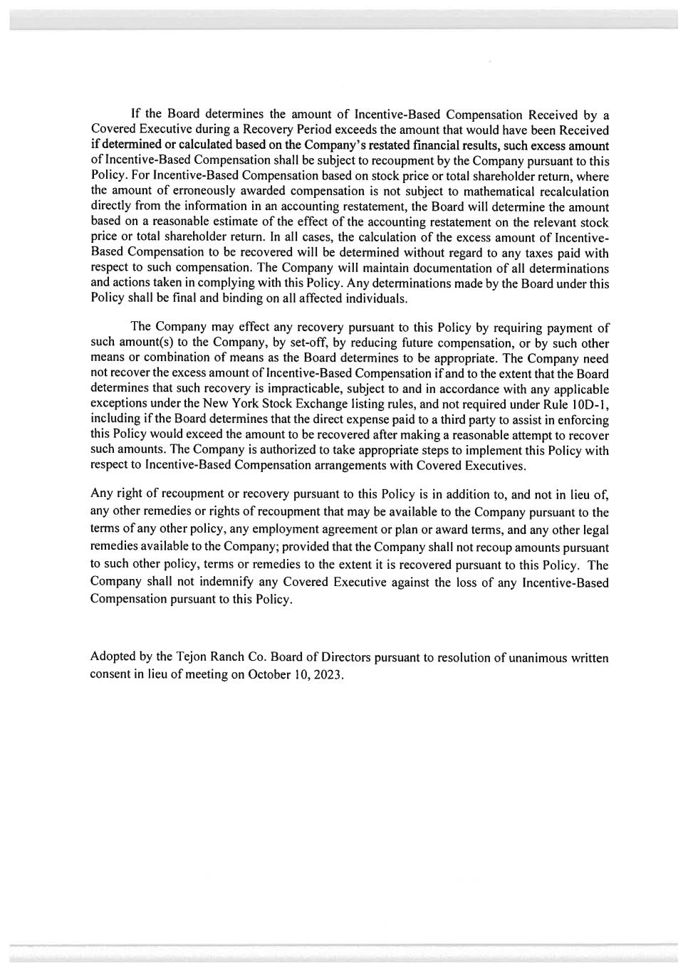 http://fasb.org/us-gaap/2023#RevenueFromContractWithCustomerExcludingAssessedTax00000968692023-01-012023-12-3100000968692023-06-30iso4217:USD00000968692024-02-29xbrli:shares00000968692023-12-3100000968692022-12-310000096869trc:CentennialFoundersLlcMember2023-12-310000096869trc:CentennialFoundersLlcMember2022-12-31iso4217:USDxbrli:shares0000096869us-gaap:OperatingSegmentsMembertrc:CommercialAndIndustrialMember2023-01-012023-12-310000096869us-gaap:OperatingSegmentsMembertrc:CommercialAndIndustrialMember2022-01-012022-12-310000096869us-gaap:OperatingSegmentsMembertrc:CommercialAndIndustrialMember2021-01-012021-12-310000096869trc:MineralResourcesMemberus-gaap:OperatingSegmentsMember2023-01-012023-12-310000096869trc:MineralResourcesMemberus-gaap:OperatingSegmentsMember2022-01-012022-12-310000096869trc:MineralResourcesMemberus-gaap:OperatingSegmentsMember2021-01-012021-12-310000096869trc:FarmingAndAgricultureMemberus-gaap:OperatingSegmentsMember2023-01-012023-12-310000096869trc:FarmingAndAgricultureMemberus-gaap:OperatingSegmentsMember2022-01-012022-12-310000096869trc:FarmingAndAgricultureMemberus-gaap:OperatingSegmentsMember2021-01-012021-12-310000096869trc:RanchOperationsMemberus-gaap:OperatingSegmentsMember2023-01-012023-12-310000096869trc:RanchOperationsMemberus-gaap:OperatingSegmentsMember2022-01-012022-12-310000096869trc:RanchOperationsMemberus-gaap:OperatingSegmentsMember2021-01-012021-12-310000096869us-gaap:OperatingSegmentsMember2023-01-012023-12-310000096869us-gaap:OperatingSegmentsMember2022-01-012022-12-310000096869us-gaap:OperatingSegmentsMember2021-01-012021-12-310000096869trc:ResortAndResidentialRealEstateMemberus-gaap:OperatingSegmentsMember2023-01-012023-12-310000096869trc:ResortAndResidentialRealEstateMemberus-gaap:OperatingSegmentsMember2022-01-012022-12-310000096869trc:ResortAndResidentialRealEstateMemberus-gaap:OperatingSegmentsMember2021-01-012021-12-310000096869us-gaap:CorporateNonSegmentMember2023-01-012023-12-310000096869us-gaap:CorporateNonSegmentMember2022-01-012022-12-310000096869us-gaap:CorporateNonSegmentMember2021-01-012021-12-3100000968692022-01-012022-12-3100000968692021-01-012021-12-310000096869us-gaap:PensionPlansDefinedBenefitMember2023-01-012023-12-310000096869us-gaap:PensionPlansDefinedBenefitMember2022-01-012022-12-310000096869us-gaap:PensionPlansDefinedBenefitMember2021-01-012021-12-310000096869us-gaap:SupplementalEmployeeRetirementPlanDefinedBenefitMember2023-01-012023-12-310000096869us-gaap:SupplementalEmployeeRetirementPlanDefinedBenefitMember2022-01-012022-12-310000096869us-gaap:SupplementalEmployeeRetirementPlanDefinedBenefitMember2021-01-012021-12-310000096869us-gaap:CommonStockMember2020-12-310000096869us-gaap:AdditionalPaidInCapitalMember2020-12-310000096869us-gaap:AccumulatedOtherComprehensiveIncomeMember2020-12-310000096869us-gaap:RetainedEarningsMember2020-12-310000096869us-gaap:ParentMember2020-12-310000096869us-gaap:NoncontrollingInterestMember2020-12-3100000968692020-12-310000096869us-gaap:RetainedEarningsMember2021-01-012021-12-310000096869us-gaap:ParentMember2021-01-012021-12-310000096869us-gaap:NoncontrollingInterestMember2021-01-012021-12-310000096869us-gaap:AccumulatedOtherComprehensiveIncomeMember2021-01-012021-12-310000096869us-gaap:CommonStockMember2021-01-012021-12-310000096869us-gaap:AdditionalPaidInCapitalMember2021-01-012021-12-310000096869us-gaap:CommonStockMember2021-12-310000096869us-gaap:AdditionalPaidInCapitalMember2021-12-310000096869us-gaap:AccumulatedOtherComprehensiveIncomeMember2021-12-310000096869us-gaap:RetainedEarningsMember2021-12-310000096869us-gaap:ParentMember2021-12-310000096869us-gaap:NoncontrollingInterestMember2021-12-3100000968692021-12-310000096869us-gaap:RetainedEarningsMember2022-01-012022-12-310000096869us-gaap:ParentMember2022-01-012022-12-310000096869us-gaap:NoncontrollingInterestMember2022-01-012022-12-310000096869us-gaap:AccumulatedOtherComprehensiveIncomeMember2022-01-012022-12-310000096869us-gaap:CommonStockMember2022-01-012022-12-310000096869us-gaap:AdditionalPaidInCapitalMember2022-01-012022-12-310000096869us-gaap:CommonStockMember2022-12-310000096869us-gaap:AdditionalPaidInCapitalMember2022-12-310000096869us-gaap:AccumulatedOtherComprehensiveIncomeMember2022-12-310000096869us-gaap:RetainedEarningsMember2022-12-310000096869us-gaap:ParentMember2022-12-310000096869us-gaap:NoncontrollingInterestMember2022-12-310000096869us-gaap:RetainedEarningsMember2023-01-012023-12-310000096869us-gaap:ParentMember2023-01-012023-12-310000096869us-gaap:AccumulatedOtherComprehensiveIncomeMember2023-01-012023-12-310000096869us-gaap:CommonStockMember2023-01-012023-12-310000096869us-gaap:AdditionalPaidInCapitalMember2023-01-012023-12-310000096869us-gaap:CommonStockMember2023-12-310000096869us-gaap:AdditionalPaidInCapitalMember2023-12-310000096869us-gaap:AccumulatedOtherComprehensiveIncomeMember2023-12-310000096869us-gaap:RetainedEarningsMember2023-12-310000096869us-gaap:ParentMember2023-12-310000096869us-gaap:NoncontrollingInterestMember2023-12-310000096869us-gaap:PublicUtilitiesInventoryWaterMember2023-01-012023-12-310000096869us-gaap:InterestRateSwapMember2023-10-232023-10-230000096869us-gaap:InterestRateSwapMember2022-06-272022-06-27trc:segmentutr:acre0000096869trc:LosAngelesCaliforniaMember2023-01-012023-12-31utr:mi0000096869trc:BakersfieldCaliforniaMember2023-01-012023-12-31trc:venturetrc:entity0000096869trc:PastoriaEnergyFacilityLLCMemberus-gaap:CustomerConcentrationRiskMemberus-gaap:RevenueFromContractWithCustomerMember2023-01-012023-12-31xbrli:pure0000096869trc:PastoriaEnergyFacilityLLCMemberus-gaap:CustomerConcentrationRiskMemberus-gaap:RevenueFromContractWithCustomerMember2022-01-012022-12-310000096869trc:PastoriaEnergyFacilityLLCMemberus-gaap:CustomerConcentrationRiskMemberus-gaap:RevenueFromContractWithCustomerMember2021-01-012021-12-310000096869trc:VineyardsAndOrchardsMember2023-12-310000096869trc:VineyardsAndOrchardsMember2022-12-310000096869srt:MinimumMemberus-gaap:OtherMachineryAndEquipmentMember2023-12