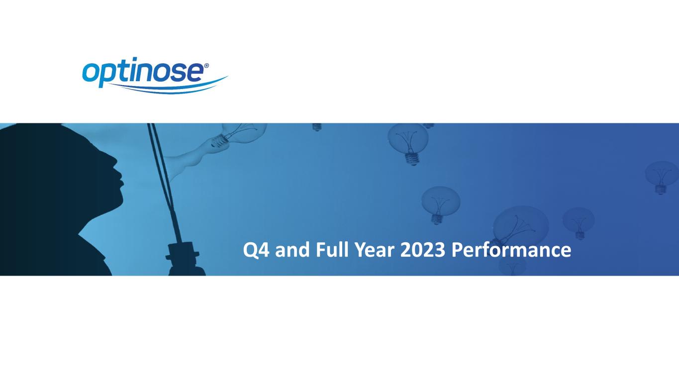 YARDLEY, Pa., March 7, 2024 Optinose (NASDAQ:OPTN), a pharmaceutical company focused on patients treated by ear, nose and throat (ENT) and allergy specialists, today reported financial results for the quarter and year ended December 31, 2023, and provided recent operational highlights.
