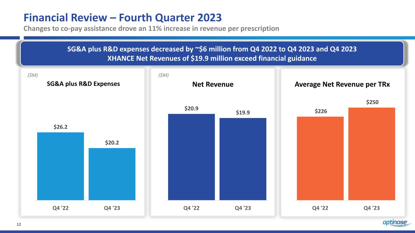 Company reports fourth quarter and full year 2023 XHANCE net revenue of $19.9 million and $71.0 million