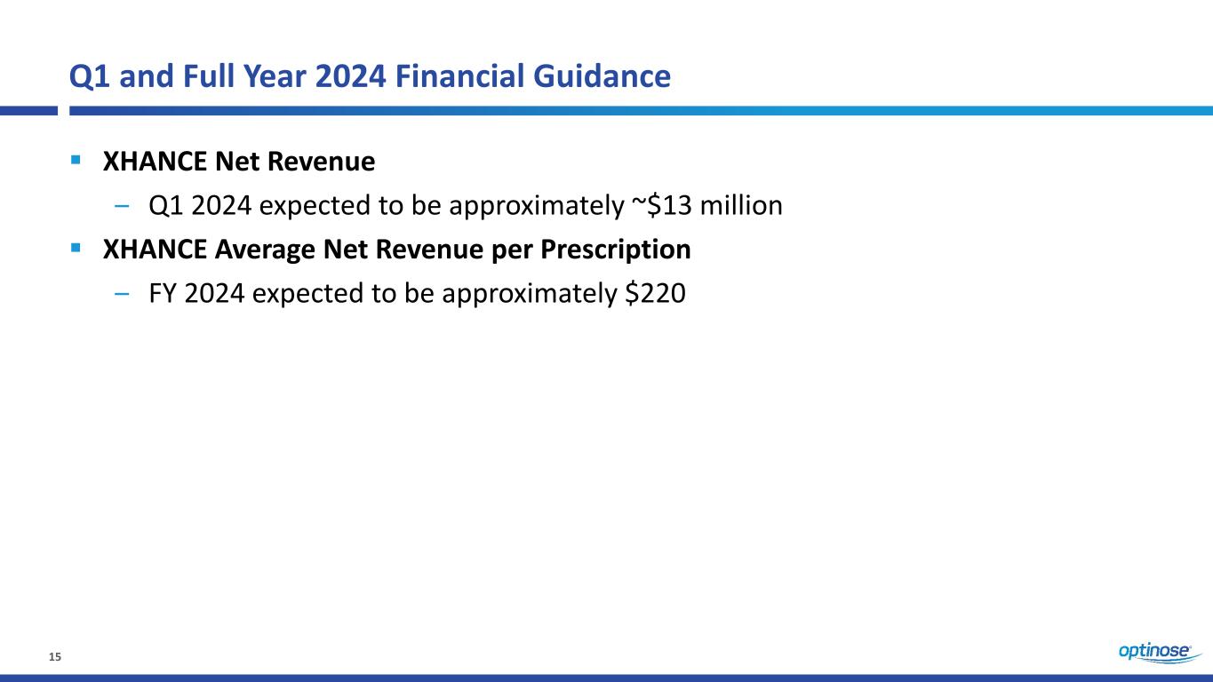 15 Q1 and Full Year 2024 Financial Guidance XHANCE Net Revenue ‒ Q1 2024 expected to be approximately ~$13 million XHANCE Average Net Revenue per Prescription ‒ FY 2024 expected to be approximately $220