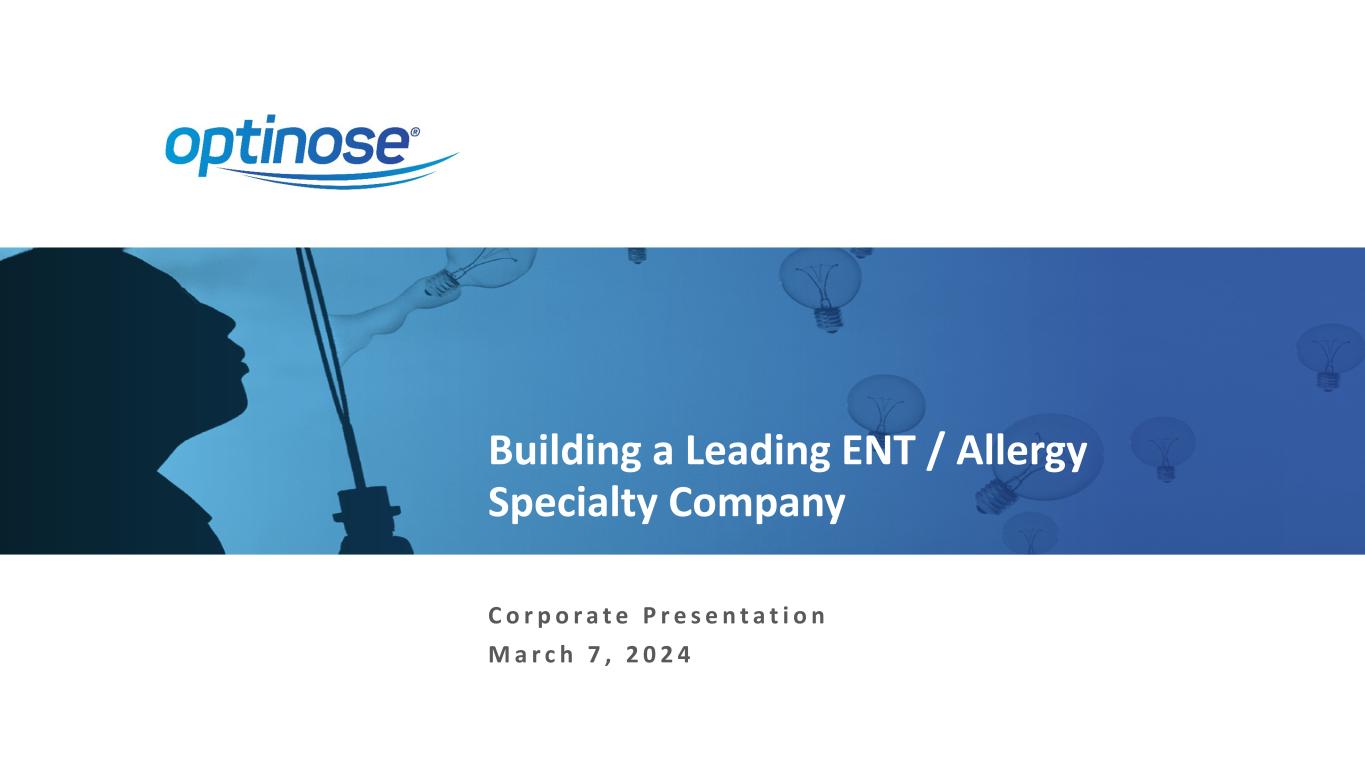 Building a Leading ENT / Allergy Specialty Company C o r p o r a t e P r e s e n t a t i o n M a r c h 7 , 2 0 2 4