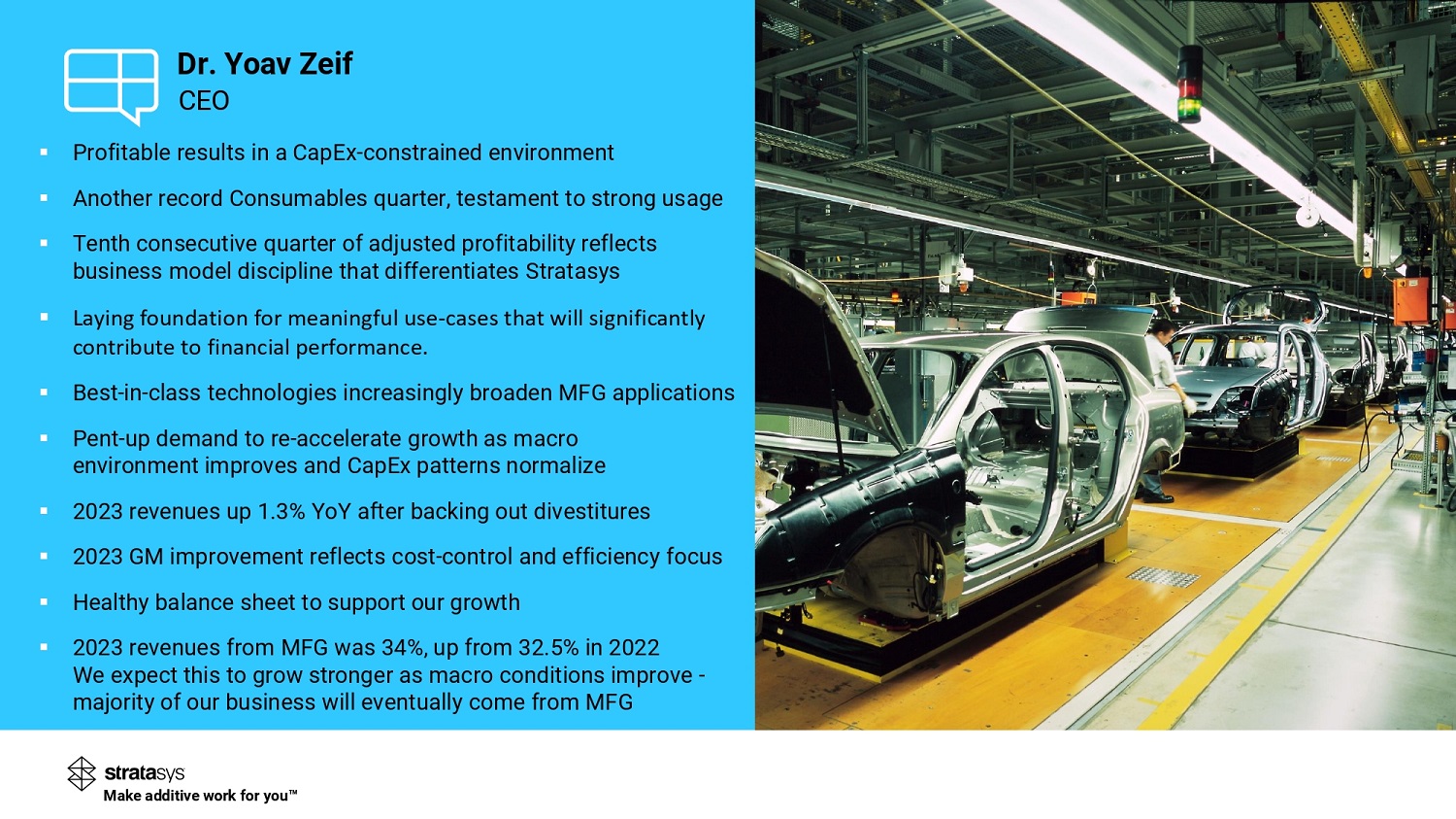 On March 7, 2024, Stratasys Ltd. (“we” or “us”) announced our financial results for the fourth quarter and fiscal year ended December 31, 2023. A copy of our press release announcing our results is furnished as Exhibit 99.1 to this Report of Foreign Private Issuer on Form 6-K (this “Form 6-K”) and is incorporated herein by reference.