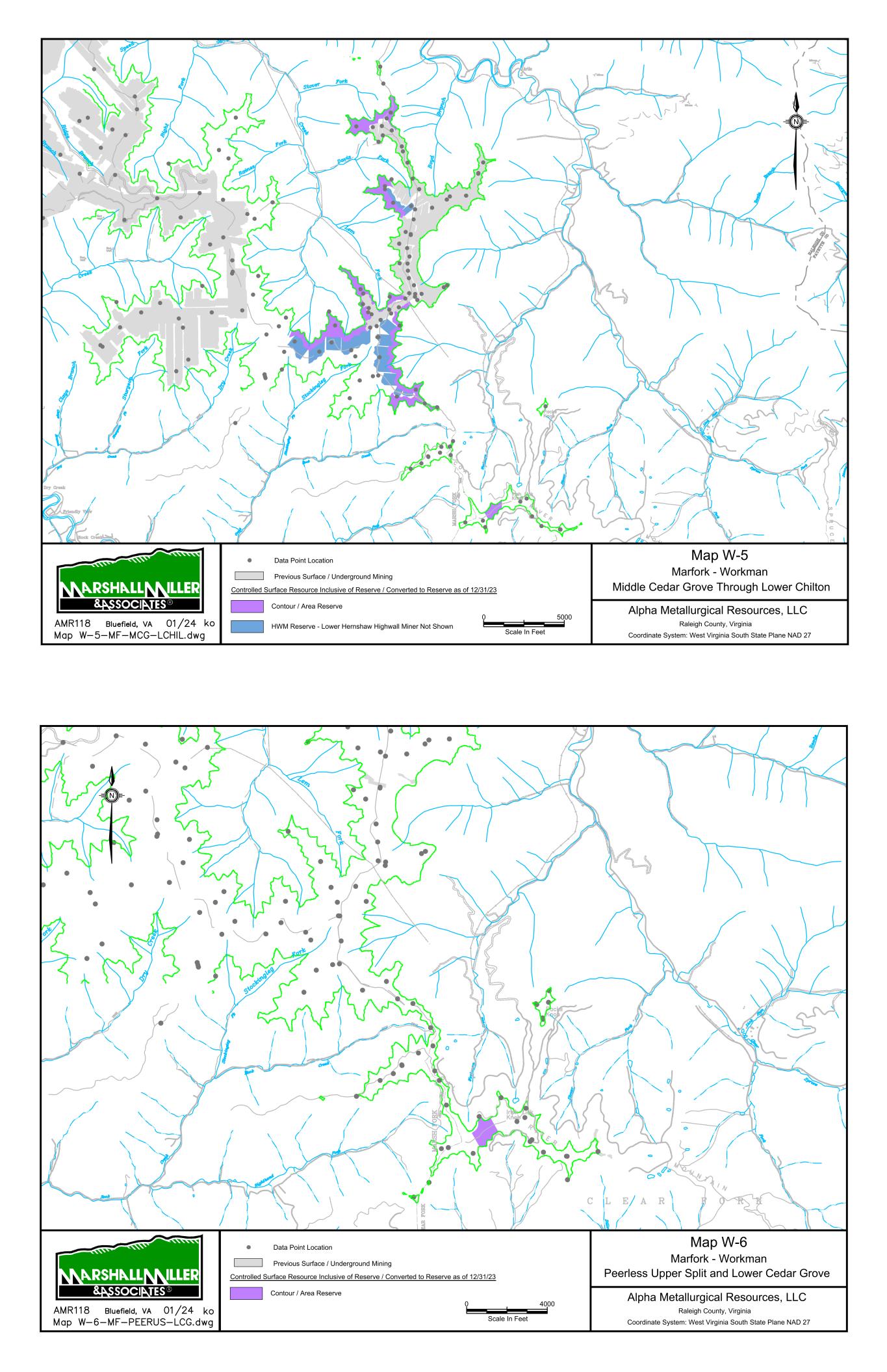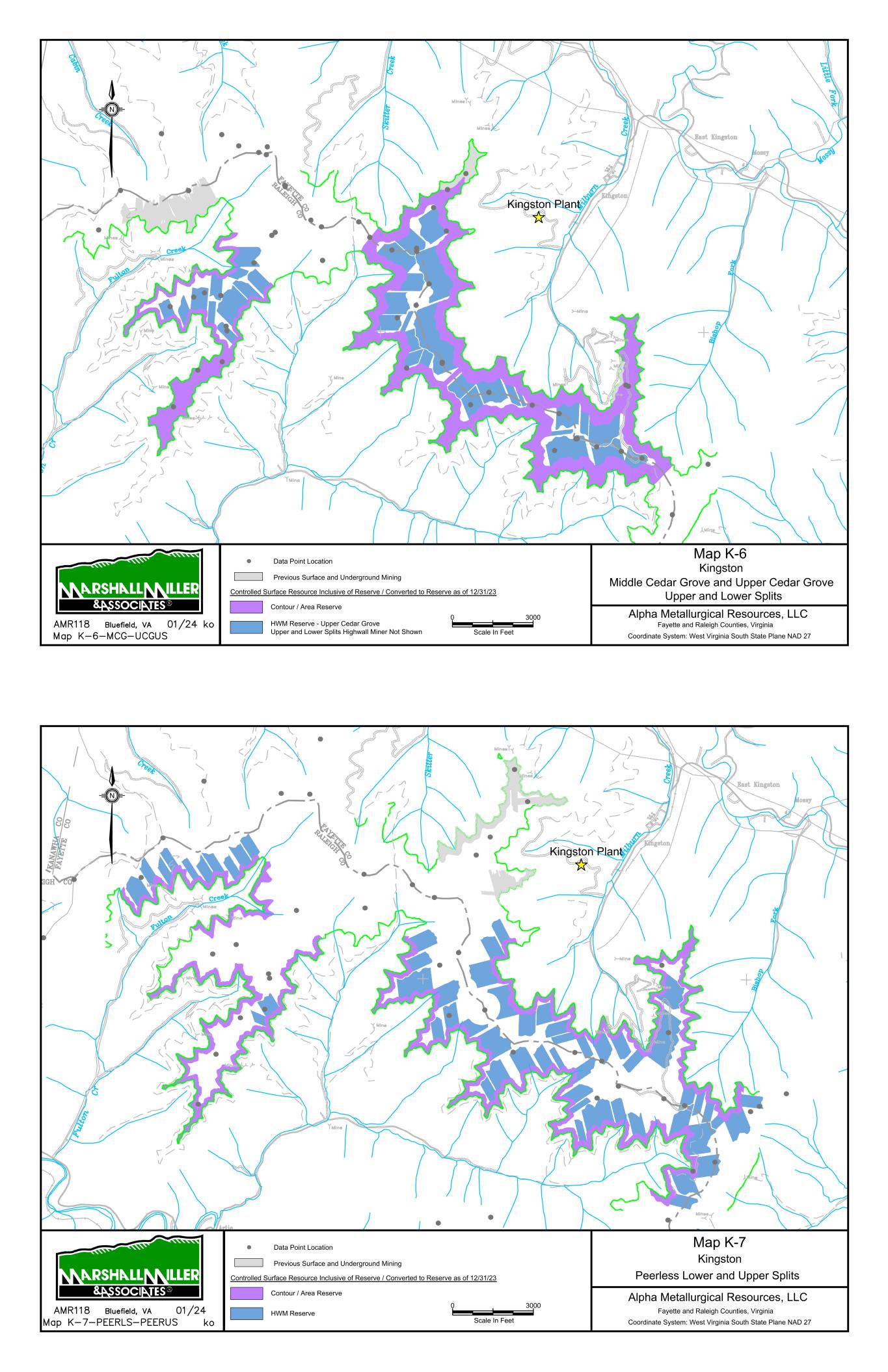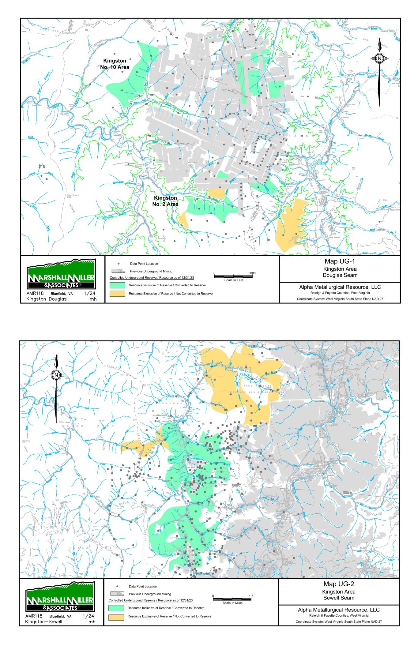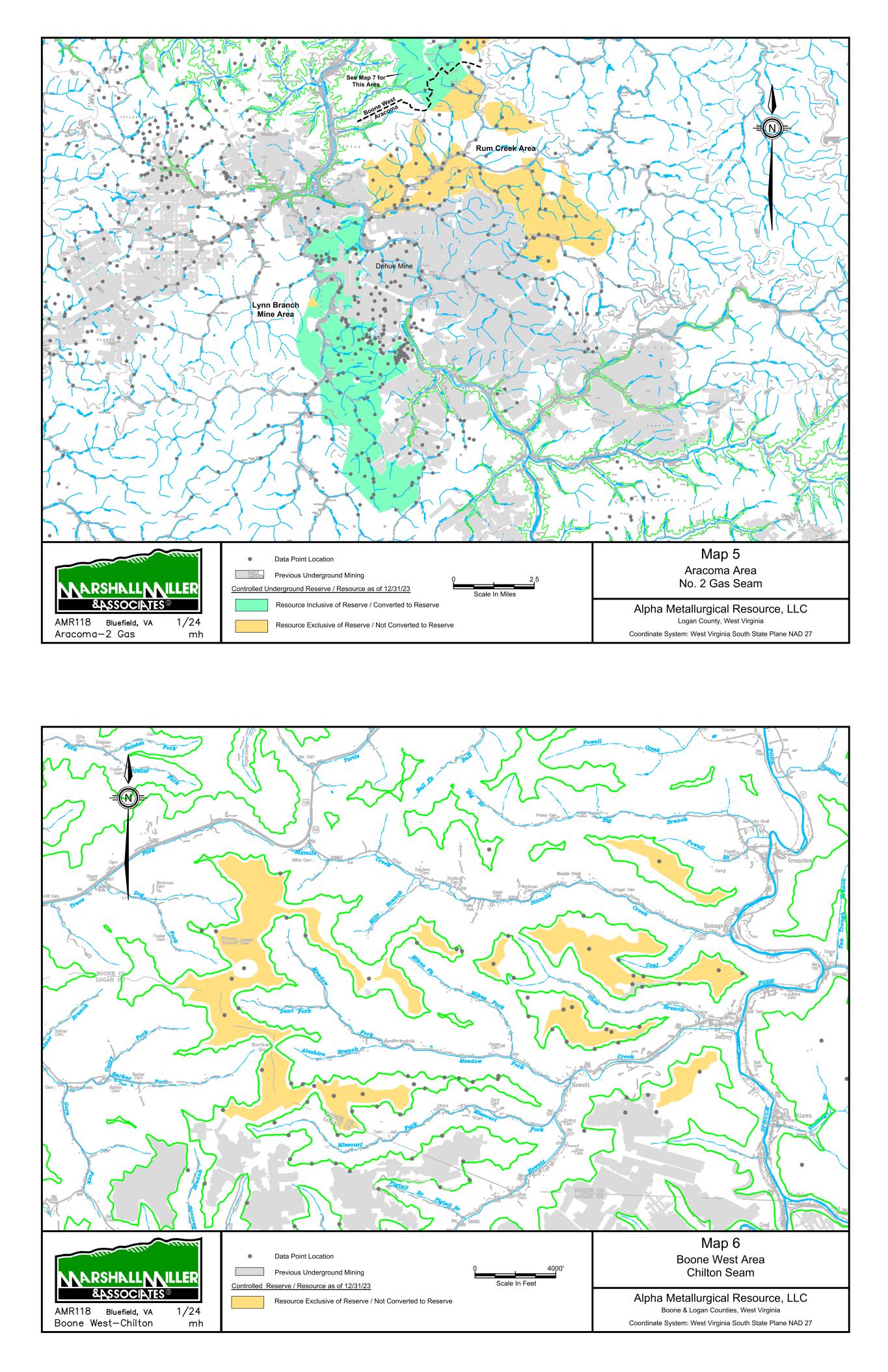 9/14/67 Prenter Area Black King Area 7000 Scale In Feet 0 Data Point Location Map 1 Elk Run Area Upper Cedar Grove Seam Alpha Metallurgical Resource, LLC Boone & Raleigh Counties, West Virginia Coordinate System: West Virginia South State Plane NAD 27 Controlled Underground Reserve / Resource as of 12/31/23 Previous Underground Mining N Resource Exclusive of Reserve / Not Converted to Reserve Resource Inclusive of Reserve / Converted to Reserve Caymus Mine Castle East Portal Mine Castle Peerless Mine Castle Peerless Area 5000' Scale In Feet 0 Data Point Location Map 2 Elk Run Peerless Seam Alpha Metallurgical Resource, LLC Boone, Raleigh, Kanawha & Fayette Counties, West Virginia Coordinate System: West Virginia South State Plane NAD 27 Controlled Underground Reserve / Resource as of 12/31/23 Previous Underground Mining N Resource Exclusive of Reserve / Not Converted to Reserve