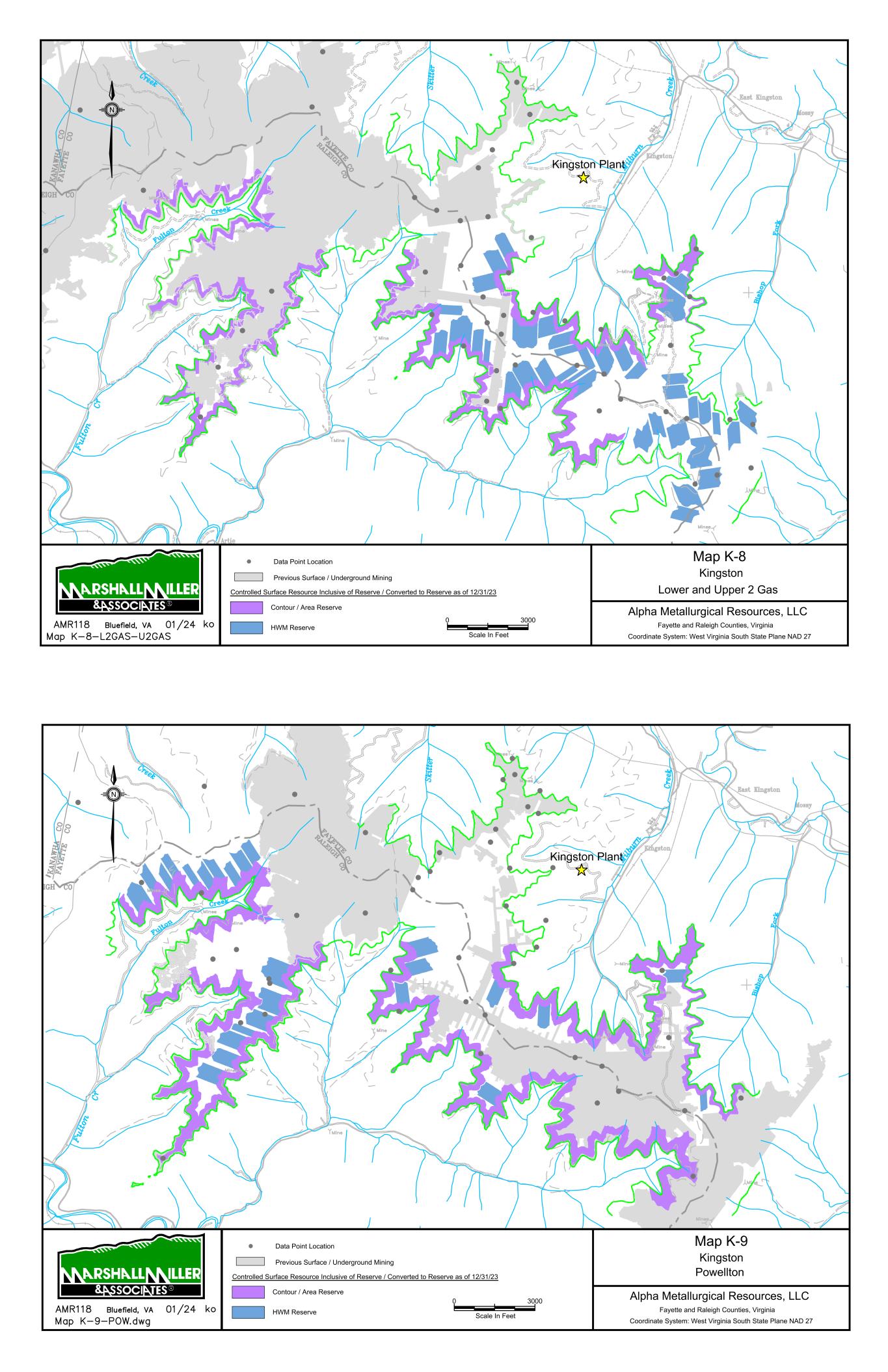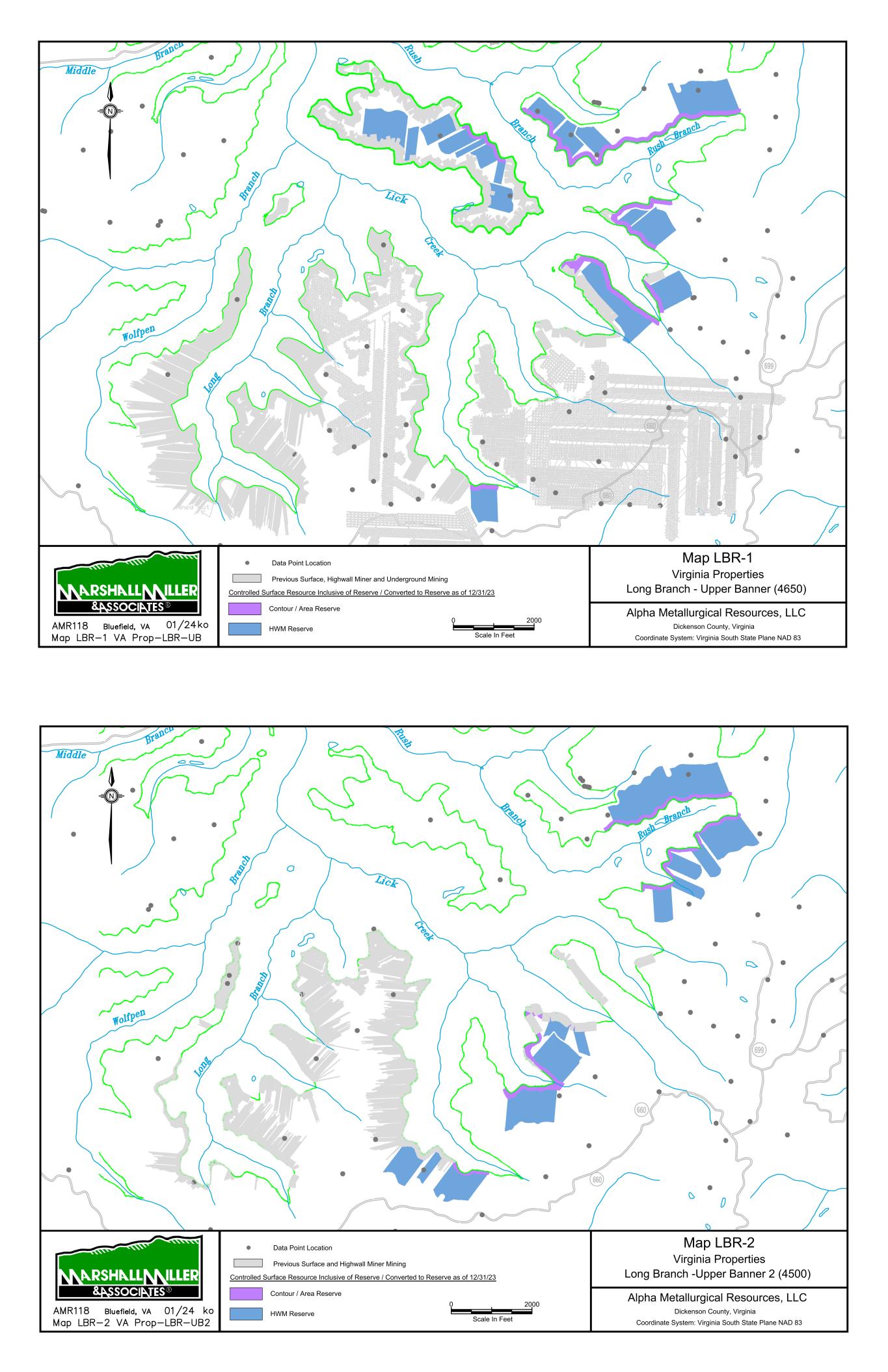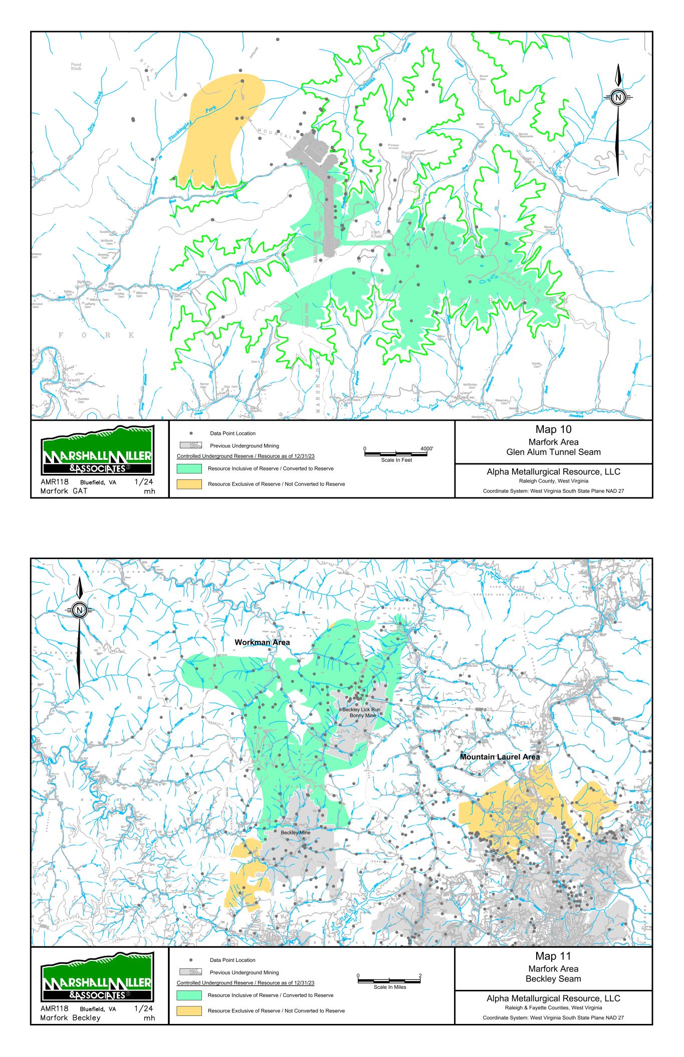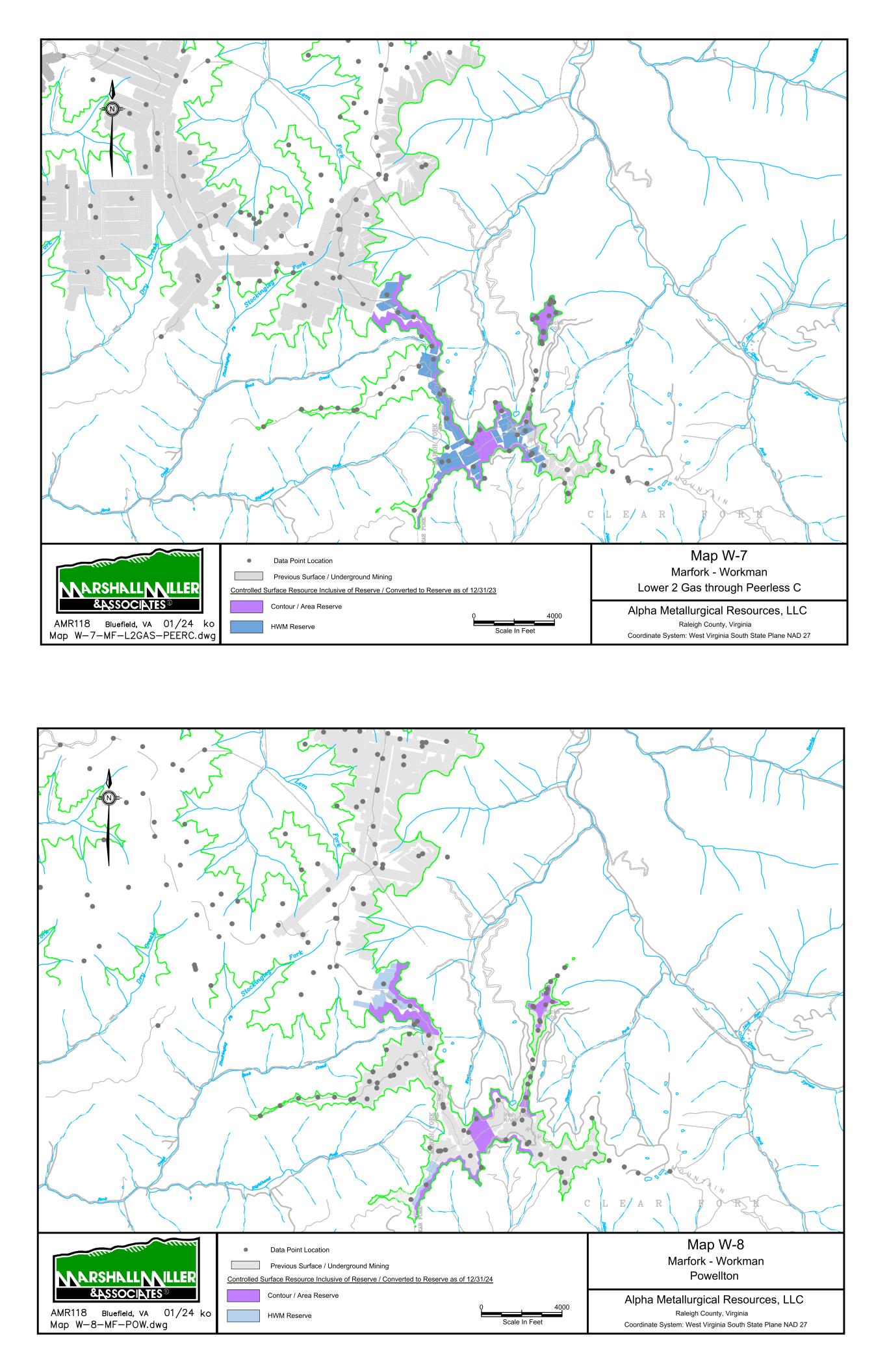 9/14/67 Prenter Area Black King Area 7000 Scale In Feet 0 Data Point Location Map 1 Elk Run Area Upper Cedar Grove Seam Alpha Metallurgical Resource, LLC Boone & Raleigh Counties, West Virginia Coordinate System: West Virginia South State Plane NAD 27 Controlled Underground Reserve / Resource as of 12/31/23 Previous Underground Mining N Resource Exclusive of Reserve / Not Converted to Reserve Resource Inclusive of Reserve / Converted to Reserve Caymus Mine Castle East Portal Mine Castle Peerless Mine Castle Peerless Area 5000' Scale In Feet 0 Data Point Location Map 2 Elk Run Peerless Seam Alpha Metallurgical Resource, LLC Boone, Raleigh, Kanawha & Fayette Counties, West Virginia Coordinate System: West Virginia South State Plane NAD 27 Controlled Underground Reserve / Resource as of 12/31/23 Previous Underground Mining N Resource Exclusive of Reserve / Not Converted to Reserve
