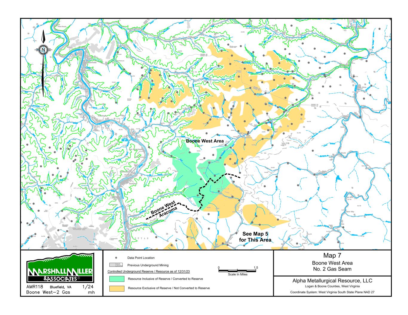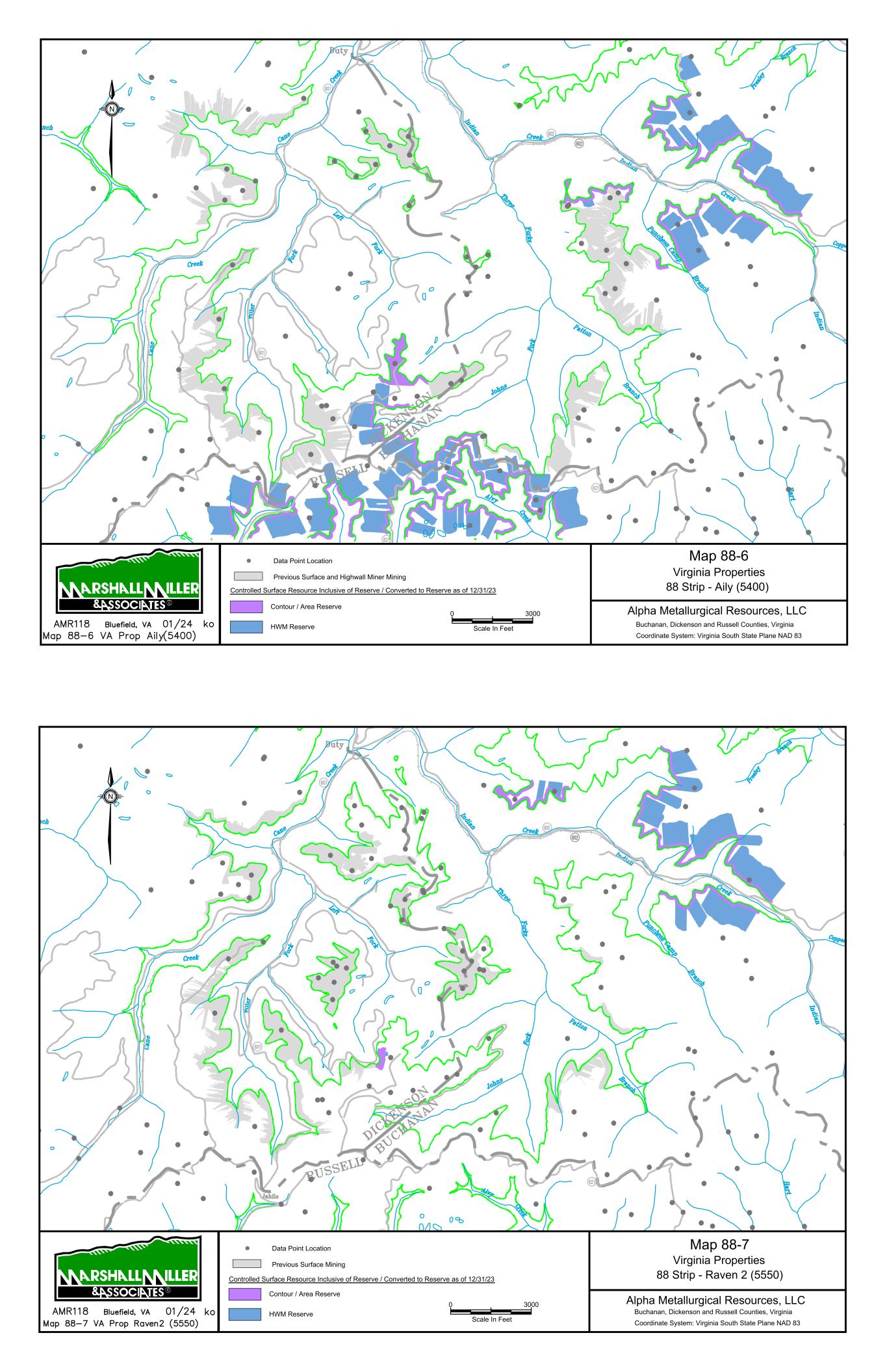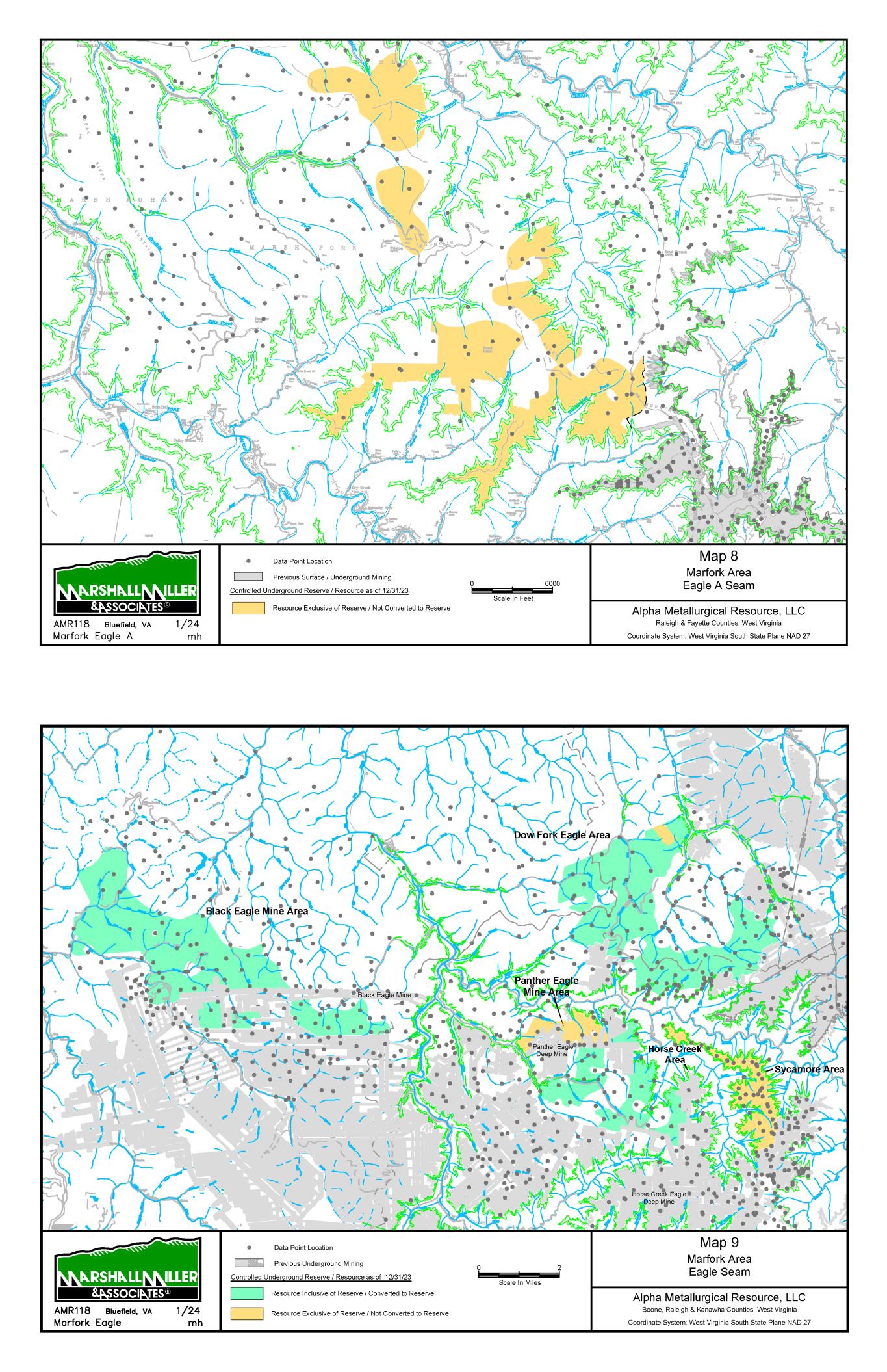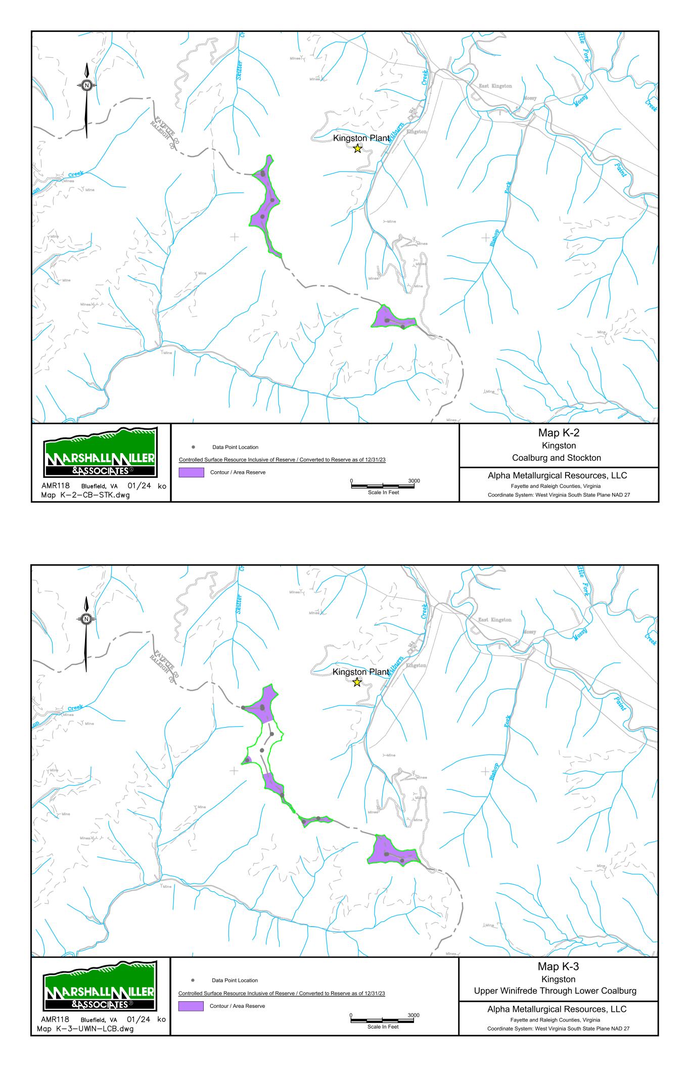 9/14/67 Prenter Area Black King Area 7000 Scale In Feet 0 Data Point Location Map 1 Elk Run Area Upper Cedar Grove Seam Alpha Metallurgical Resource, LLC Boone & Raleigh Counties, West Virginia Coordinate System: West Virginia South State Plane NAD 27 Controlled Underground Reserve / Resource as of 12/31/23 Previous Underground Mining N Resource Exclusive of Reserve / Not Converted to Reserve Resource Inclusive of Reserve / Converted to Reserve Caymus Mine Castle East Portal Mine Castle Peerless Mine Castle Peerless Area 5000' Scale In Feet 0 Data Point Location Map 2 Elk Run Peerless Seam Alpha Metallurgical Resource, LLC Boone, Raleigh, Kanawha & Fayette Counties, West Virginia Coordinate System: West Virginia South State Plane NAD 27 Controlled Underground Reserve / Resource as of 12/31/23 Previous Underground Mining N Resource Exclusive of Reserve / Not Converted to Reserve