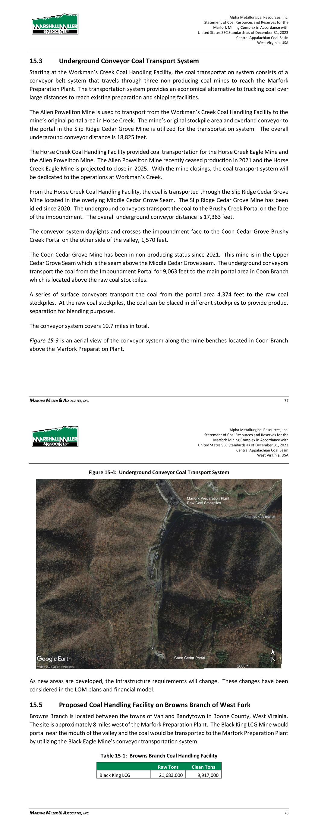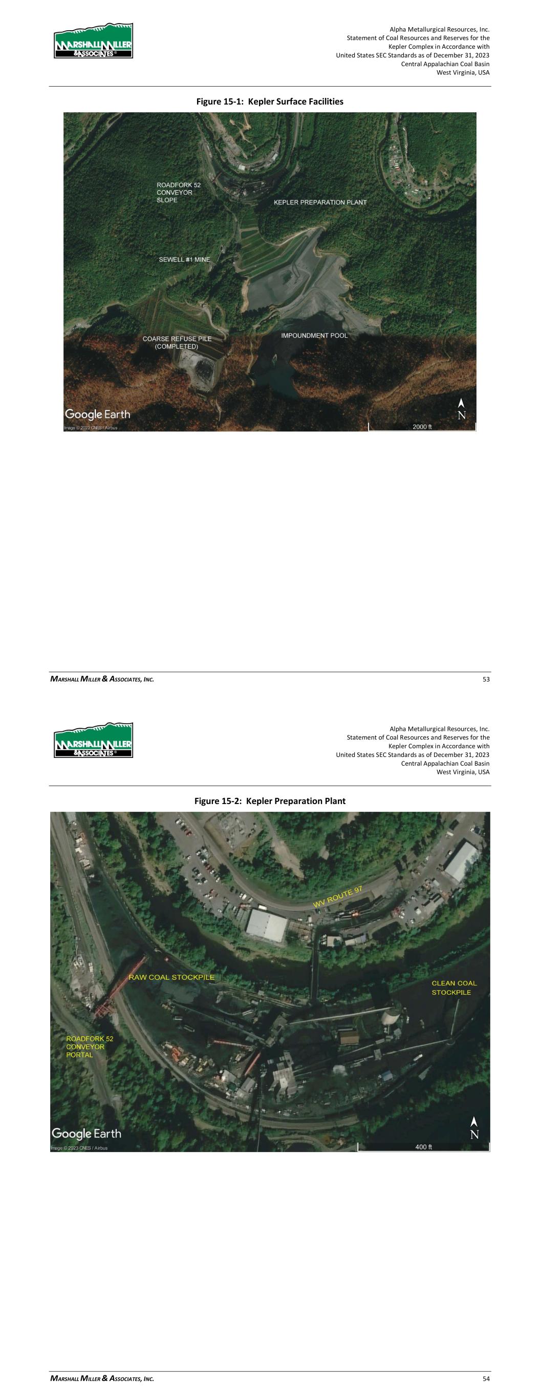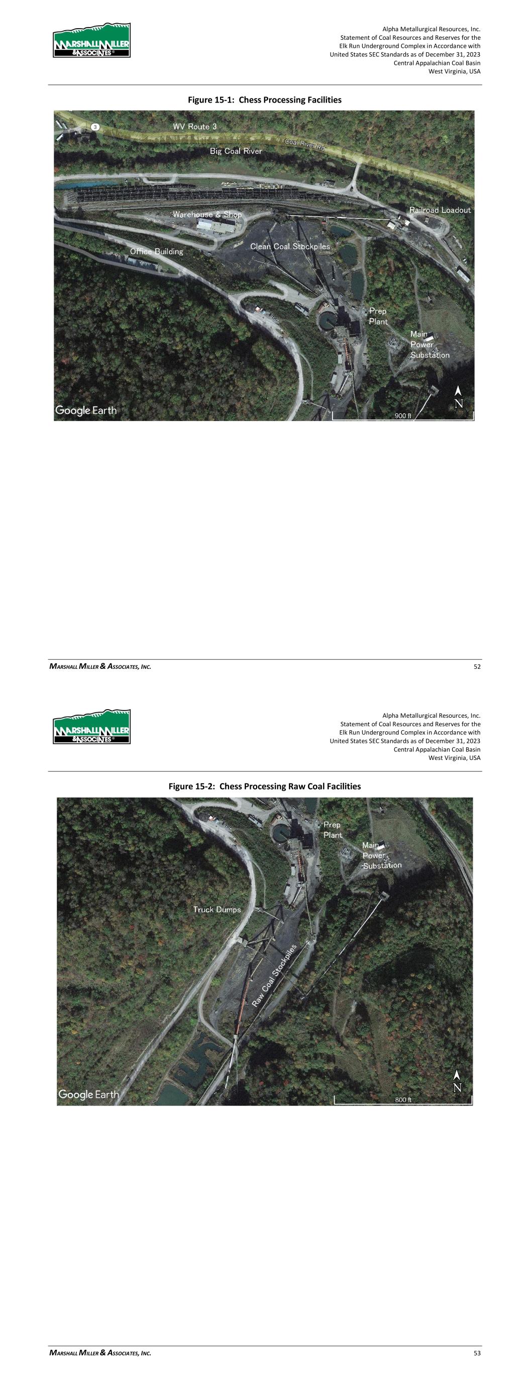 Alpha Metallurgical Resources, Inc. Statement of Coal Resources and Reserves for the Elk Run Underground Complex in Accordance with United States SEC Standards as of December 31, 2023 Central Appalachian Coal Basin West Virginia, USA MARSHALL MILLER & ASSOCIATES, INC. 52 Figure 15-1: Chess Processing Facilities Alpha Metallurgical Resources, Inc. Statement of Coal Resources and Reserves for the Elk Run Underground Complex in Accordance with United States SEC Standards as of December 31, 2023 Central Appalachian Coal Basin West Virginia, USA MARSHALL MILLER & ASSOCIATES, INC. 53 Figure 15-2: Chess Processing Raw Coal Facilities