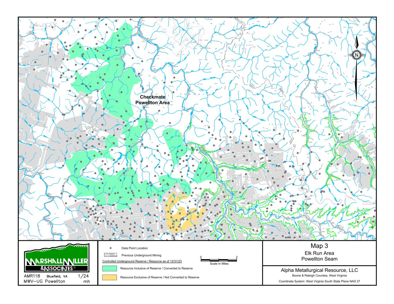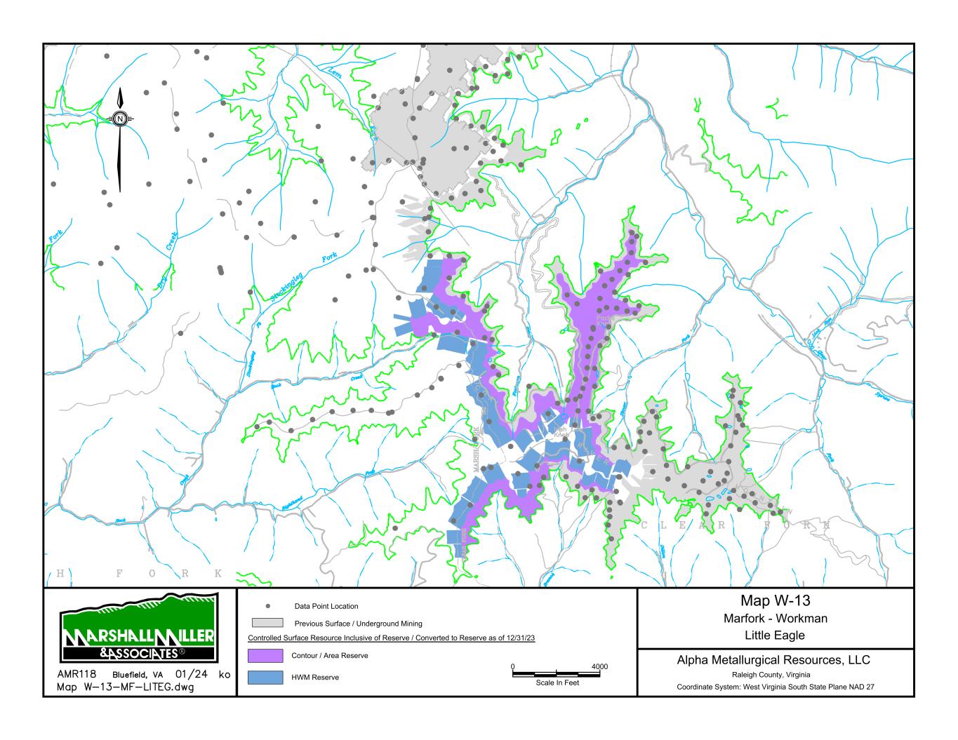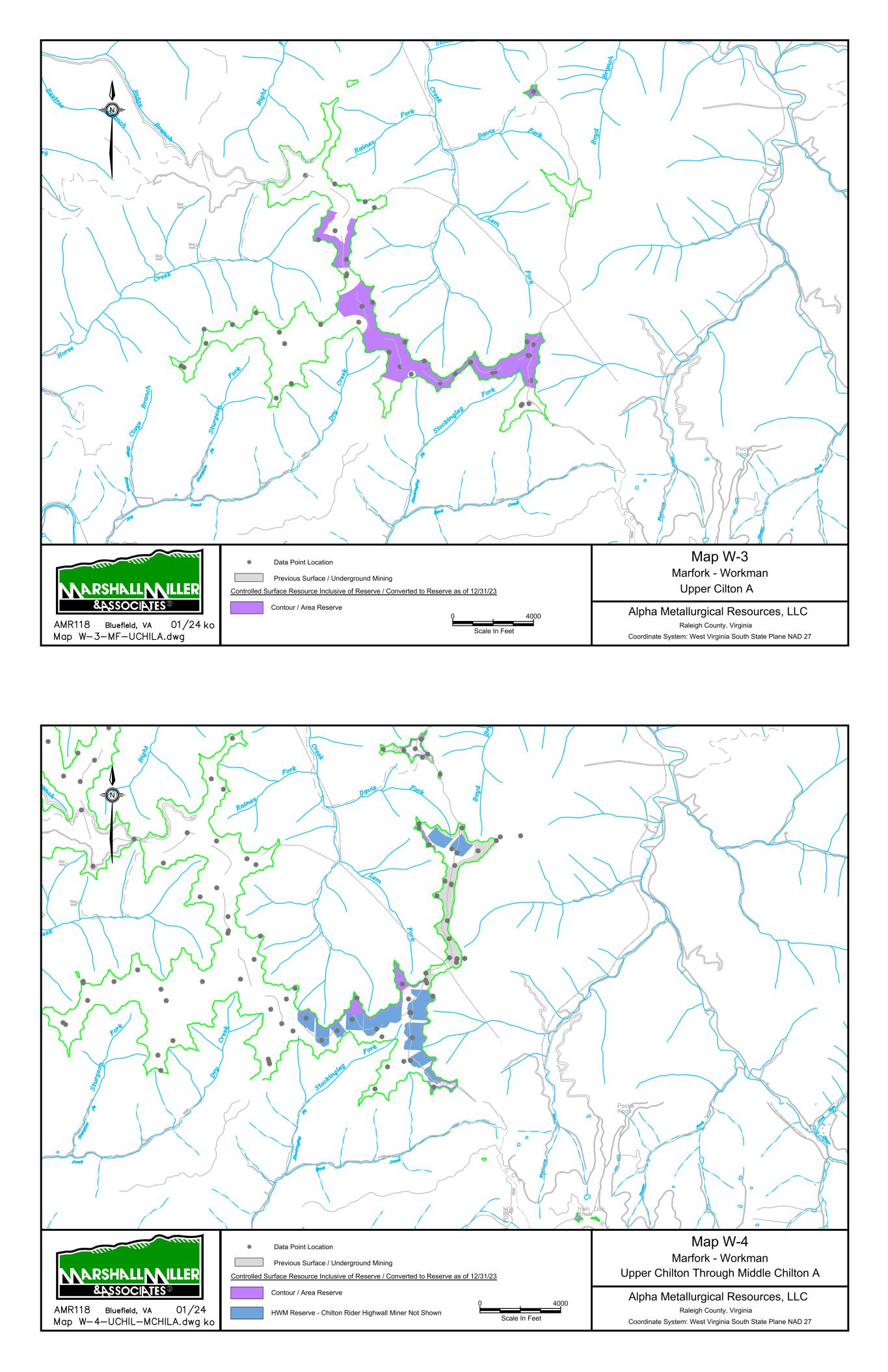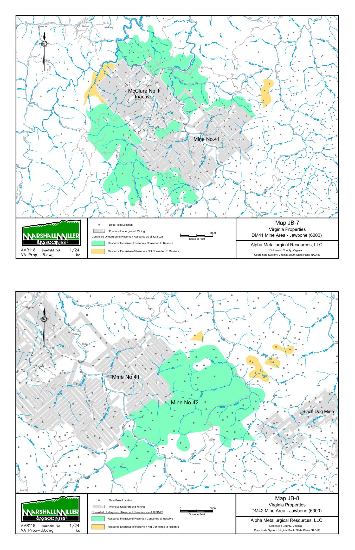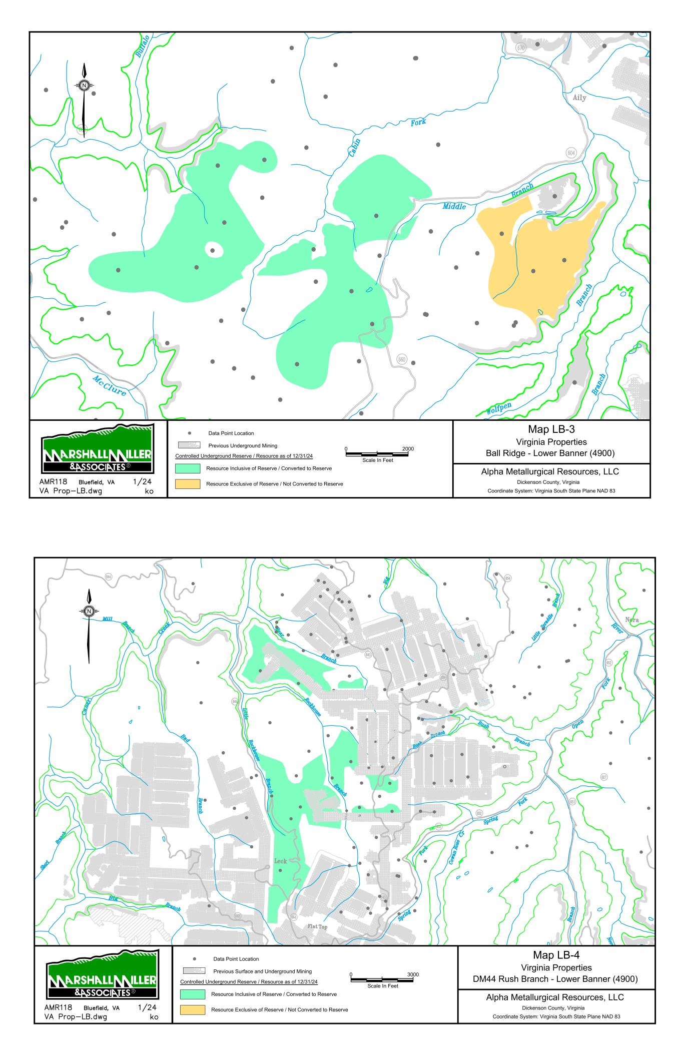 Mountain State Mine Bells Creek Mine No. 1 Cannelton Industries No. 10 Mine 1 Scale In Miles 0 Data Point Location Map 1 Power Mountain Area Rolling Thunder Mine - Powellton Seam Alpha Metallurgical Resource, LLC Boone & Raleigh Counties, West Virginia Coordinate System: West Virginia South State Plane NAD 27 Controlled Underground Reserve / Resource as of 12/31/23 Previous Underground Mining N Resource Exclusive of Reserve / Not Converted to Reserve S E A L S S E A L S TERRY EAGLE COAL CO. HUTCHINSON BR. MINE MSHA ID 46-07899 STATE ID U-3002-90 SEALED AREA SEALED AREA Jerry Fork Eagle Mine Terry Eagle Coal Co. Hutchinson Br. Mine SEALED AREA SE AL ED A RE A 4000 Scale In Feet 0 Data Point Location Map 2 Power Mountain Area Jerry Fork Mine - Eagle Seam Alpha Metallurgical Resource, LLC Boone & Raleigh Counties, West Virginia Coordinate System: West Virginia South State Plane NAD 27 Controlled Underground Reserve / Resource as of 12/31/23 Previous Underground Mining N Resource Exclusive of Reserve / Not Converted to Reserve