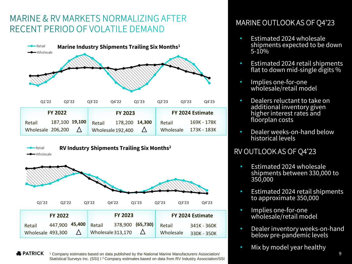43% 27% 30% $3.5B Net Sales Grew by Almost $2.0 Billion Since 2017 $1.6B Diversifying our Portfolio (Net Sales Composition as %) FY 2023 Consistent Net Sales and Margin Growth (2017-2023) Gross Margin 17.1% 22.6% + 550 bps Free Cash Flow $77M $350M + $273MM EBITDA Margin1 9.5% 11.7% + 220 bps FY 2017 69%7% 24% THE CONTINUED EVOLUTION OF PATRICK PORTFOLIO 1 Non-GAAP metric. See appendix for reconciliation to closest GAAP metric 2Market size figures derived from industry research reports. 7 2 0 1 7 - 2 0 2 3 2 0 2 4 & B ey o n d January 2024 Acquisition of Sportech, LLC Solidifies our Powersports Platform $2B+ Incremental TAM2 • Strengthens Patrick’s position in the attractive Powersports Market • SxS/UTV is the largest and fastest growing segment of powersports • $100M+ similar sourced materials between Patrick and Sportech • Focusing on deleveraging post-transaction RV Outdoor Enthusiast Markets Starting 2024 with More Diversified Outdoor Enthusiast Ecosystem and Primed for Accelerated Growth • Focused on innovation with creation of Advanced Product Evolution Group & continued investment in automation, product development and our people. • Resilience through greater diversification Marine Powersports Housing