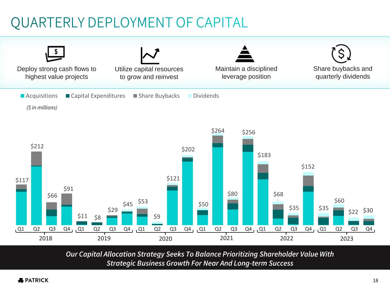 $117 $212 $66 $91 $11 $8 $29 $45 $53 $9 $121 $202 $50 $264 $80 $256 $183 $68 $35 $152 $35 $60 $22 Acquisitions Capital Expenditures Share Buybacks Dividends Q1 Q2 Q3 Q4 ($ in millions) Our Capital Allocation Strategy Seeks To Balance Prioritizing Shareholder Value With Strategic Business Growth For Near And Long-term Success Deploy strong cash flows to highest value projects Maintain a disciplined leverage position Utilize capital resources to grow and reinvest Share buybacks and quarterly dividends 2022 QUARTERLY DEPLOYMENT OF CAPITAL 2021 2023202020192018 $30 18 Q1 Q2 Q3 Q4 Q1 Q2 Q3 Q4 Q1 Q2 Q3 Q4 Q1 Q2 Q3 Q4 Q1 Q2 Q3 Q4