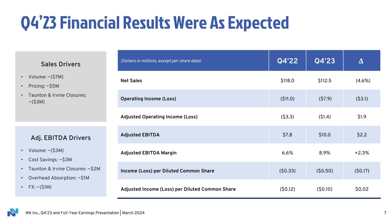 NN, INC. REPORTS FOURTH QUARTER AND FULL YEAR 2023 RESULTS; 2024 GUIDANCE