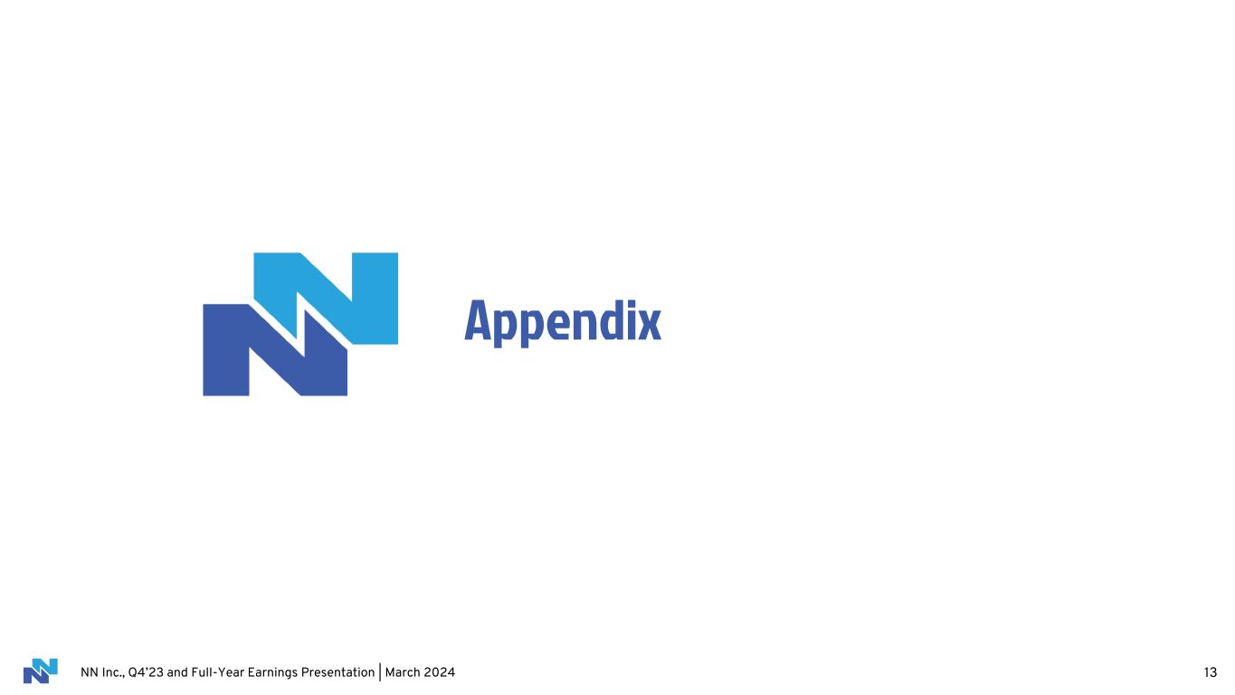 NN Inc., Q4’23 and Full-Year Earnings Presentation | March 2024 Appendix 13