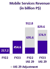 Equipment revenues amounted to P$153,169 million (+P$1,760 million or +1.2% vs. FY22). This variation is mainly due to a 13% increase in the quantity of handsets sold.