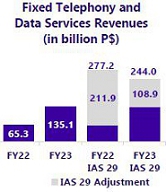 Revenues generated by fixed telephony and data services reached P$244,009 million in FY23 (-33,215 million or -12.0% vs. FY22).