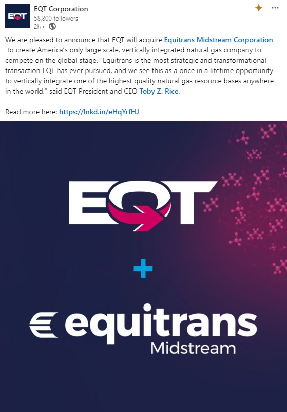 NOTE: Unlike some of our prior transactions, this acquisition is conditioned on our receiving shareholder approval for issuing the stock consideration to the Equitrans Midstream Corporation shareholders. Given that we will be subject to ongoing proxy rules pending the shareholder vote, and therefore required to file broad communications with employees (such as this one) with the SEC, you won’t see as much executive discussion as we’ve had on some of our other acquisitions.