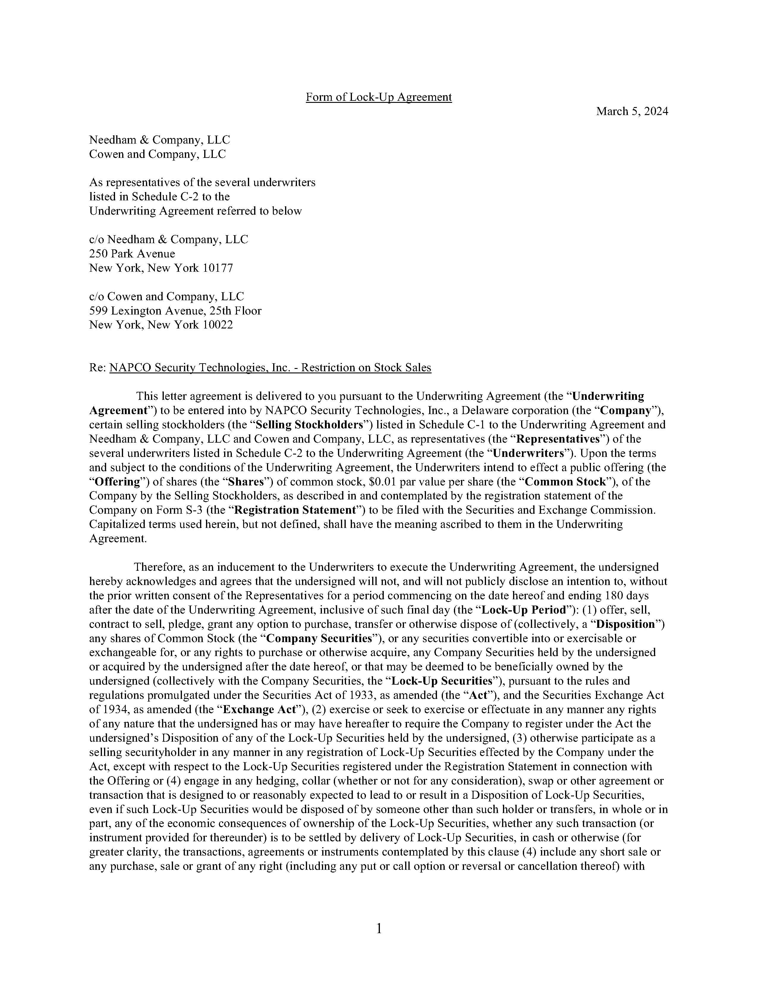 | NAPCO SECURITY TECHNOLOGIES, INC. |