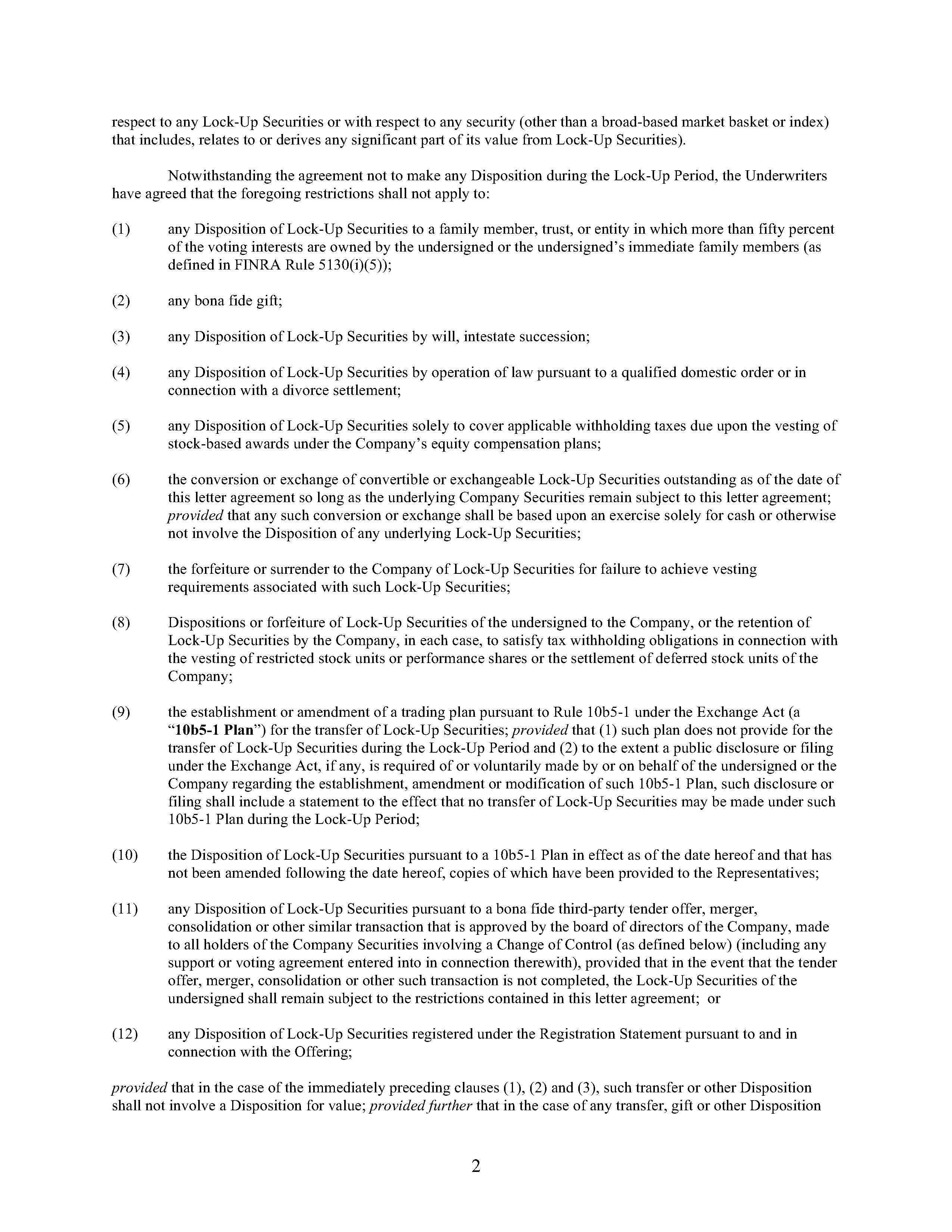 | 1 | Underwriting Agreement, dated as of March 5, 2024, by and among the Issuer, the Reporting Person and the Underwriters (incorporated by reference to Exhibit 1.1 to Form 8-K filed on March 7, 2024). |