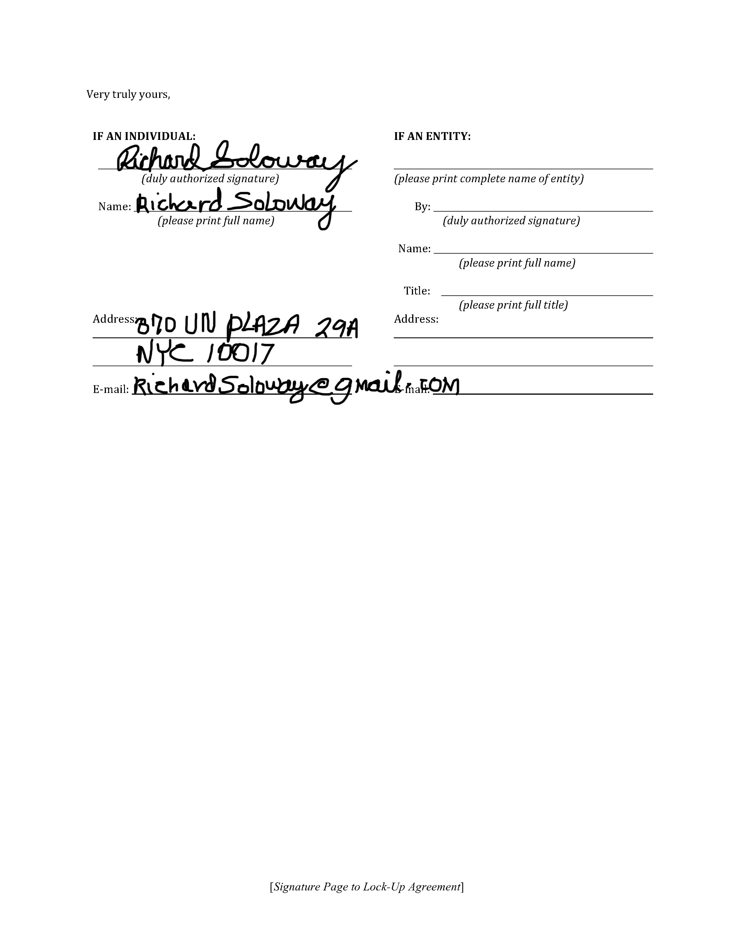 Lock-up Agreement, dated as of March 5, 2024, executed by the Reporting Person.