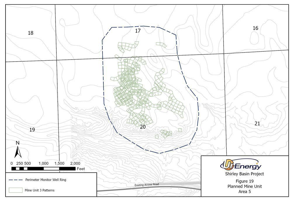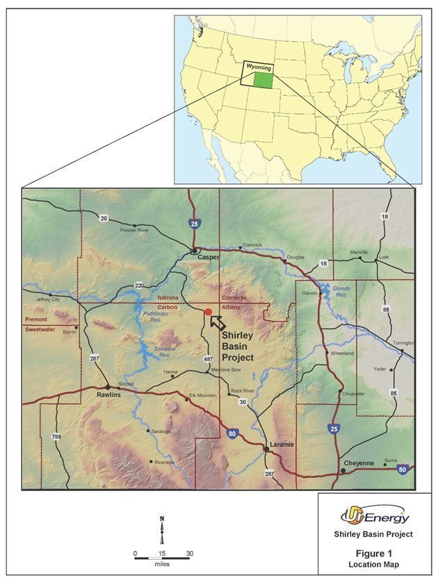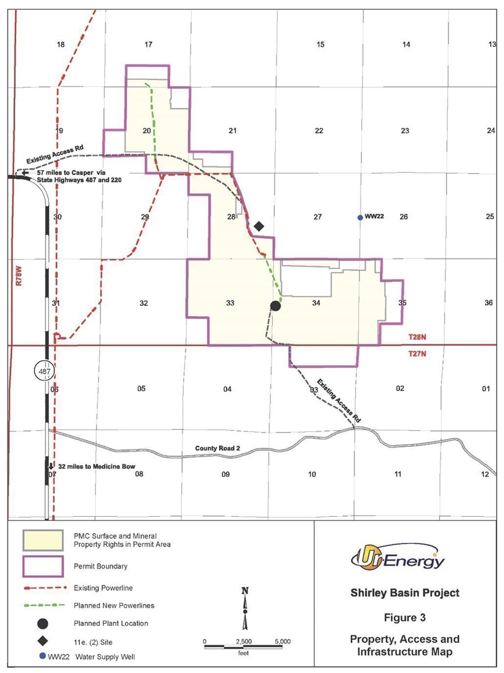 Adjacent Properties refers to non-URE both historic and currently held mineral properties in close proximity to the Project. Several mineral properties adjacent to or in close proximity to the Project contain unconfirmed uranium resources. Additionally, there are several past producing properties in the Shirley Basin. The three distinct portions of the Shirley Basin can be identified as follows: East Shirley Basin, Central Shirley Basin and West Shirley Basin. All past production has taken place in the East Shirley Basin region. URE’s Project is in the northern portion of the East Shirley Basin area. The historical Petrotomics mine and mill complex, now in perpetual care with the U.S. Department of Energy, is immediately south of the Project. Uranium One Americas, Inc. (now owned by Uranium Energy Corporation) controls a large exploration project, consisting of unpatented mining claims and State of Wyoming leases, in the southern portion of this area.