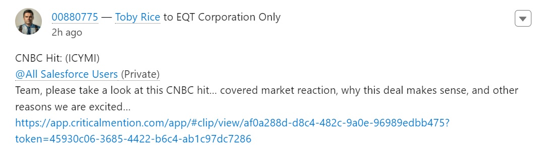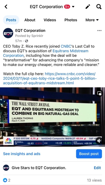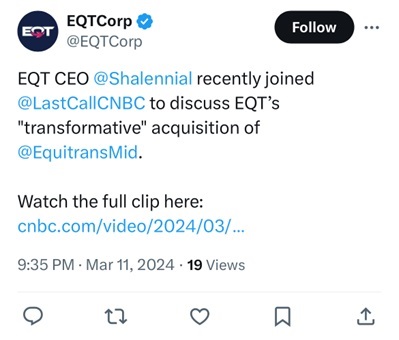 Set forth below are (i) a transcript from an interview given by Toby Z. Rice, President and Chief Executive Officer of EQT Corporation (“EQT” or “Parent”), to CNBC on March 11, 2024 regarding EQT’s proposed acquisition (the “transaction”) of Equitrans Midstream Corporation (“Equitrans” or the “Company”), (ii) materials posted by EQT on social media regarding such interview and (iii) a communication from Mr. Rice to EQT’s employees regarding such interview.