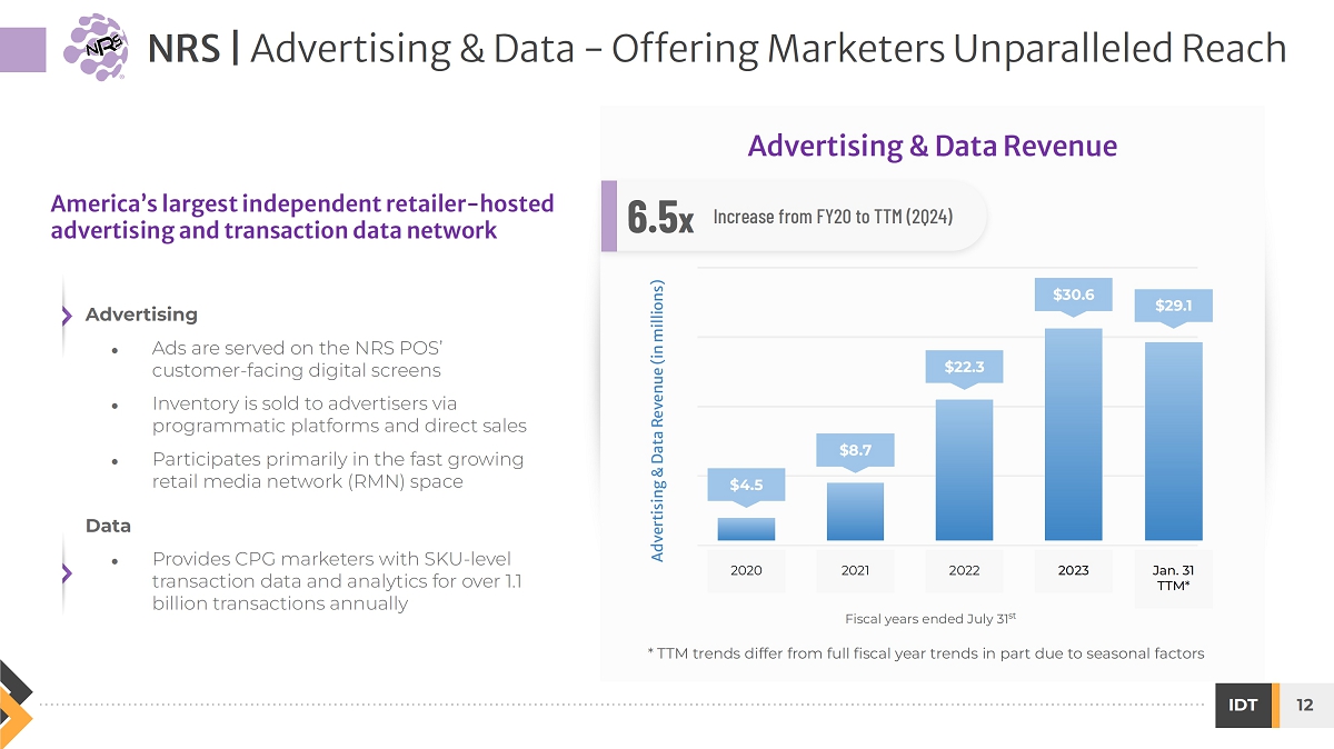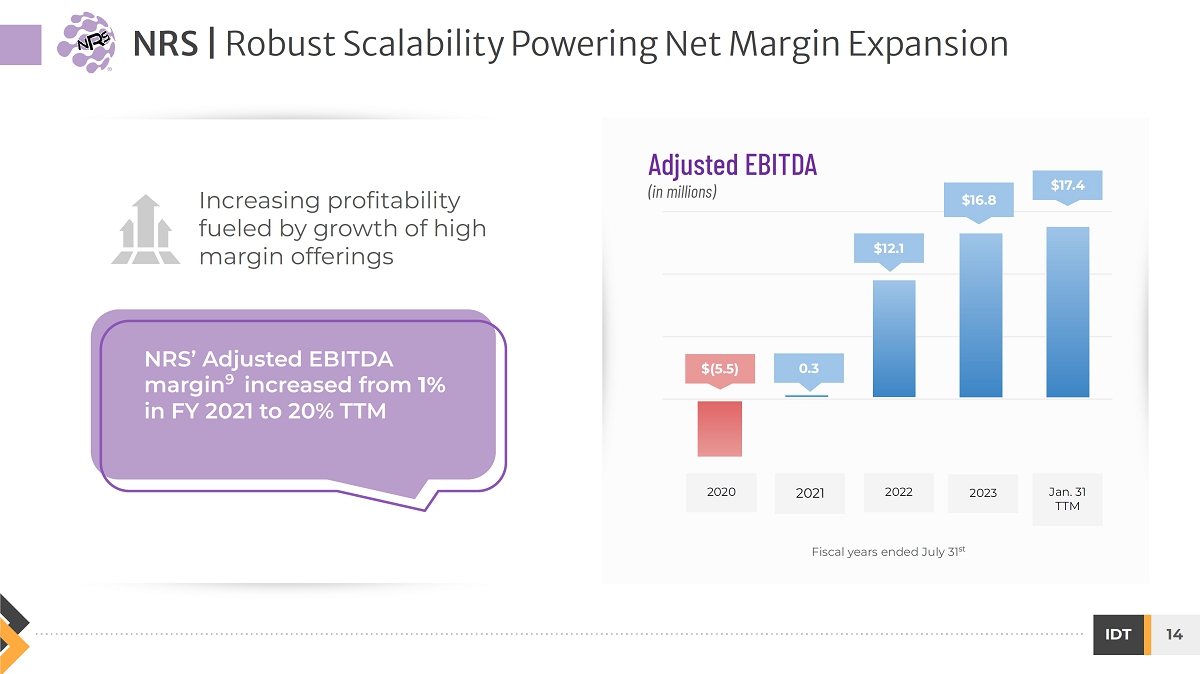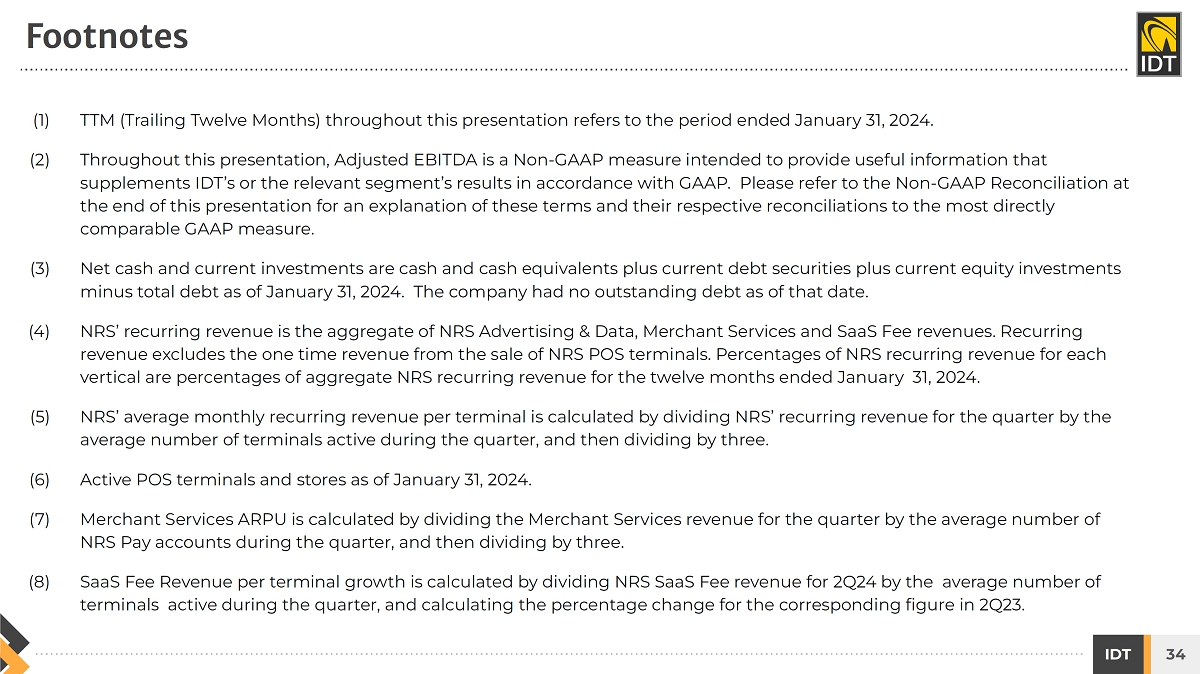 On March 13, 2024, the slide presentation (the “Presentation”) attached hereto as Exhibit 99.1 will be provided to certain investors. The Presentation will also be available on the investor relations page of the Registrant’s website at https://www.idt.net/investors-and-media/investors-presentations.