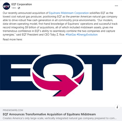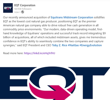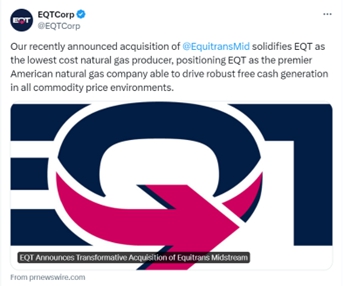 The following were posted by EQT Corporation (“EQT” or “Parent”) on its social media accounts on March 13, 2024, regarding its proposed acquisition (the “transaction”) of Equitrans Midstream Corporation (“Equitrans” or the “Company”):