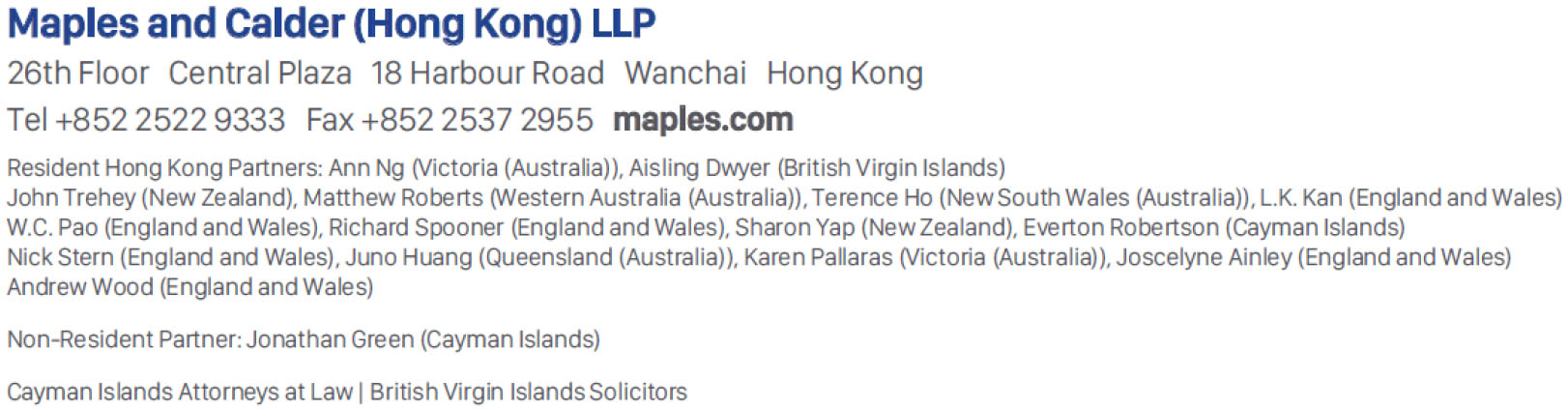 | 5.1 | Opinion of Maples and Calder (Hong Kong) LLP | |