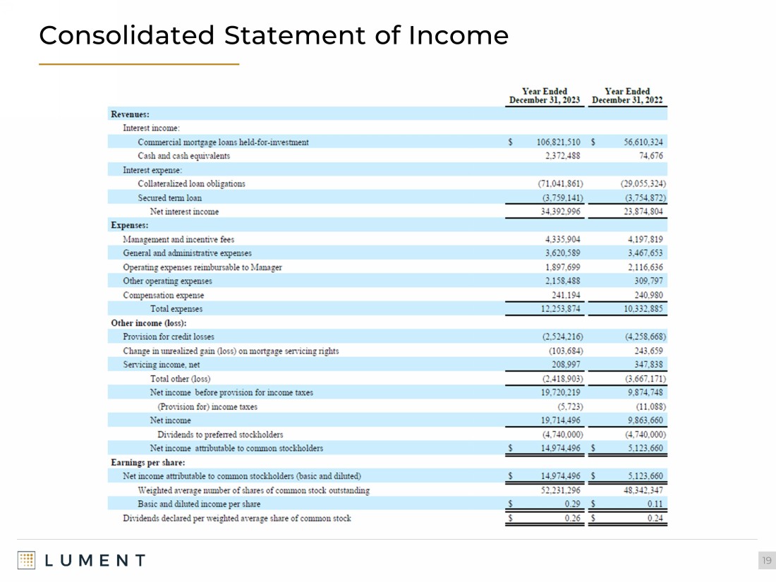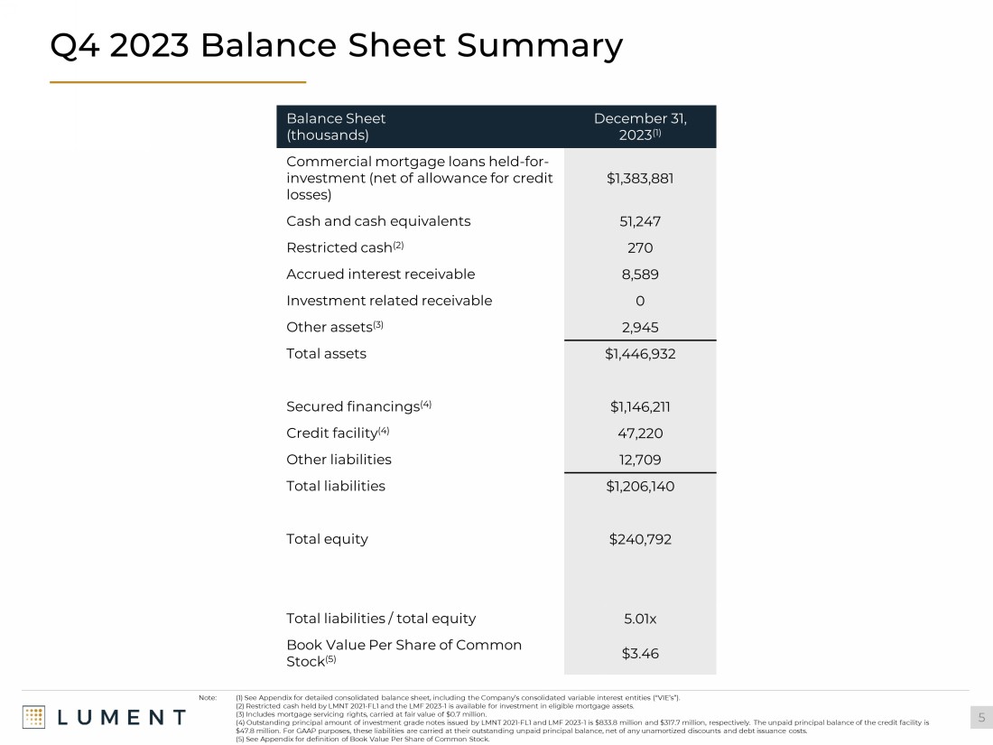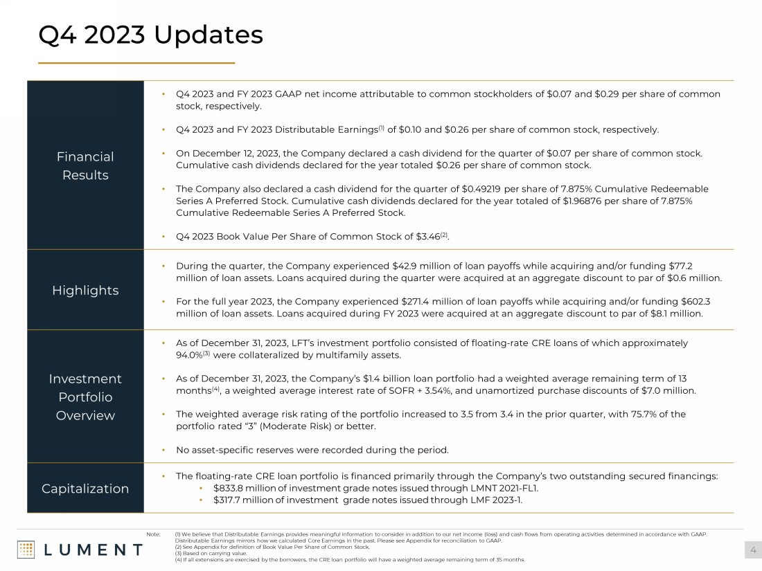 March 2024 Lument Finance Trust Q4 2023 Earnings Supplemental