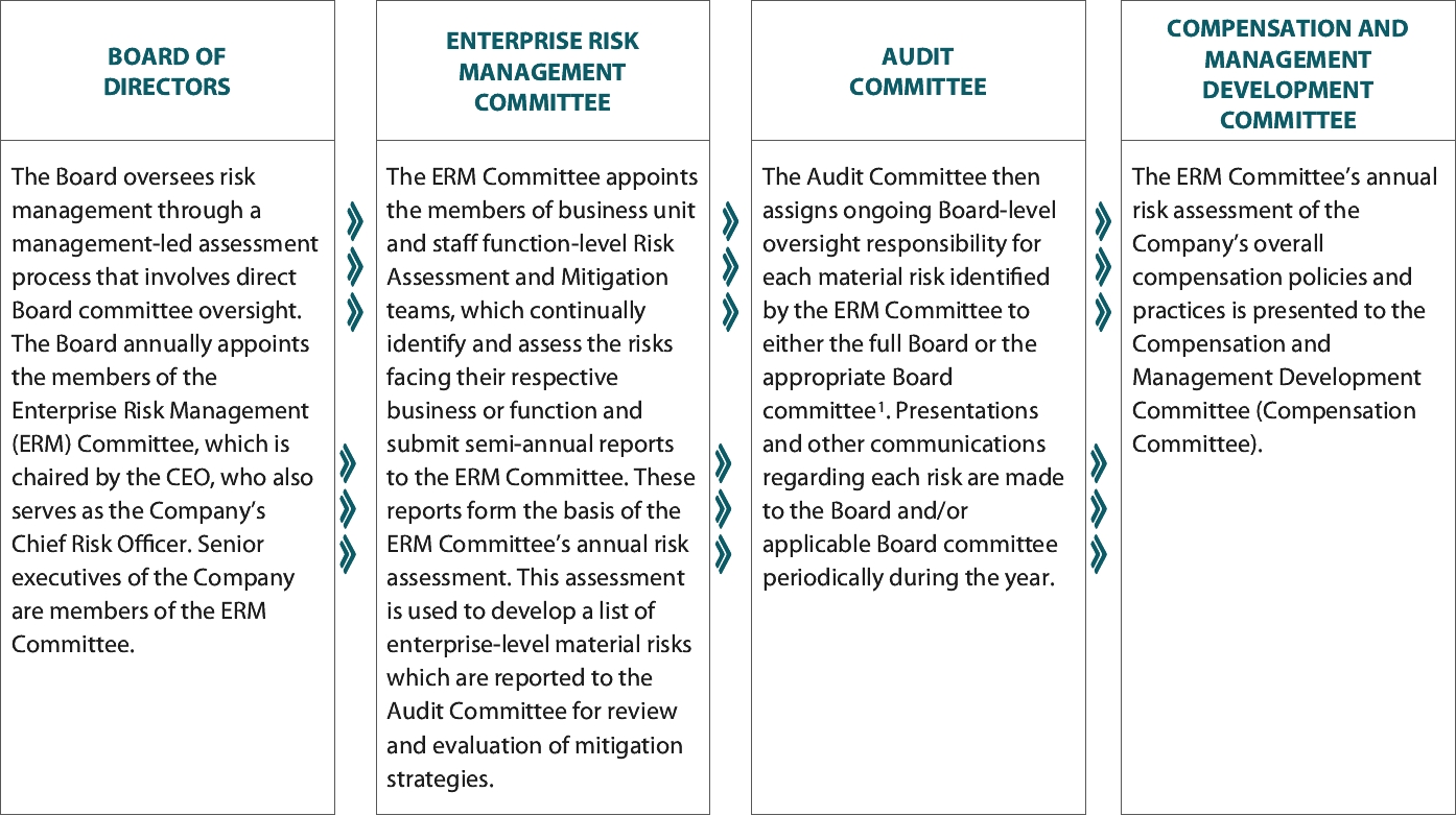 | | Annual Management Succession Planning Review | | | The Board conducts an annual review of management development and succession planning for the CEO and Company senior leadership. See Succession Planning section. | |