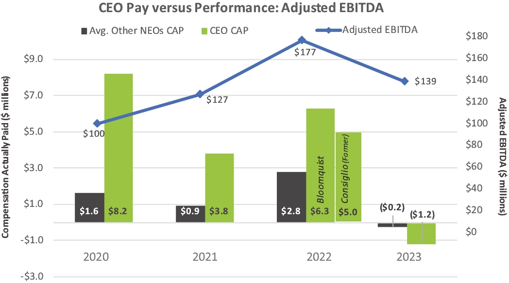 (2) | On May 18, 2023, each non-management director (except Mr. Yokley) was granted a restricted stock unit award equivalent to $115,000 which, based on grant date value ($4.21), corresponded to 27,316 restricted stock units, for a total award of $115,000.36 after rounding (because the Company does not issue fractional shares for director equity awards). The aggregate number of restricted stock units outstanding on December 31, 2023 for each of Ms. Dill, Ms. Palumbo, Ms. Smith and Messrs. Adair, Eggert, Kirsch, Mariano and Morgan were 27,316. |