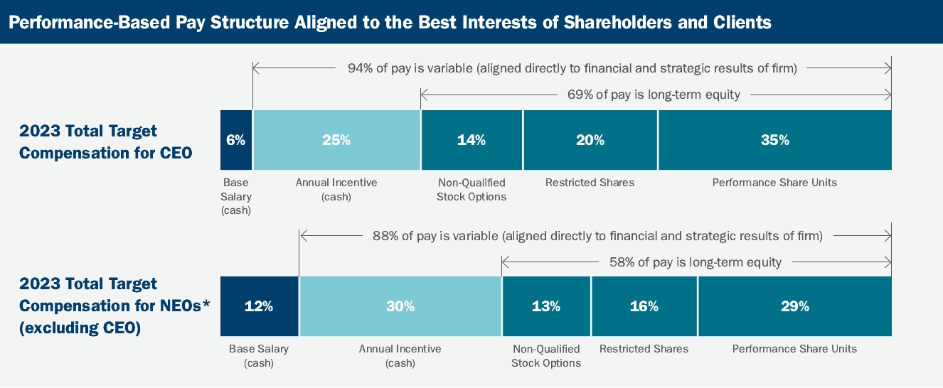 In addition to the amounts disclosed in these tables, the named executive officers would also receive any restricted stock units and restricted stock (or deferred stock units in the case of Mr. Davies) that vested on or before their termination date. The officer would also be able to exercise any vested stock options (or deferred stock options in the case of Mr. Davies). For more information, please see the Outstanding Equity Awards at Fiscal Year-End 2023 table on page