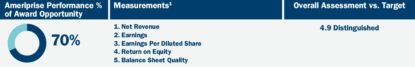 Both tables assume that the named executive officer’s employment terminated on December 31, 2023. Because the numbers disclosed are calculated as of that date and are subject to other estimates and assumptions, the actual amounts the named executive officer may receive may differ materially from those shown in the tables. Additional information on the calculations for the payouts are outlined in the common set of footnotes to the tables. Unless otherwise specified in the common set of footnotes to the tables, all payments and benefits would be provided by Ameriprise Financial, Inc.