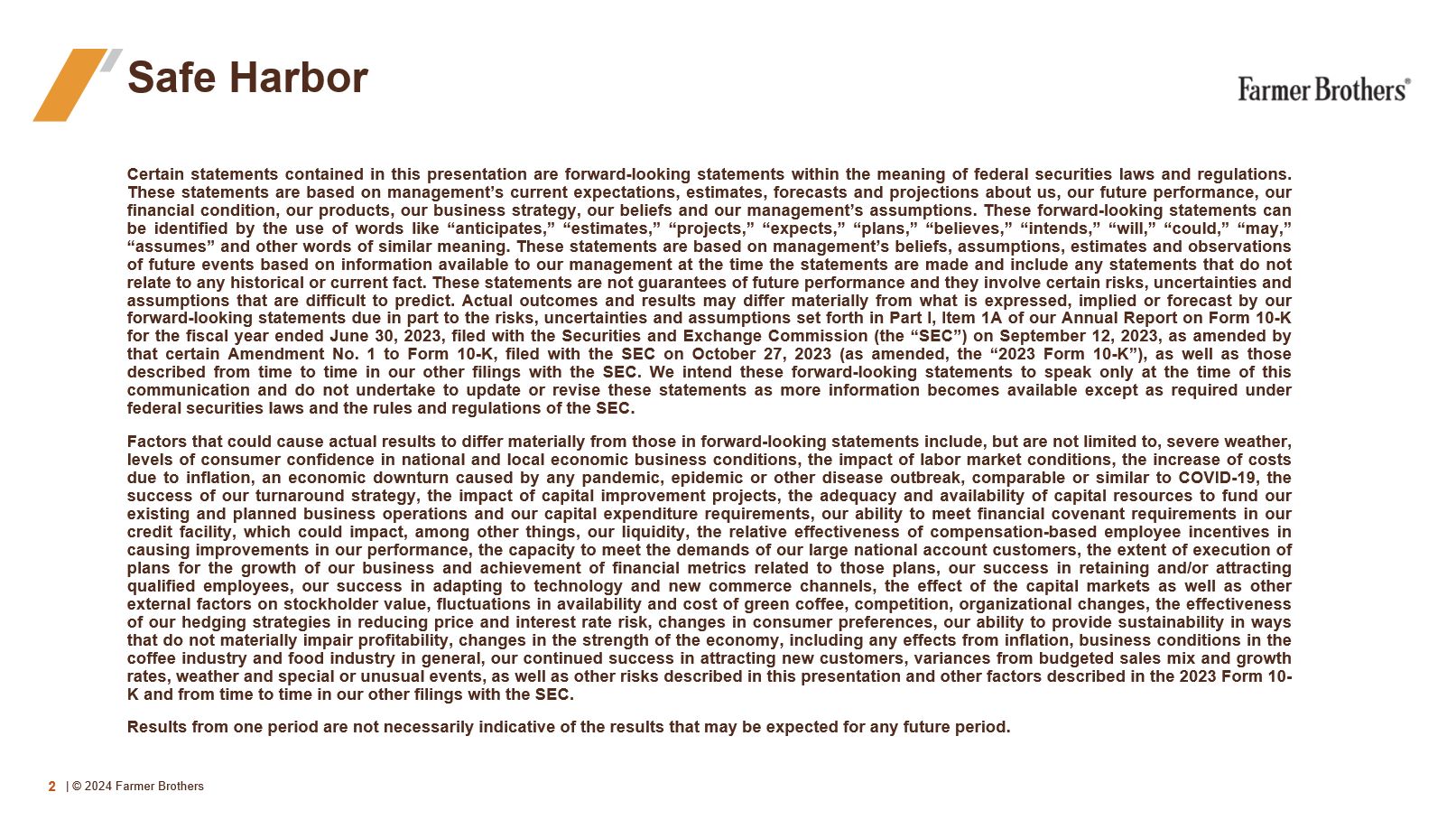 Farmer Brothers Investor Presentation.