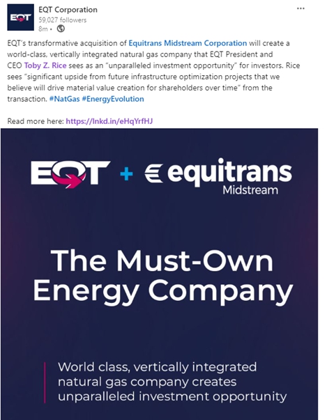 The following were posted by EQT Corporation (“EQT” or “Parent”) on its social media accounts on March 15, 2024, regarding its proposed acquisition (the “transaction”) of Equitrans Midstream Corporation (“Equitrans” or the “Company”):